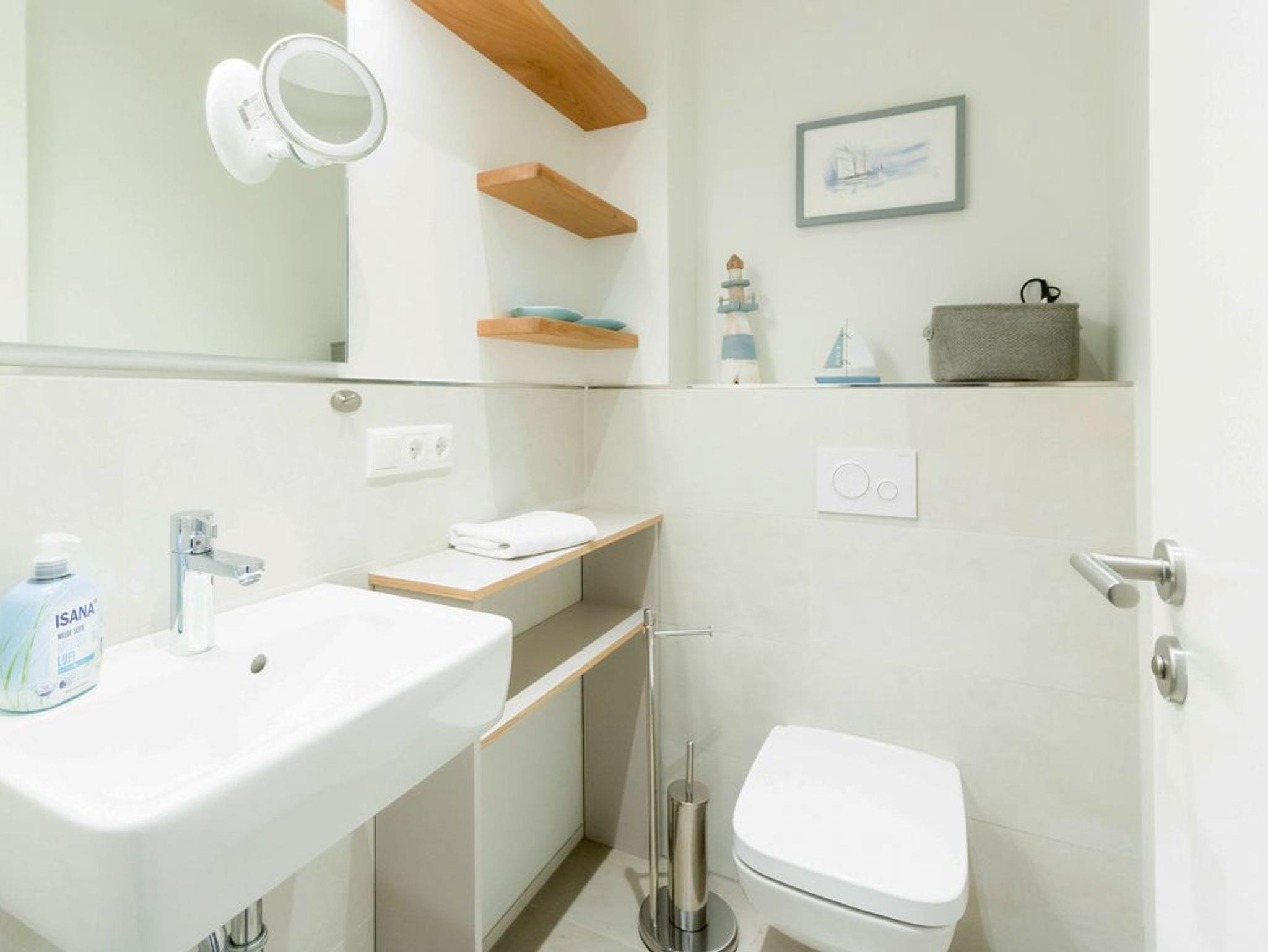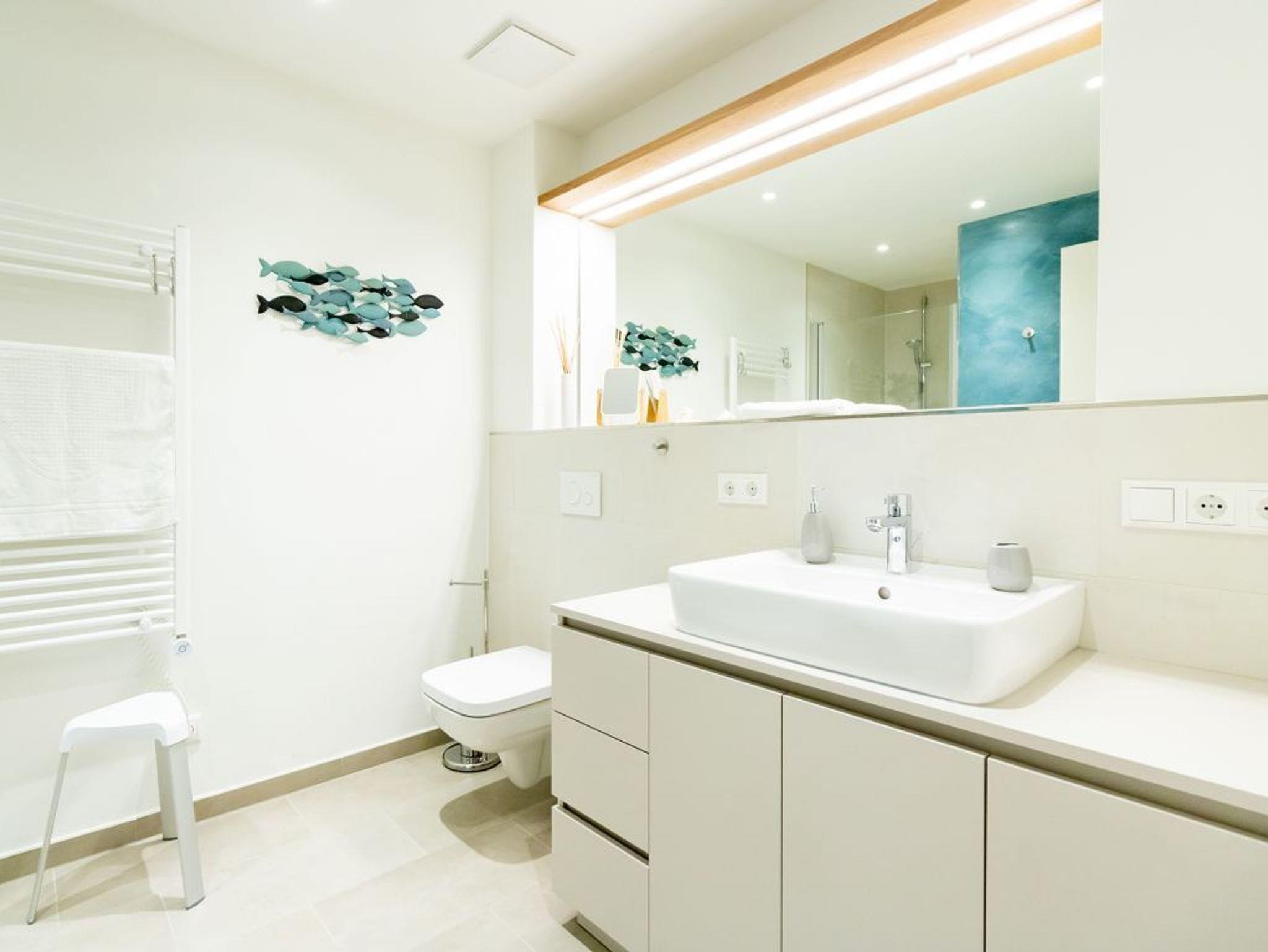 Das Feriendomizil besitzt ein hochwertiges Badezimmer mit bodengleicher Dusche, Waschtisch, WC, Handtuchheizkörper. Im gesamten Appartement spendet eine Fußbodenheizung wohlige Wärme, wodurch ein Ferienaufenthalt während der Wintermonate besonders behaglich ist. Bei Ihrer Ankunft sind die Betten für 2 Personen bereits bezogen und auch Hand/Duschtücher liegen als inklusive Service bereit. Sollten Sie mit mehr als 2 Personen anreisen, so erhalten Sie weitere Wäscheausstattung gegen Gebühr.