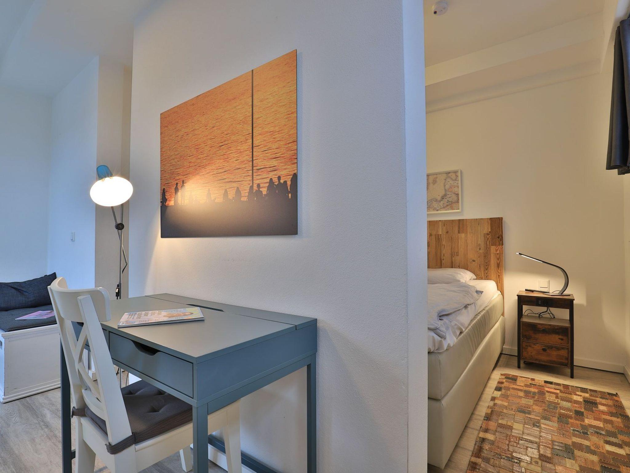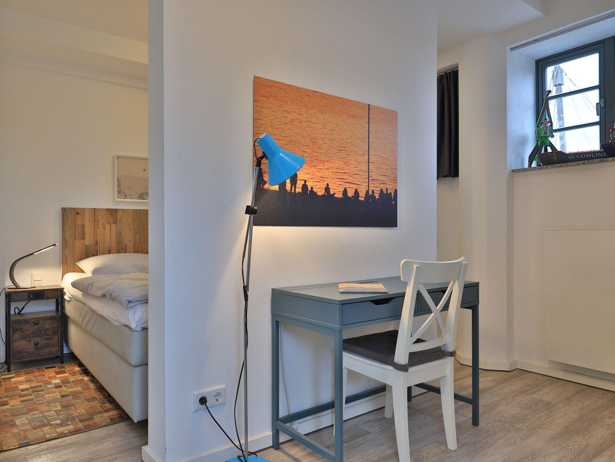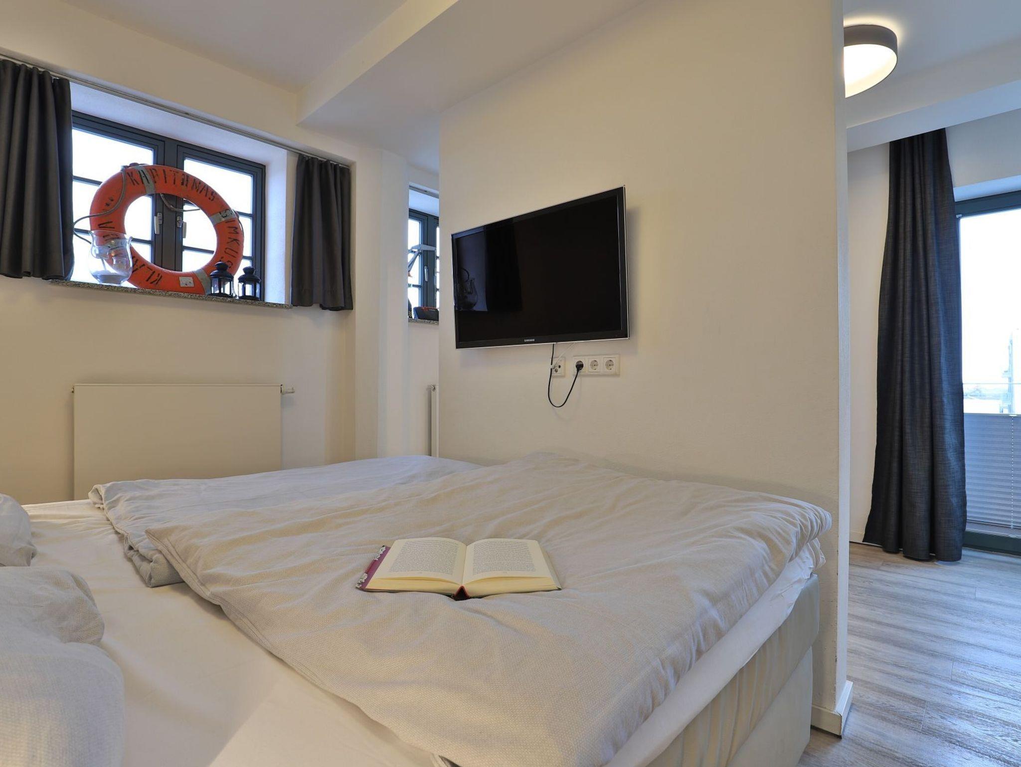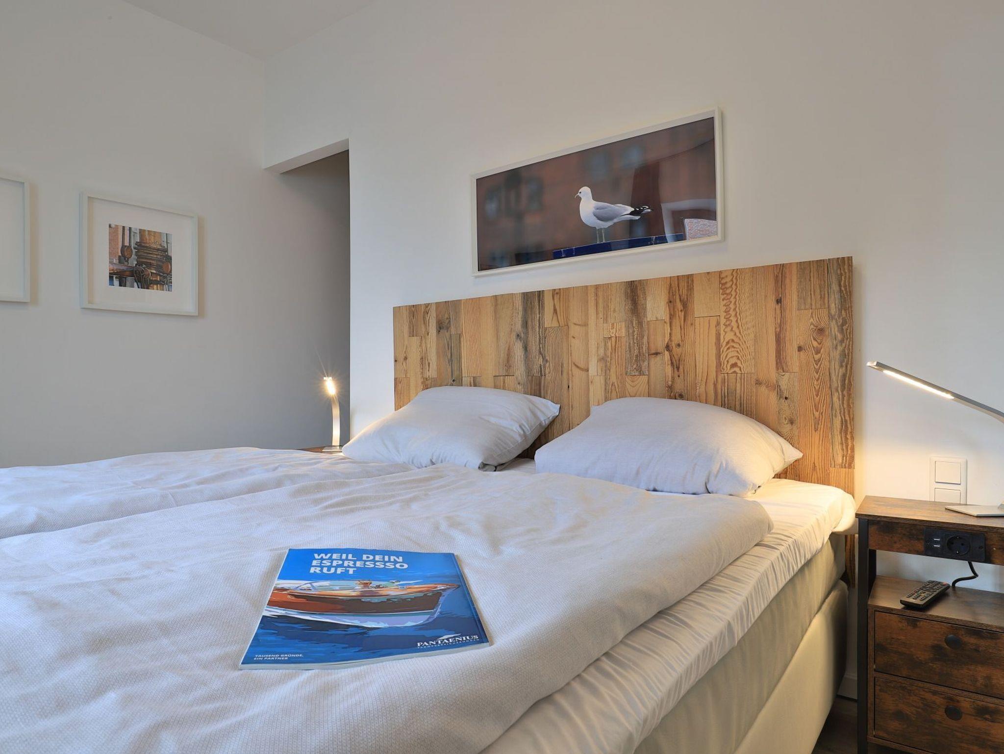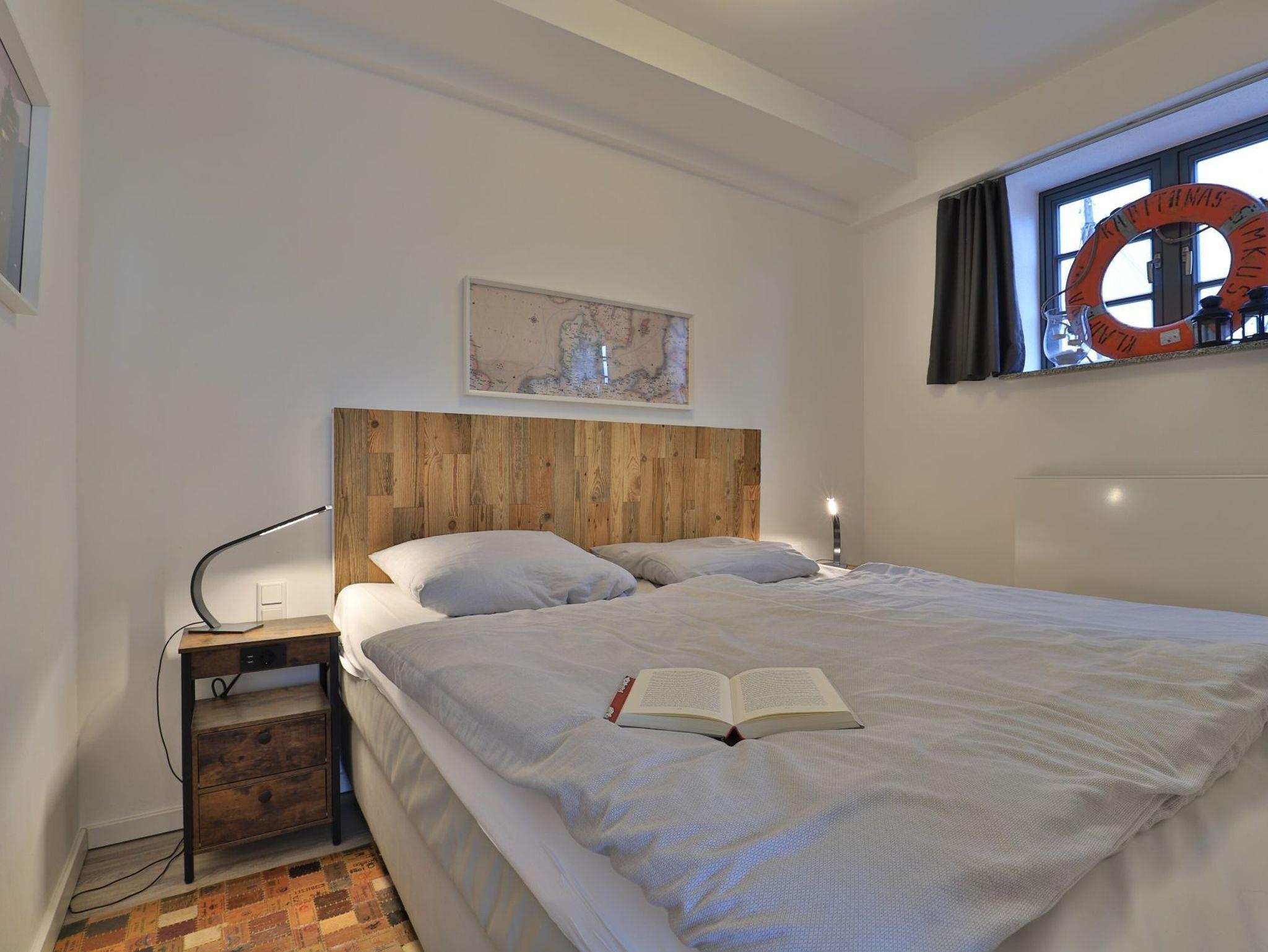 Das exklusive 3-Zimmer-Appartement im Ohlerich Speicher bietet traumhaften Hafenblick und eine eigene Sauna.