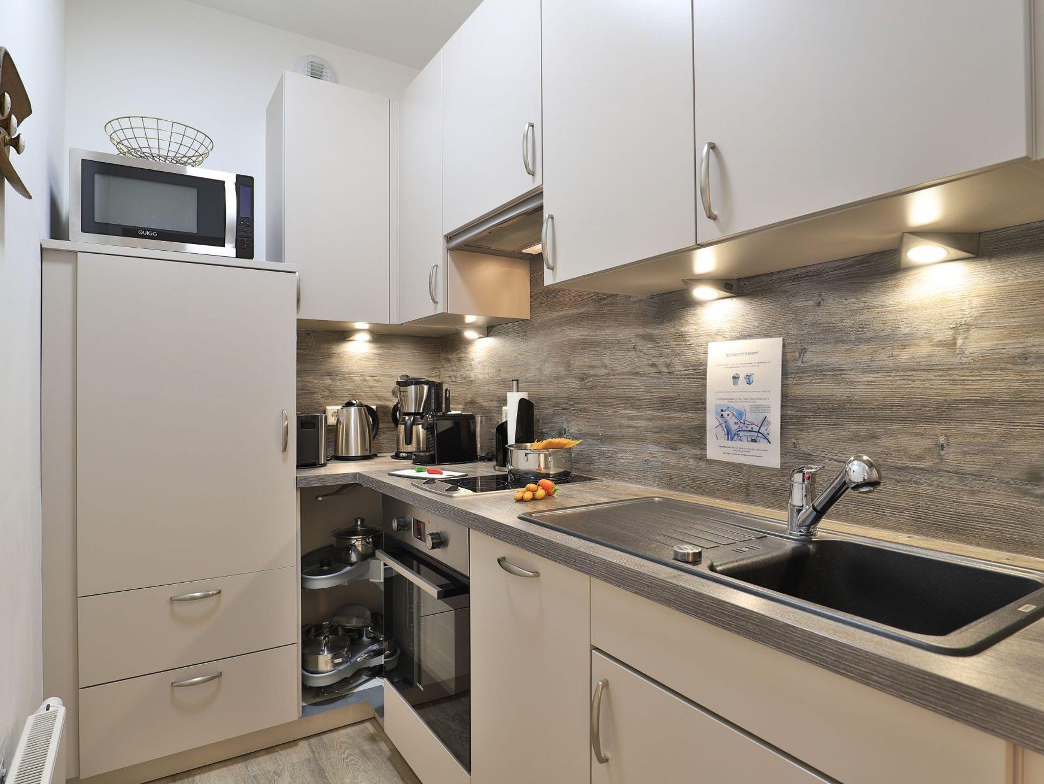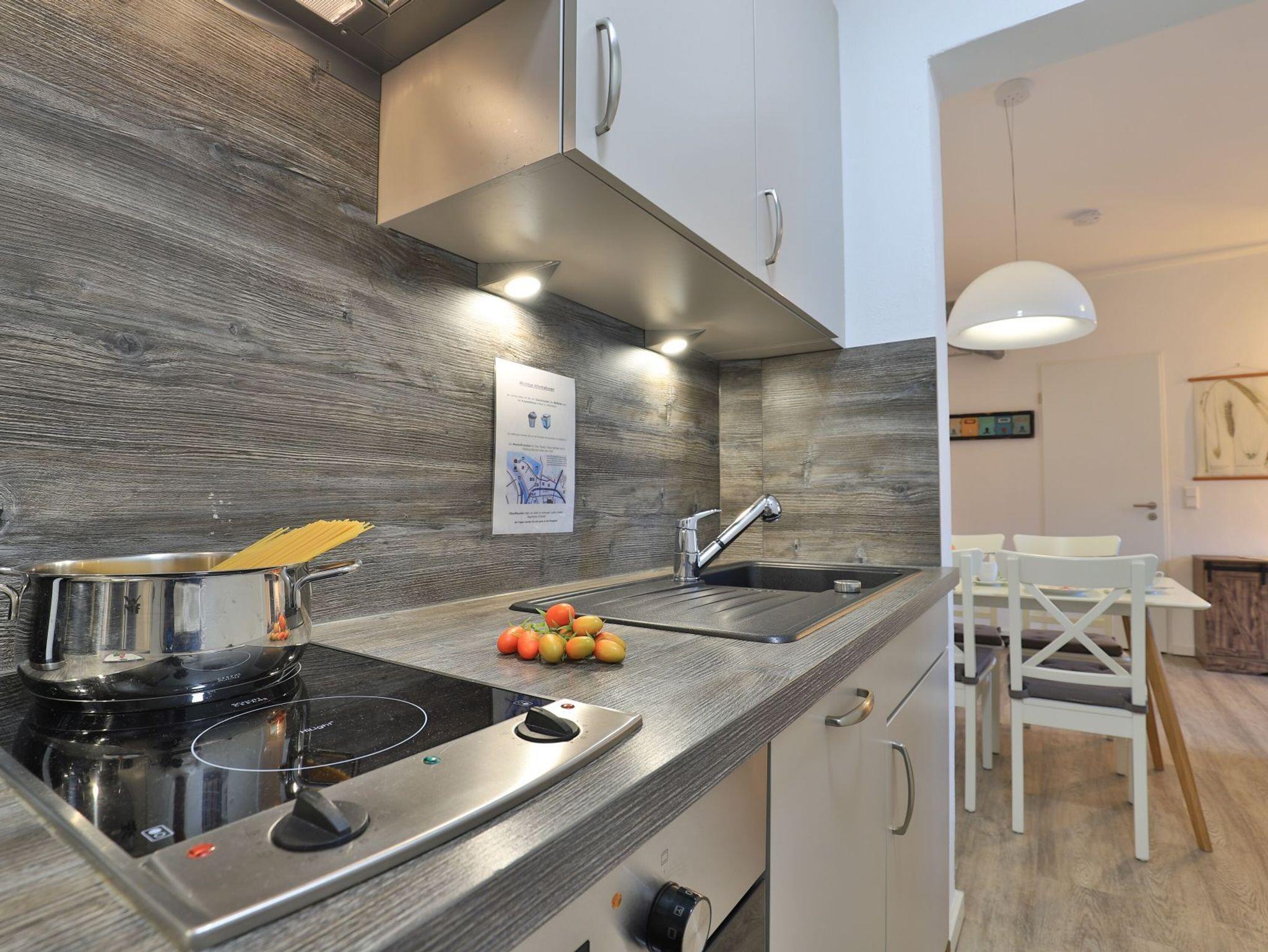 Appartementhaus mit 48 Appartements. Das hochwertig ausgestattete 3-Zimmer-Appartement befindet sich in der 2.Etage des Gebäudes. In dem Appartement können auf 63 m² bis zu 6 Personen einen traumhaften Urlaub verbringen. Das komfortable Wohnzimmer mit Fernseher und integrierter Küche lädt zum Verweilen ein. Die 2 separaten Schlafzimmer bieten für 4 Personen erholsame Nächte. Des Weiteren verfügt das stilvolle Appartement über ein Duschbad und eine Sauna. Bei Anreise sind 2 Betten bezogen und Handtücher liegen für Sie bereit. WLAN steht Ihnen kostenfrei zur Verfügung. In unmittelbarer Nähe sind öffentliche Parkplätze vorhanden.