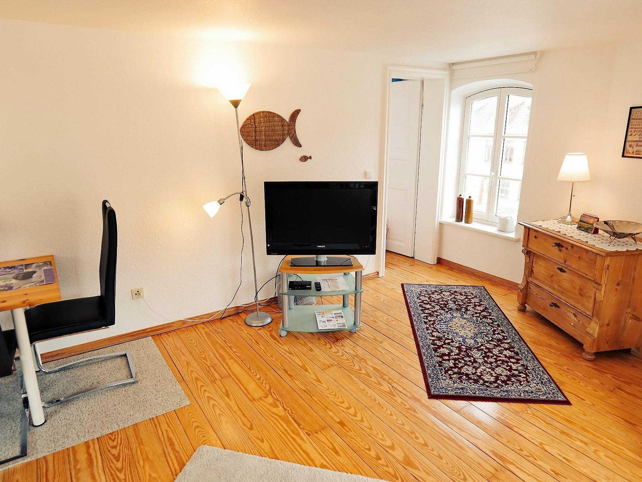 Schöne Ferienwohnung in Wismars Altstadt mit Balkon, WLAN und voll ausgestatteter Küche, nur wenige Gehminuten vom Hafen entfernt.