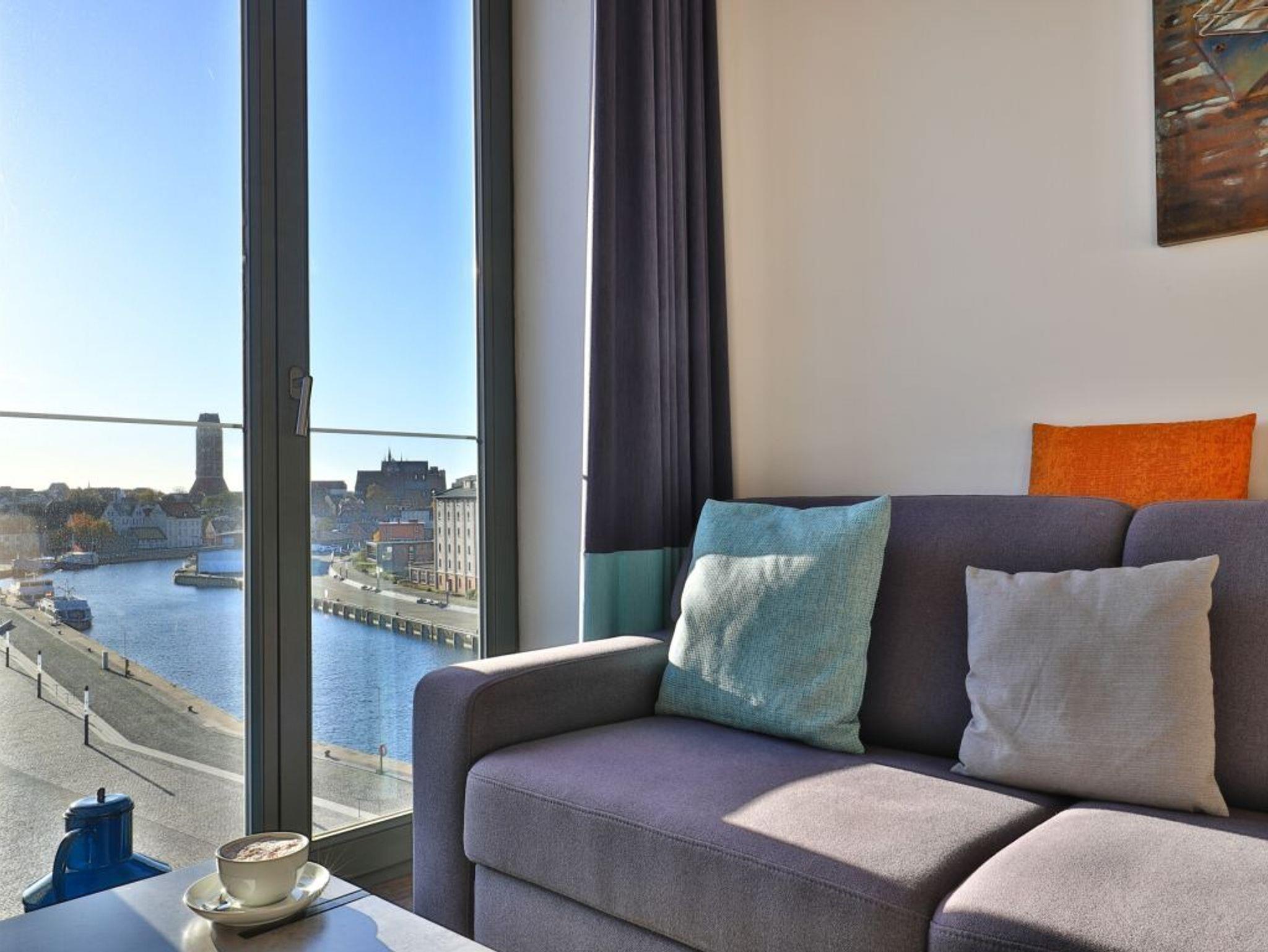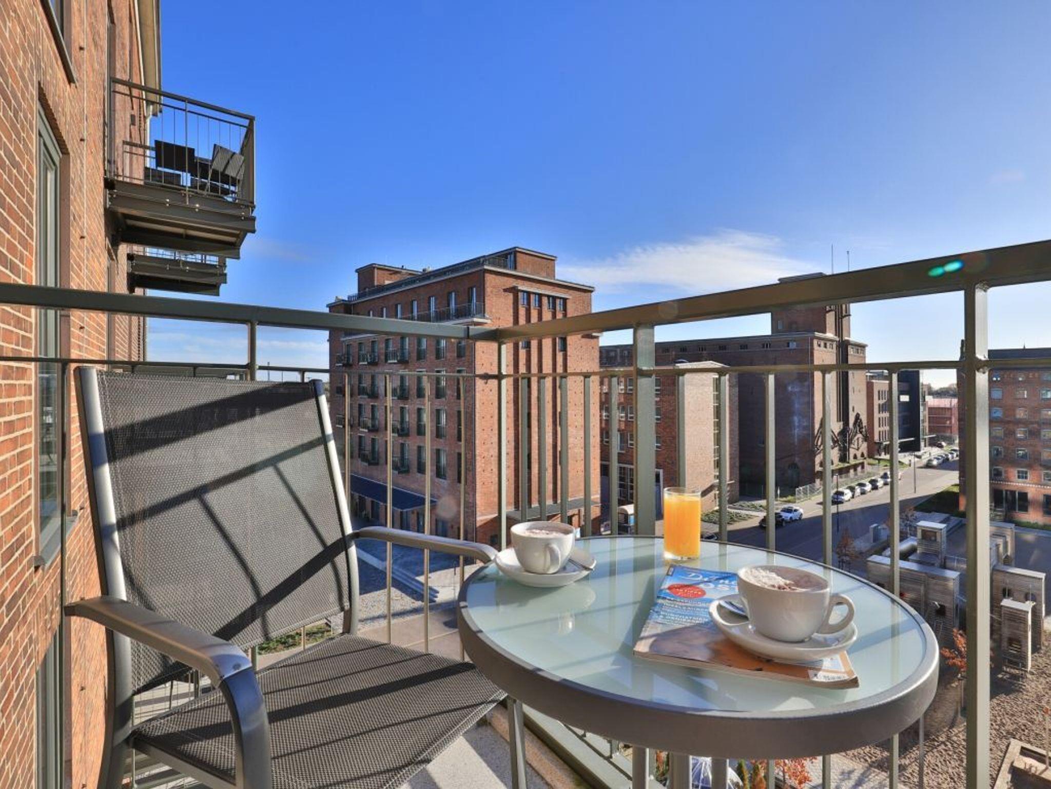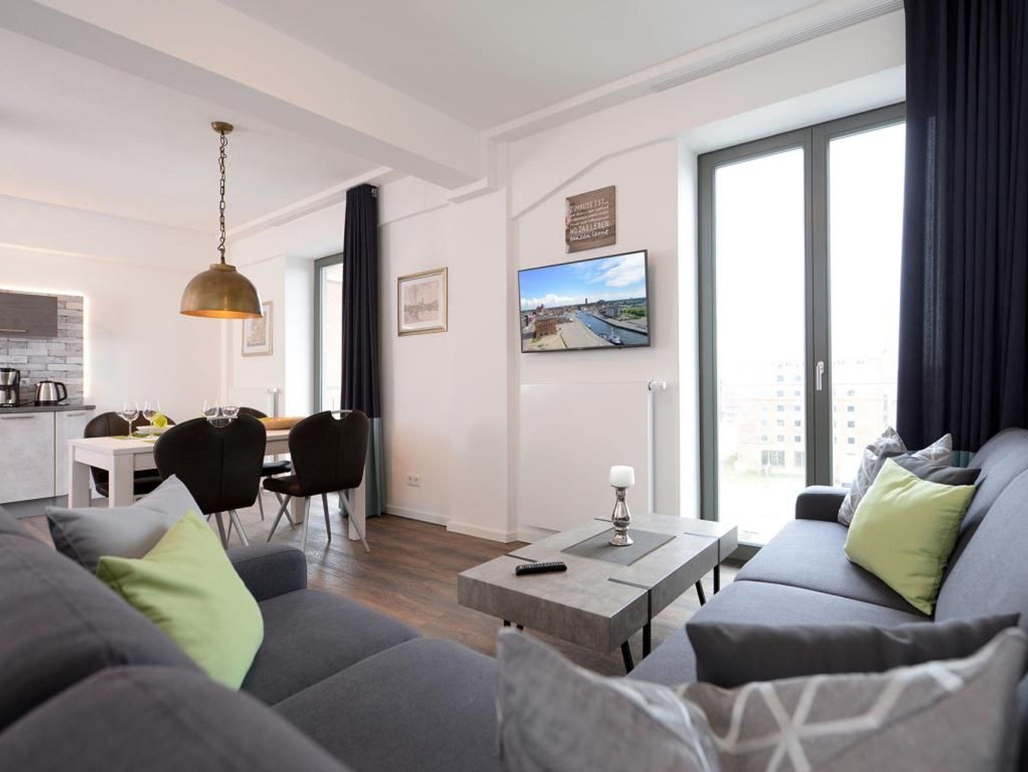 Appartementhaus mit 48 Appartements. Das hochwertig eingerichtete 2-Zimmer-Appartement befindet sich in der 4. Etage des Ohlerich Speichers. Mit seinen 56m² bietet dieses exklusive Appartement genügend Platz für 4 Personen. Der helle Wohnbereich mit Fernseher und integrierter Küche lädt zum Verweilen ein. Die Küche ist komplett ausgestattet u.a. mit einem Geschirrspüler, einem Wasserkocher, einer Kaffeemaschine und einer Mikrowelle. Vom Wohnbereich gelangen Sie auf den Balkon mit Blick auf die schöne Altstadt. Das moderne Schlafzimmer sorgt für erholsamen Schlaf. Außerdem steht Ihnen ein stilvoll eingerichtetes Duschbad zur Verfügung. In der Wohnung haben Sie kostenfreies WLAN. Bei Anreise sind für Sie 2 Betten bezogen und Handtücher liegen bereit. In unmittelbarer Nähe sind öffentliche Parkplätze vorhanden.