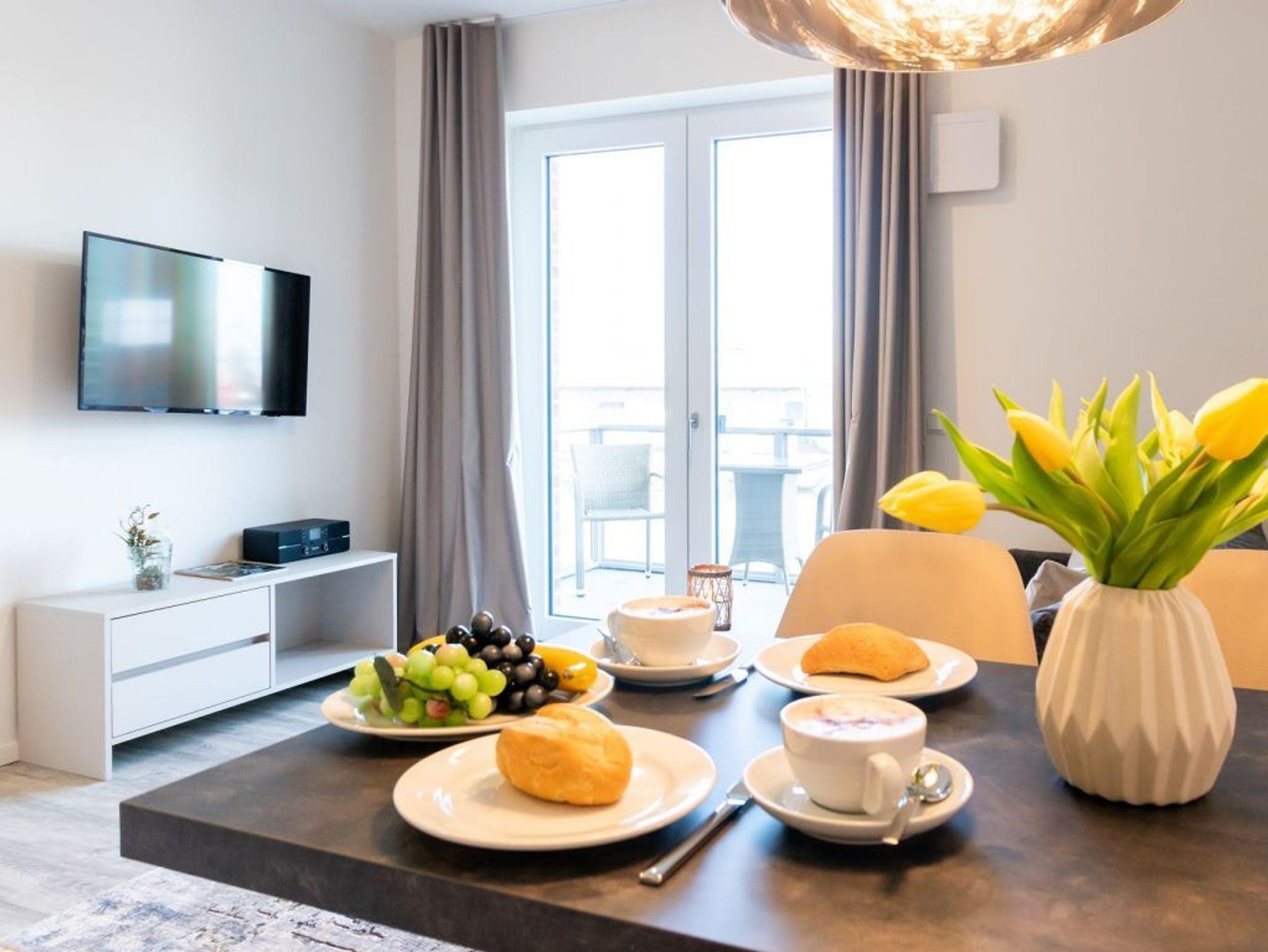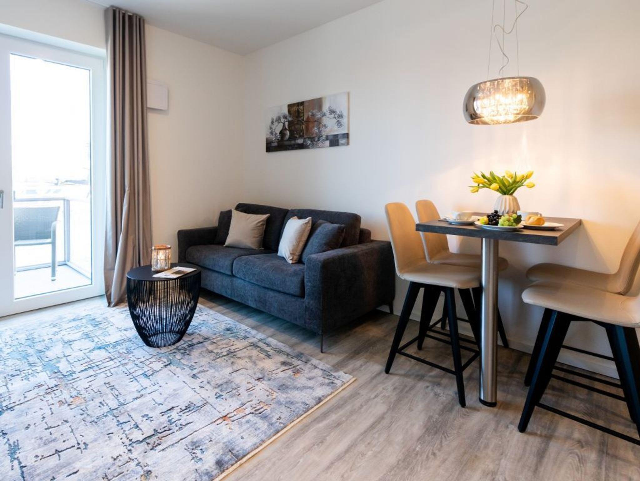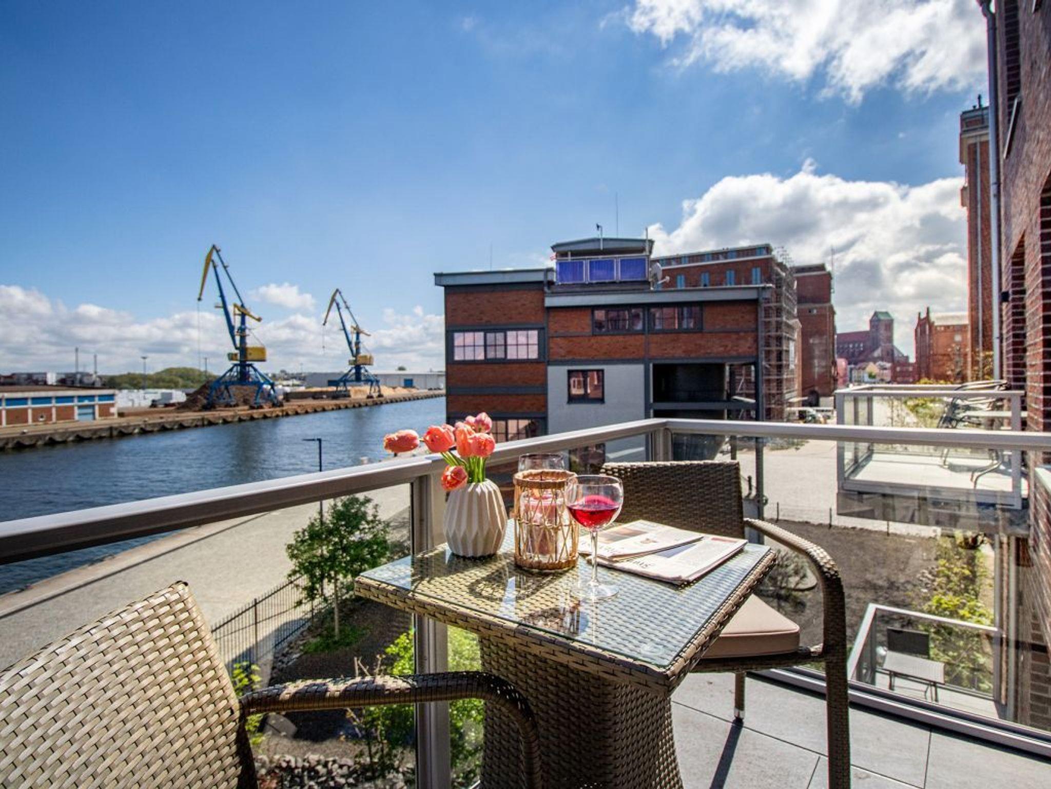 Exklusives 2-Zimmer-Appartement mit Balkon und Hafenblick in Wismar, modern und komfortabel ausgestattet.