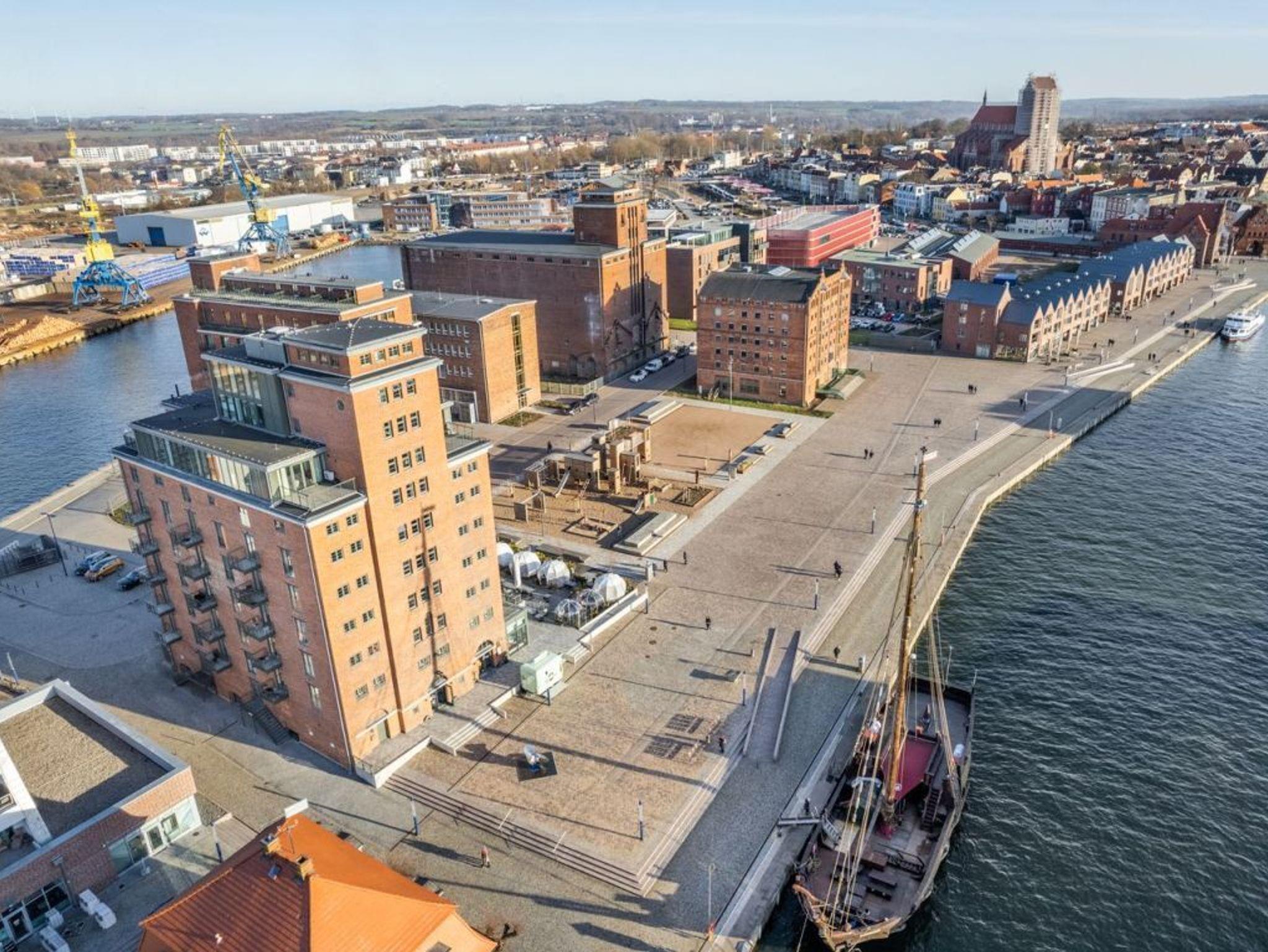 Direkt an der Spitze des Alten Hafens in Wismar steht der Ohlerich Speicher. Der ehemalige Getreidespeicher verfügt nach seiner Komplettsanierung im Jahre 2018 über 48 luxuriöse Ferienappartements und einen Lift.