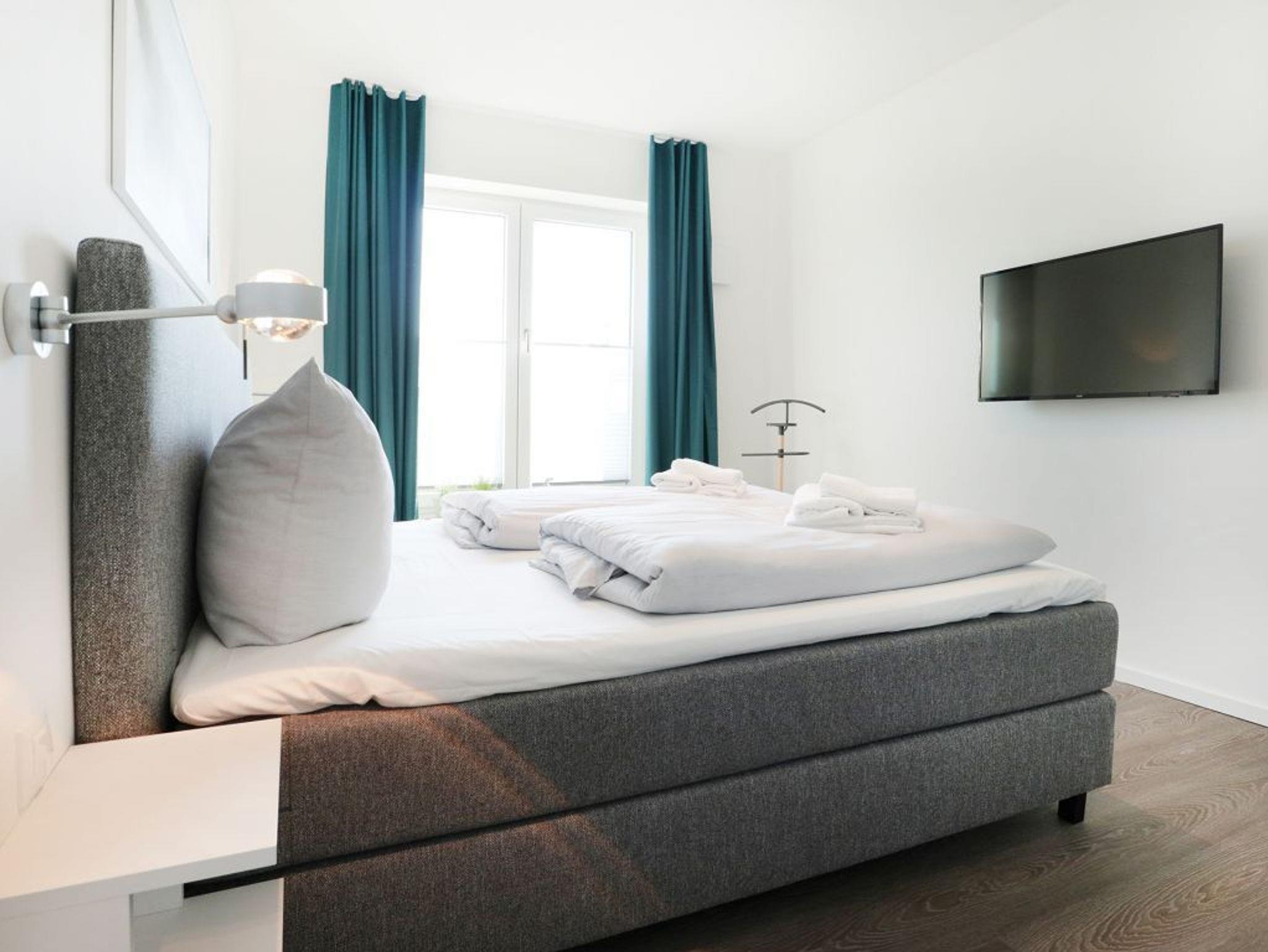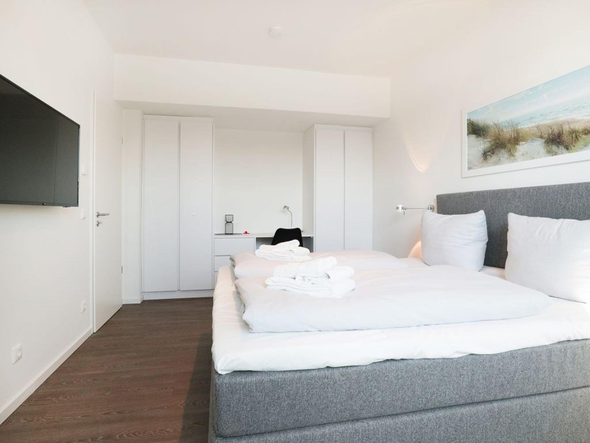 Jede Ferienwohnung bietet die Aussicht auf das Hafengebiet und die Ostsee. In der Hafenspitze befinden sich zudem eine Gäste Rezeption wie auch Gastronomie. Sie verbringen Ihren Aufenthalt in maritimer Umgebung und gelangen in wenigen Gehminuten zur Altstadt von Wismar mit historischen Bauten und Kirchen der Backsteingotik mit Aussichtsplattform und Blick über die Hansestadt. Die hier beschriebenen Ferienwohnung Hafenspitze 5 ist ein sehr komfortables 2- Zimmer Feriendomizil mit Balkon in Nord/Ost. Die geräumige Wohnfläche beträgt großzügige 59qm. Ein separates Schlafzimmer sowie zwei weitere Schlafmöglichkeiten und 1 moderndes Duschbad sind vorhanden. Bei Anreise sind bezogene Betten für 2 Personen inklusive. Bei Bedarf können weitere Wäschepakete hinzu gebucht werden. Die Belegung ist mit bis zu 4 Personen möglich. Es handelt sich um eine Wohnung für Nichtraucher.