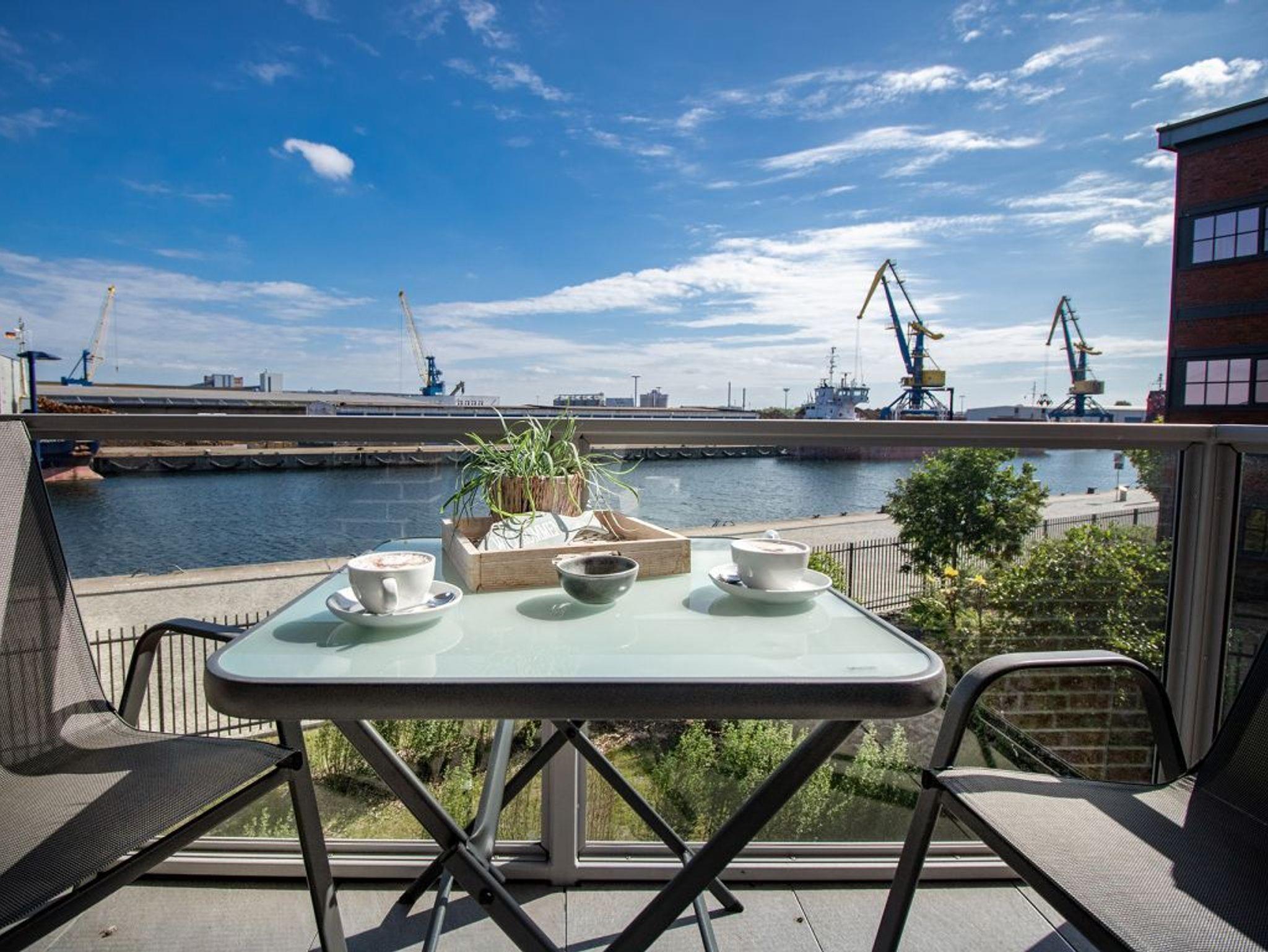 Luxuriöses 2-Zimmer-Appartement Hafenspitze 5 mit Balkon und Hafenblick in Wismar.