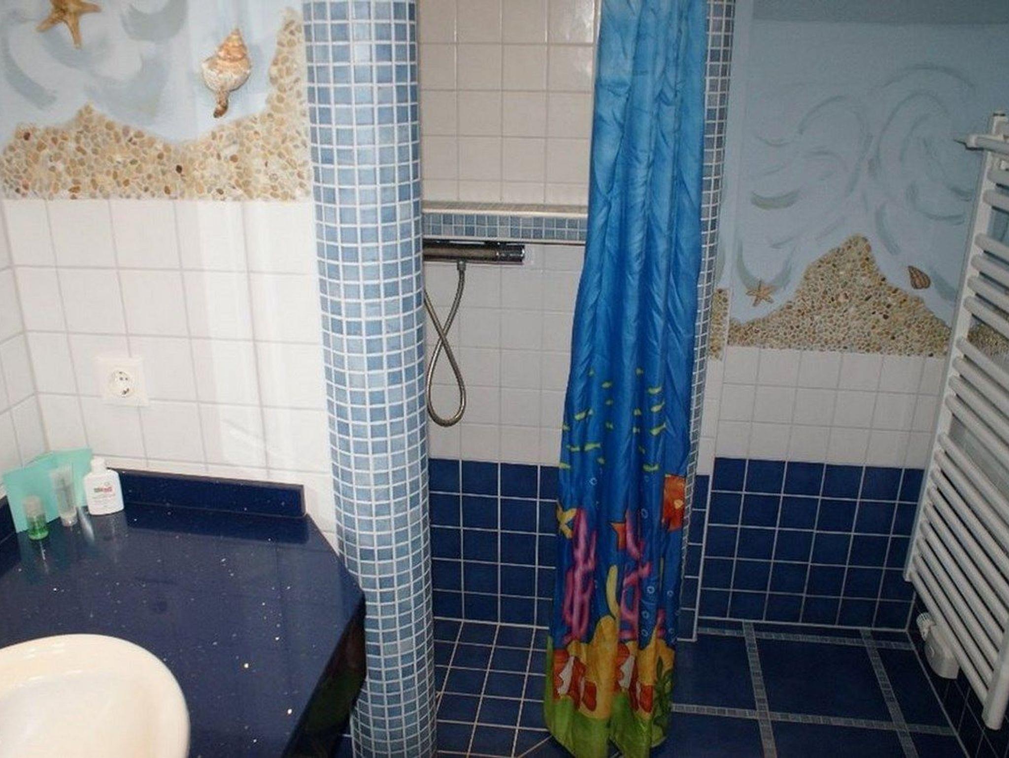Das exklusive Badezimmer (komplett gefliest) ist mit Dusche, Spiegelschrank, Toilette und Fön ausgestattet. Die Ferienwohnung ist mit Zentralheizung ausgestattet.