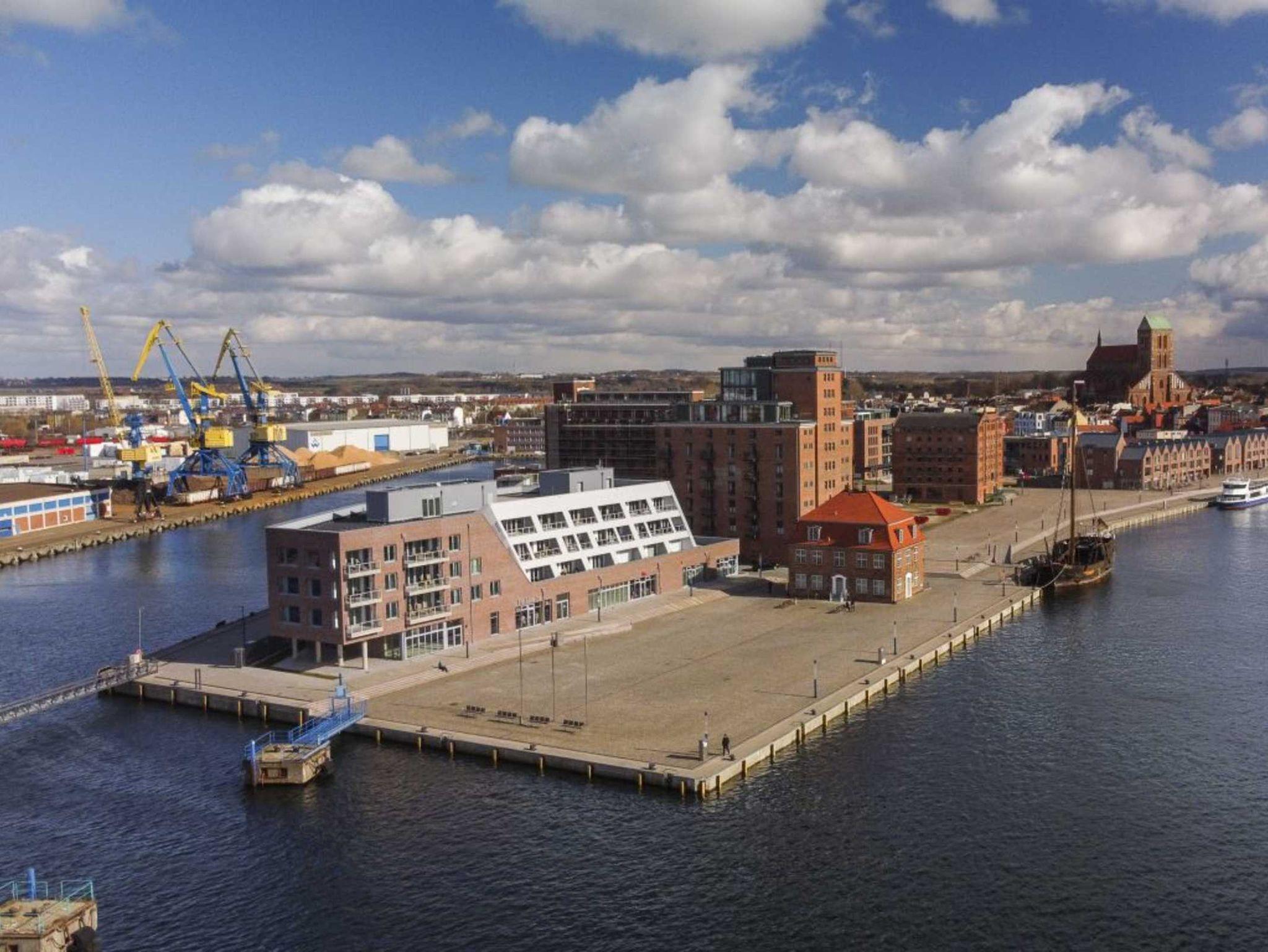Direkt am Alten Hafen der Hansestadt Wismar, befindet sich als Nachbargebäude zum restaurierten Ohlerich Speicher die neu erbaute Luxus Ferienwohnanlage “Hafenspitze“. Es erwarten Sie insgesamt 39 hotelähnliche, exklusive Ferienappartements jeweils mit Balkon, Loggia oder Terrasse. Bei den exzellenten Appartements handelt es sich um 2- und 3-Zimmer Wohnungen von 42qm bis 99qm Wohnfläche in hochwertiger Ausstattung. Alle Appartements verfügen über Fußbodenheizung. Die Wohneinheiten unterteilen sich über drei Geschosse und sind bequem mit dem Fahrstuhl erreichbar. Einige der Feriendomizile sind barrierearm konzipiert. Kostenfreie WLAN-Nutzung ist selbstverständlich. Fahrradabstellmöglichkeit in begrenzter Anzahl sind vorhanden. Jede Ferienwohnung bietet die Aussicht auf das Hafengebiet und die Ostsee. In der Hafenspitze befinden sich zudem eine BAIS-Gäste-Rezeption sowie Gastronomie und diverse kleine Shops. Sie verbringen Ihren Aufenthalt in maritimer Umgebung und gelangen in wenigen Gehminuten zur Altstadt von Wismar mit historischen Bauten und Kirchen der Backsteingotik mit Aussichtsplattform und Blick über die Hansestadt.