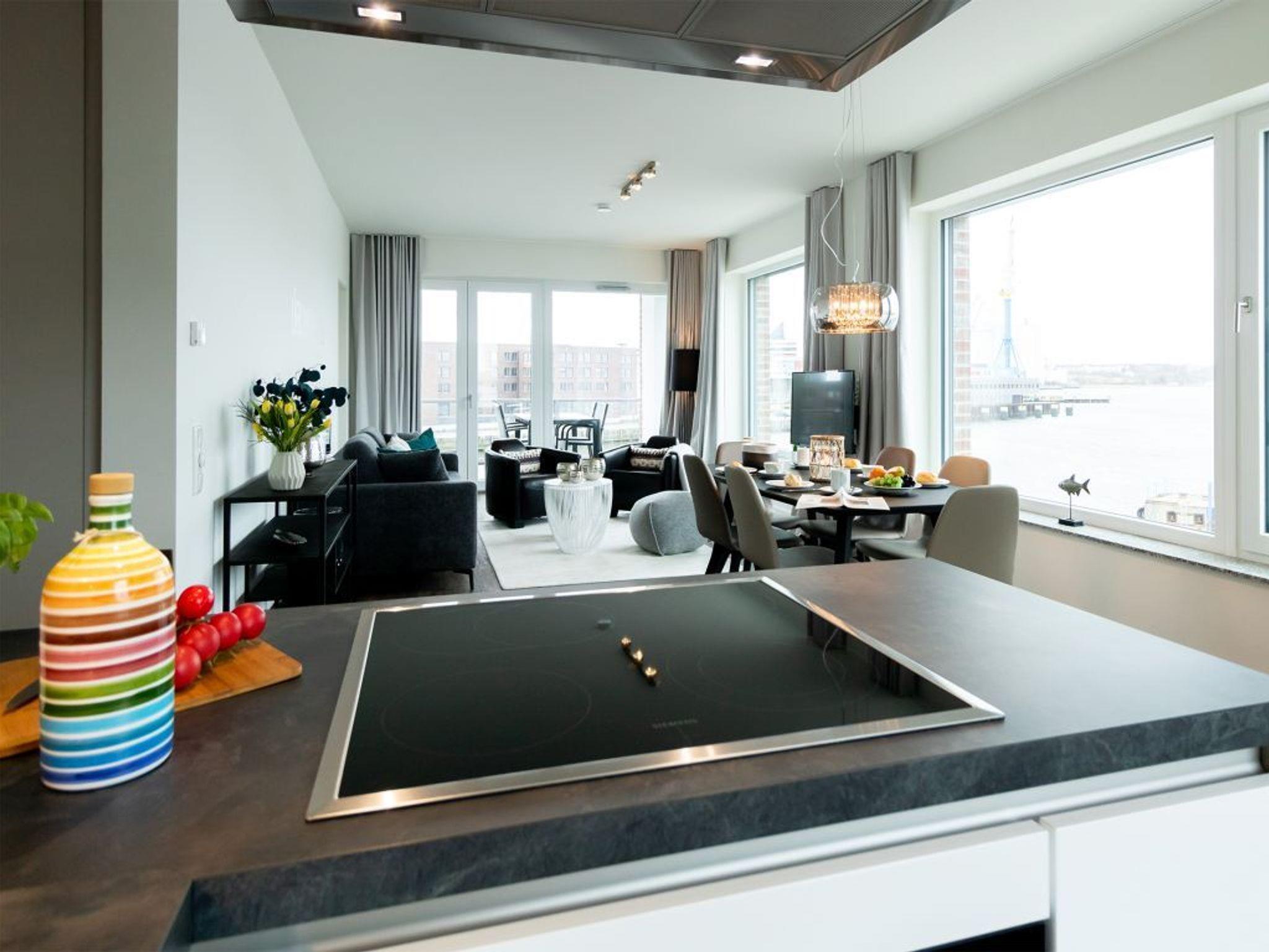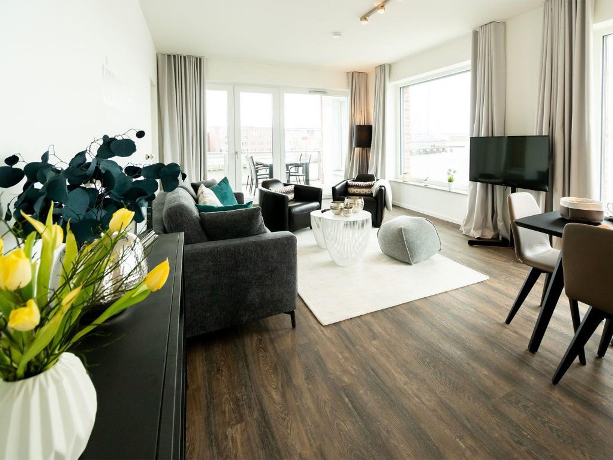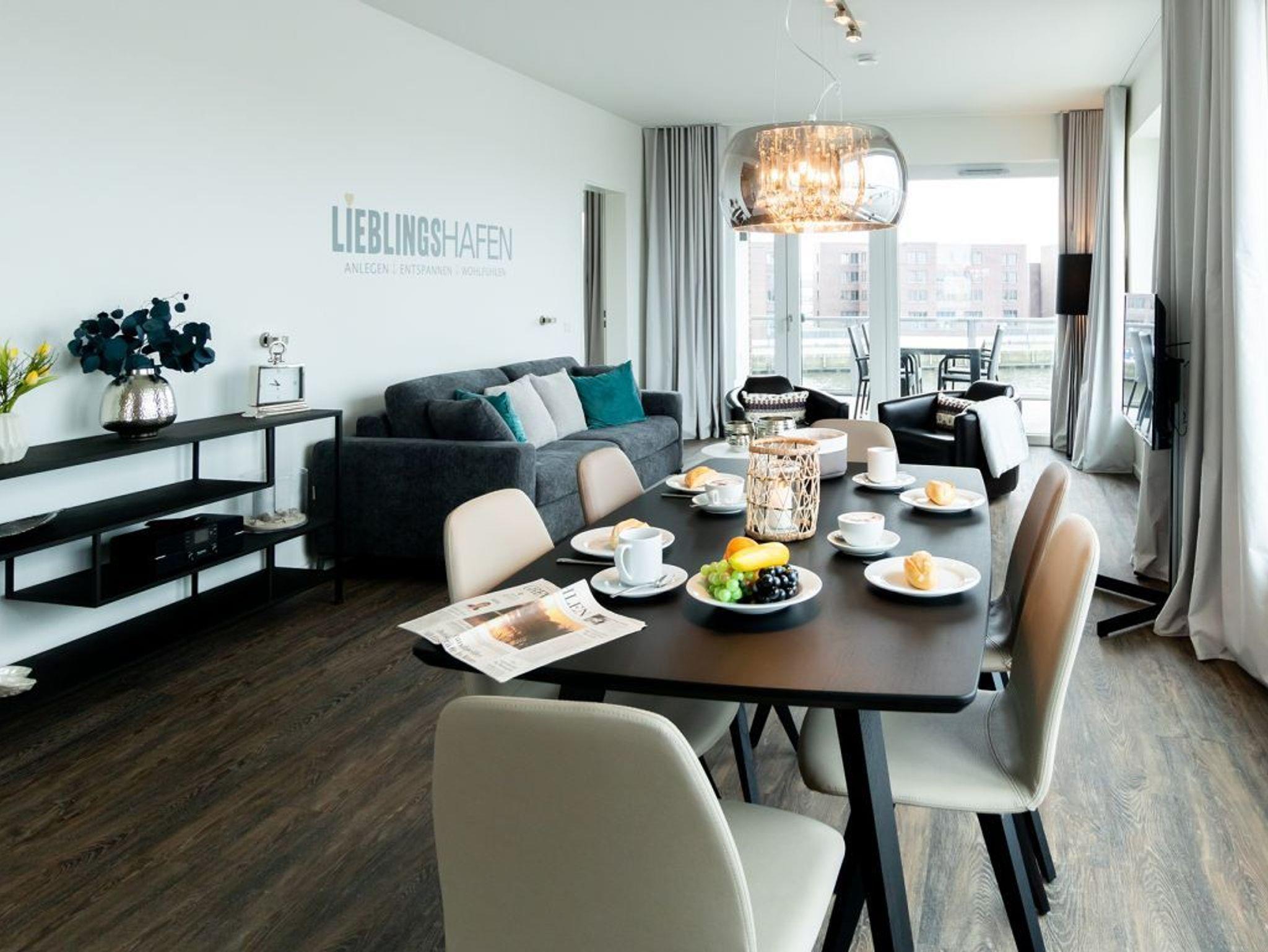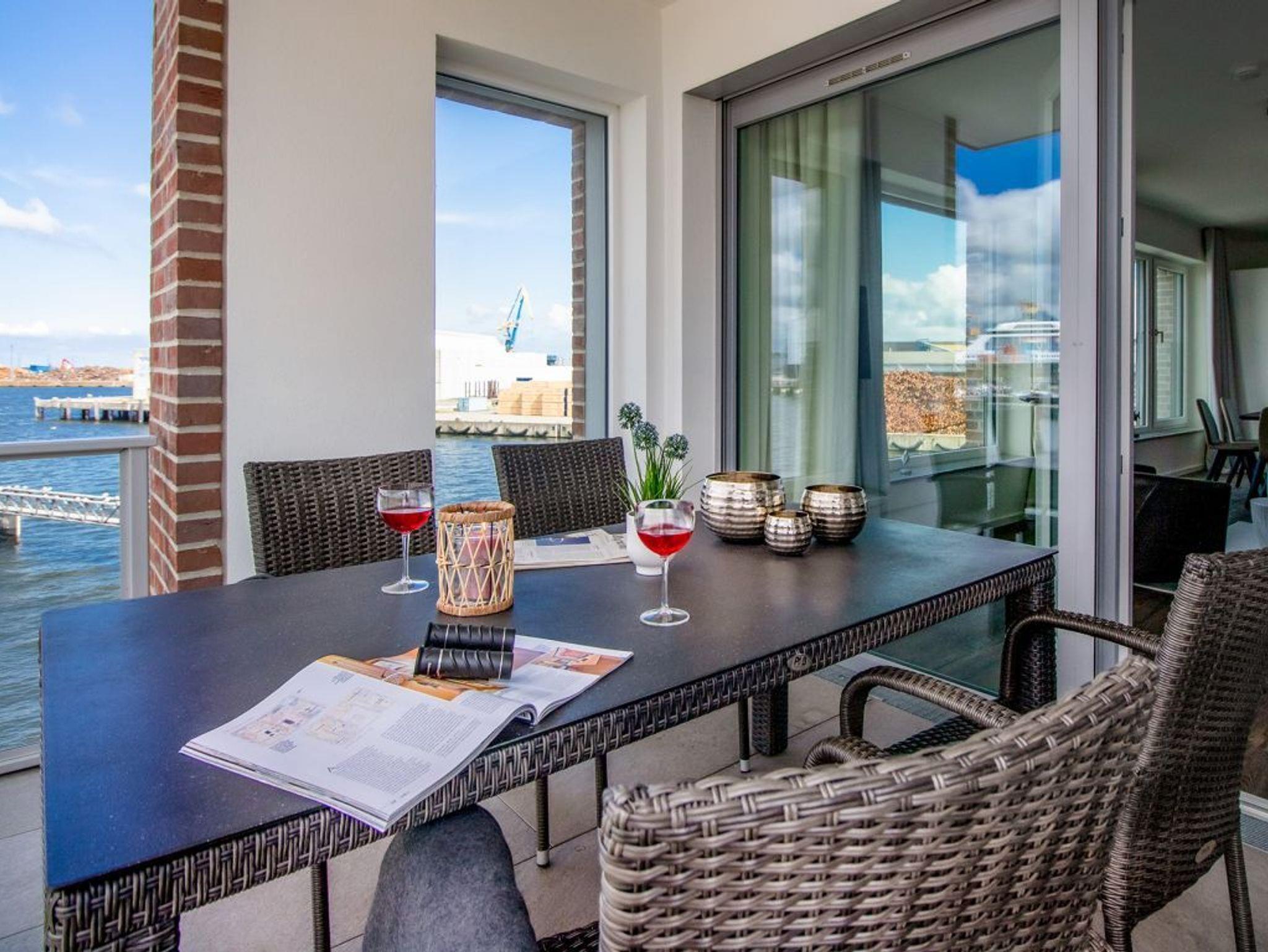 Fast schöner als zu Hause, ist es in der Luxus Ferienwohnung Pier 2.16 mit sonnigem Balkon und Blick auf den Hafen. Mit dem Fahrstuhl gelangen Sie leicht in die 2. Etage. Das Appartement empfängt Sie lichtdurchflutet und bietet Ihnen eine Wohnfläche von 99qm. Die Belegung ist mit maximal 6 Personen möglich. Der Wohn-Essbereich ist schick und modern möbliert zudem bieten Internet Radio wie auch Internet Fernsehen mit Hotelmodus Unterhaltung. WLAN nutzen Sie kostenfrei. Sie möchten sich während Ihres Aufenthaltes gerne selbst versorgen, so wird Ihnen die in den Wohnbereich integrierte Komfort Küchenzeile gut gefallen, welche mit Ceranfeldherd, Backofen, Mikrowelle, Geschirrspüler voll ausgestattet ist.