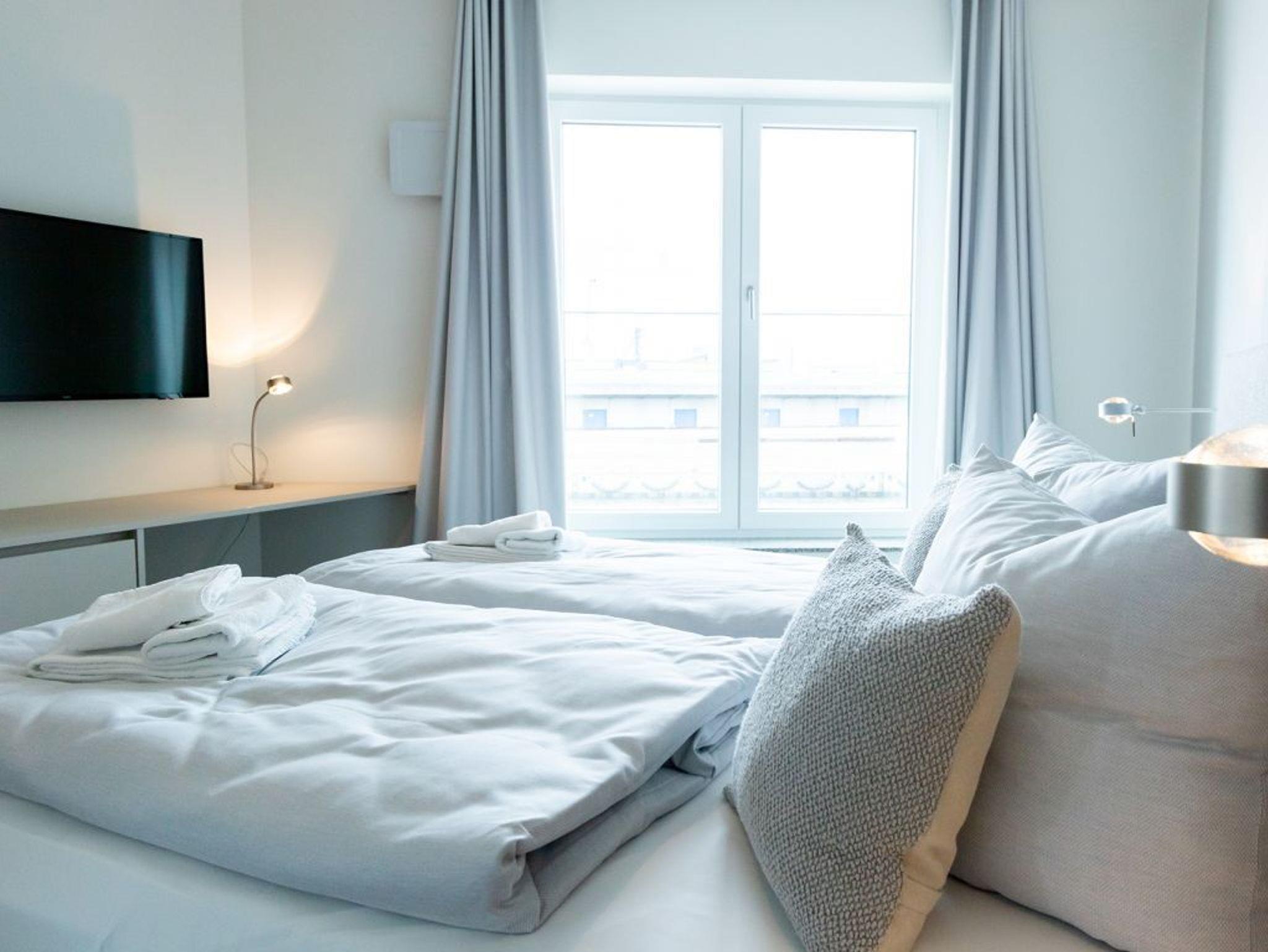 Luxuriöse 3-Zimmer-Ferienwohnung Hafenspitze 16 im 2. Obergeschoss mit Meerblick. Sonniger Balkon mit Hafenblick. Sehr großzügige Wohnfläche von 99qm. Ideal für bis zu 4 Personen. Voll ausgestattete Komfort Küchenzeile somit ist auch die Selbstversorgung möglich. Zwei separates Schlafzimmer zudem 2 schicke Duschbäder. Bei Anreise sind bezogene Betten sowie Handtücher für 2 Personen inklusive. Eine Belegung ist mit bis zu 6 Personen möglich. Es handelt sich um eine Nichtraucherwohnung. Parkmöglichkeiten stehen gegen Gebühr im Parkhaus in ca. 300 Meter zur Verfügung.