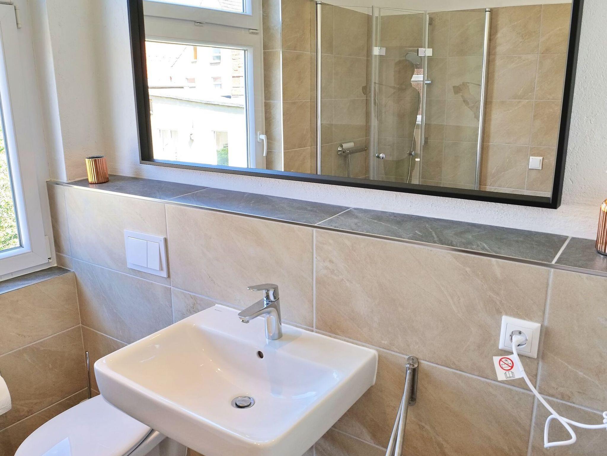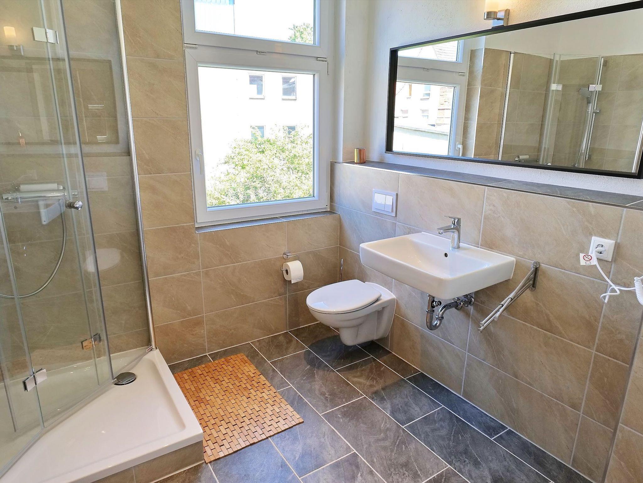 - Duschbad mit Dusche, WC, Spiegel und Ablage