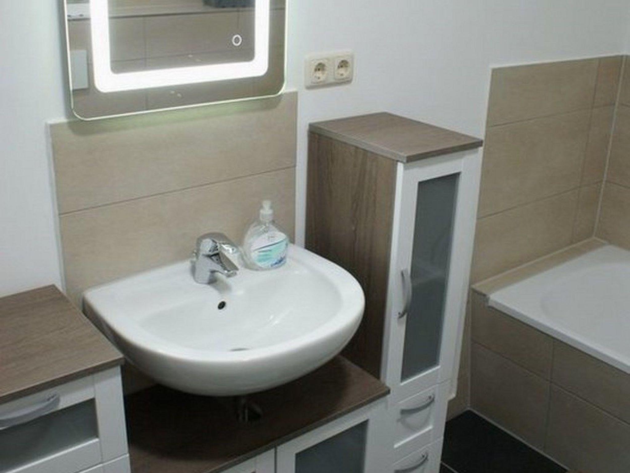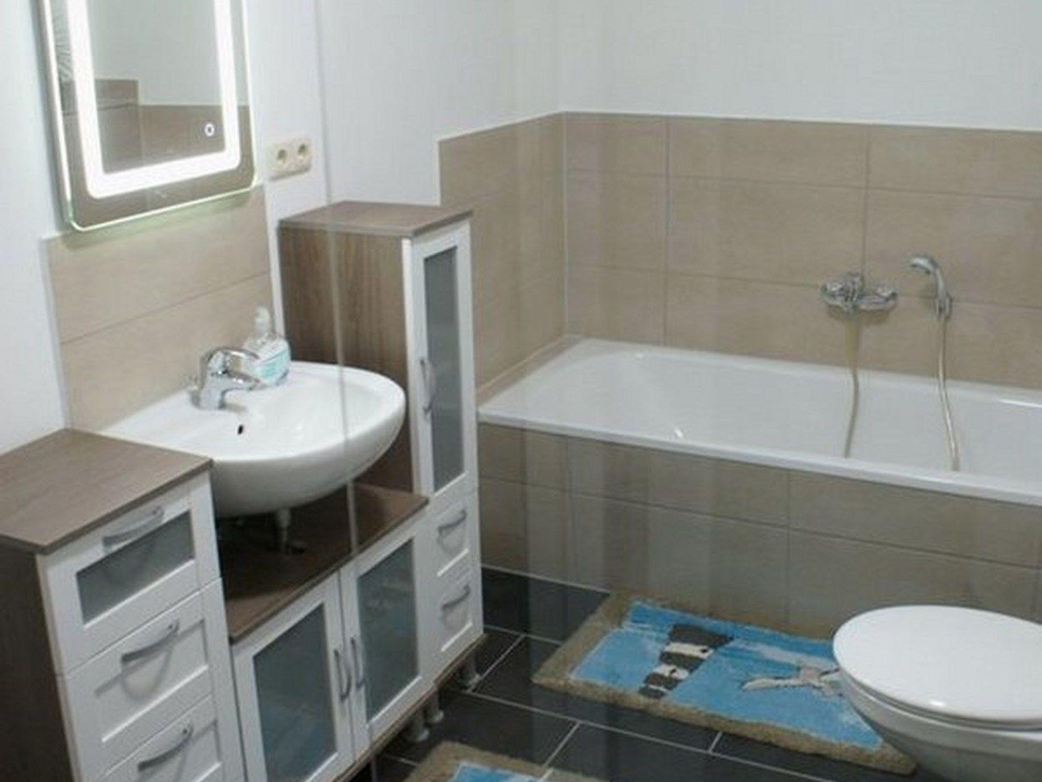 - Vollbad mit Badewanne, Dusche, WC, Spiegel und Ablage, Waschmaschine
