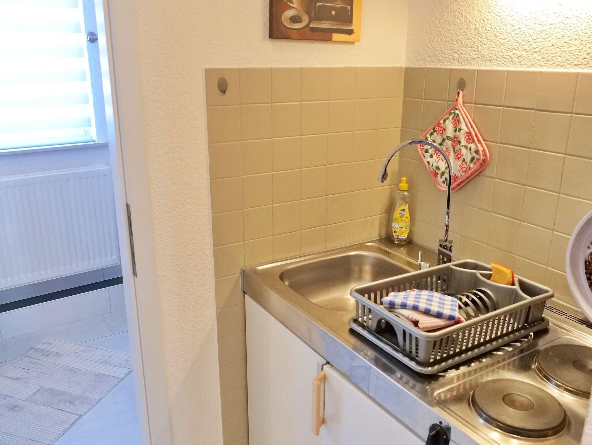 - voll ausgestatte Küchenzeile (Backofen, Kühlschrank, Toaster, Geschirr, Besteck, Töpfe uvm.)