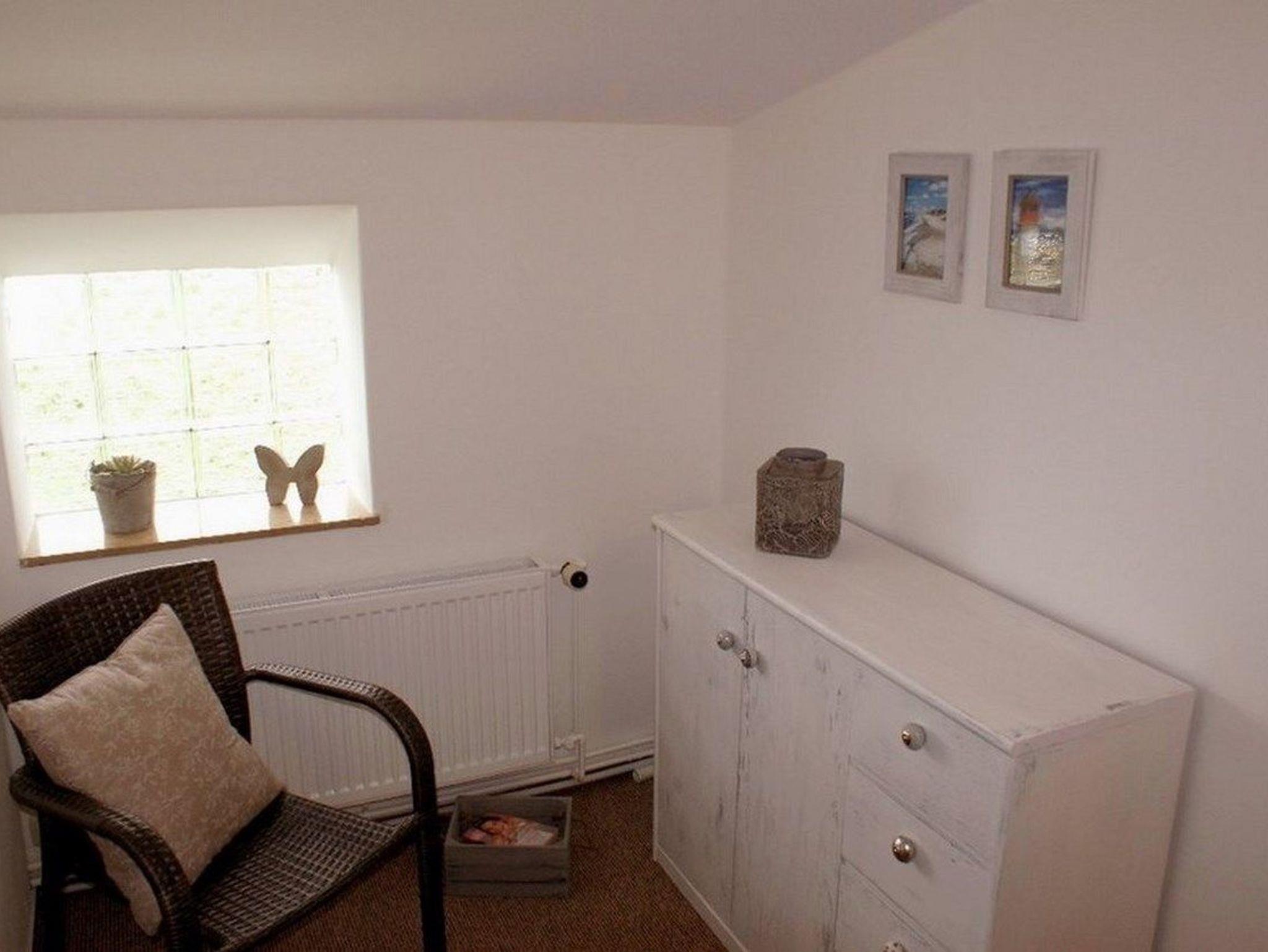 Das Ferienhaus (100 m² für maximal 6 Personen ) hat ein Wohnzimmer mit Schlafsofa, eine Wohnküche, ein großes Bad, ein Schlafzimmer im Erdgeschoss mit Einzelbett, ein Schlafzimmer im Obergeschoss mit 2 Einzelbetten und ein weiteres Schlafzimmer mit Doppelbett, sowie Einzelbett. Weiterhin finden Sie im Obergeschoss zusätzliches WC mit Handwaschbecken.
