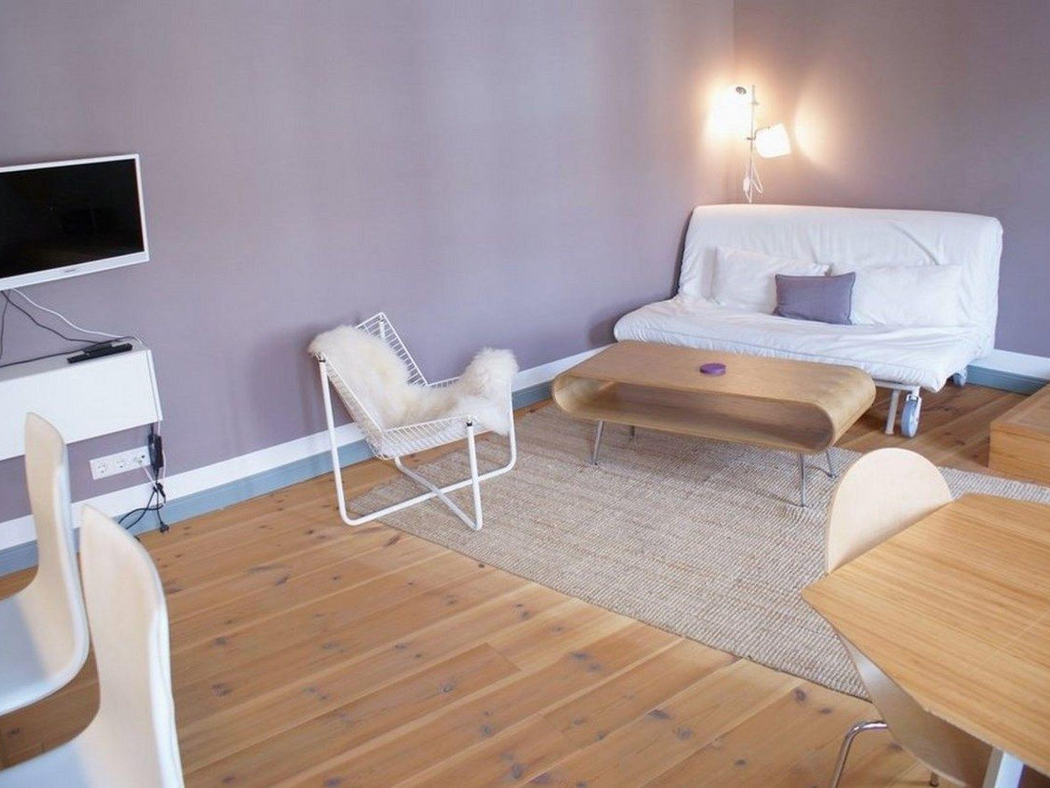 - 1 Wohnzimmer mit Couch und Essbereich, Flat-TV, Radio