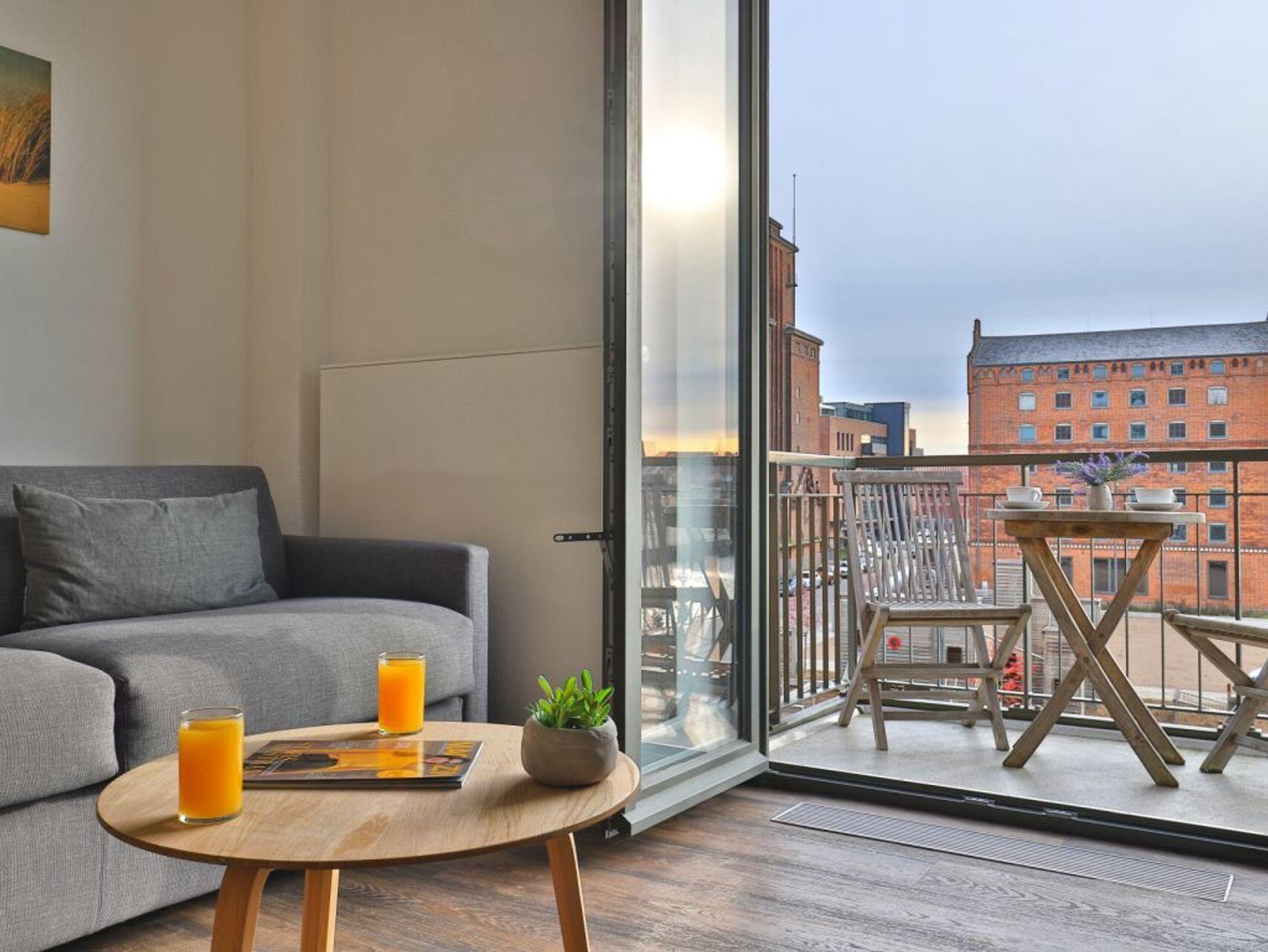 Auf 55 m² Wohnfläche können 4 Personen einen exklusiven Urlaub verbringen. Das hochwertig eingerichtete 2 Zimmer-Appartement in der 2. Etage verfügt über ein Wohn-/ Esszimmer mit einer Schlafcouch, einem TV-Gerät, sowie einer komplett ausgestatteten integrierten Küche ( mit u.a. Mikrowelle, Geschirrspüler, Kaffeemaschine, Kühlschrank, Wasserkocher uvm.). Von dort aus haben Sie direkten Zutritt zu dem Balkon, der Ihnen eine spektakuläre Aussicht auf die wunderschöne Altstadt und den historischen Hafen bietet. Das Schlafzimmer sorgt mit seinem großen Doppelbett für erholsamen Schlaf. Das stilvoll eingerichtete Bad verfügt über eine ebenerdige Dusche. Bei Anreise sind 2 Betten bezogen und Handtücher liegen für Sie bereit. WLAN steht Ihnen kostenfrei zur Verfügung.