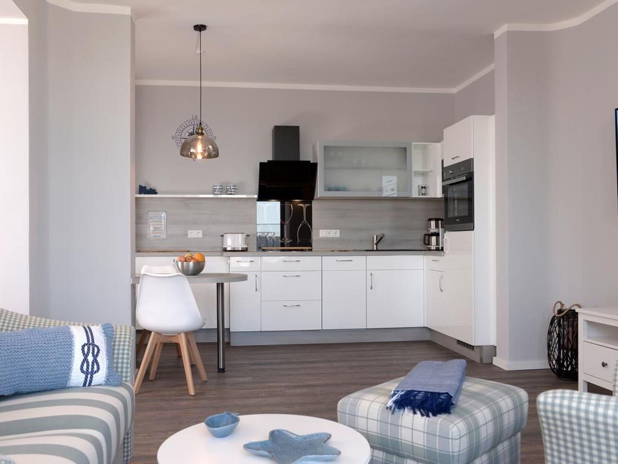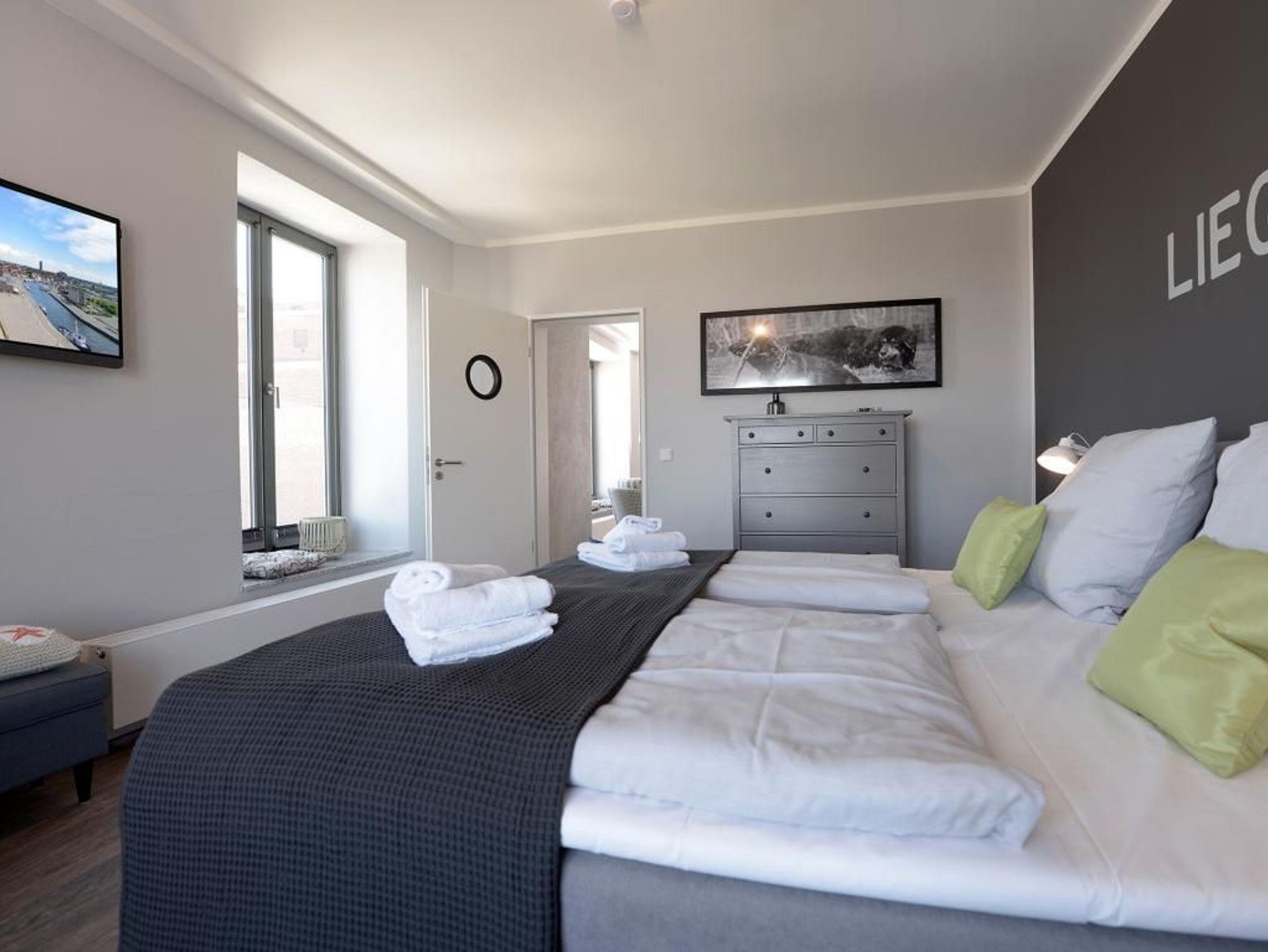 Appartementhaus mit 48 Appartements. Das stilvoll eingerichtete 2-Zimmer-Appartement befindet sich in der 3. Etage des Ohlerich Speichers. Die Wohnung ist 57m² groß und verfügt über ein komfortables Wohnzimmer mit Fernseher und integrierter Küche. Diese ist komplett mit einem Kühlschrank, einer Mikrowelle, einem Geschirrspüler, einem Wasserkocher und einer Kaffeemaschine und vielem mehr ausgestattet. Das hochwertig eingerichtete Schlafzimmer lädt zum Verweilen ein. Außerdem können Sie sich in dem wunderschön gestalteten Badezimmer entspannen und die Seele baumeln lassen. Bei Anreise sind die Betten bezogen und Handtücher liegen für Sie bereit. WLAN steht für Sie kostenfrei zur Verfügung. In unmittelbarer Nähe sind öffentliche Parkplätze vorhanden.