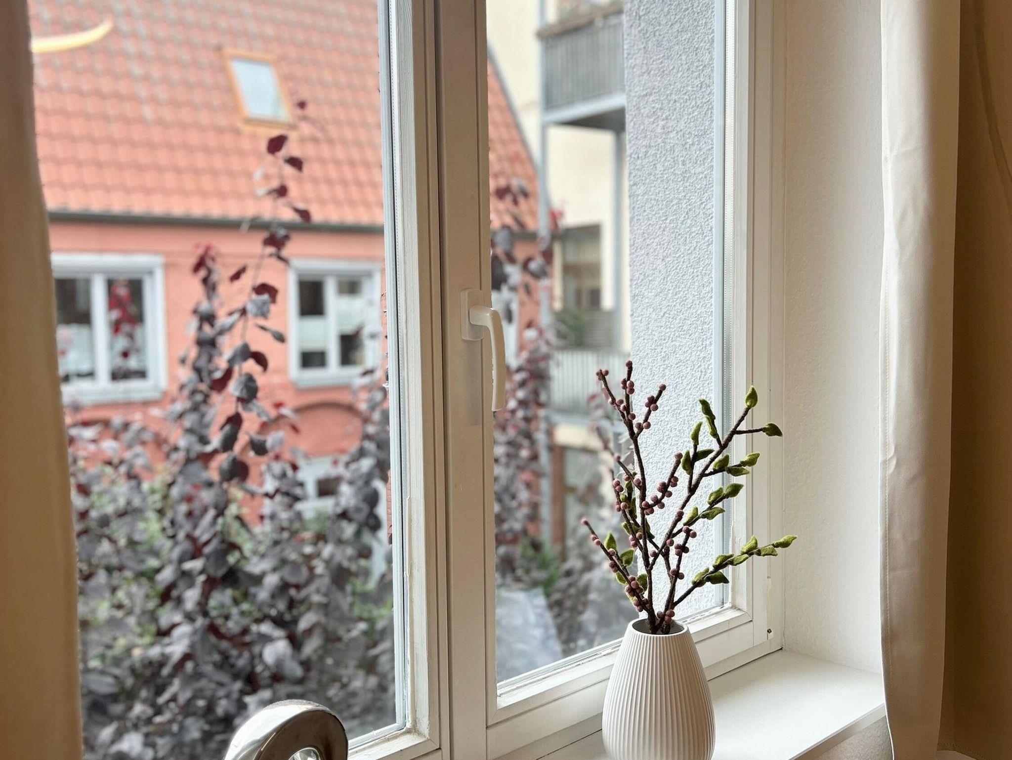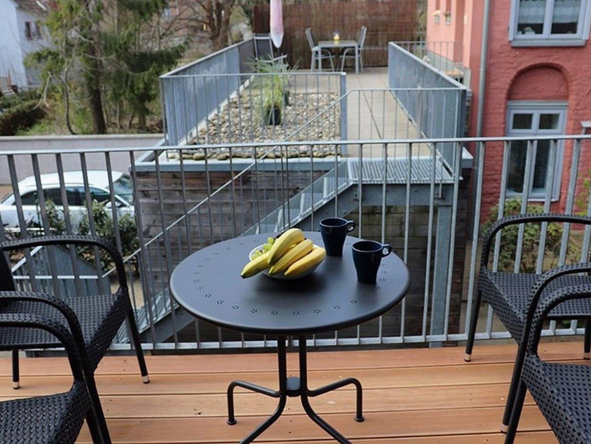 Exklusive Ferienwohnung Bakgardssvit in Wismars Altstadt mit Balkon und moderner Ausstattung, ideal für erholsame Tage in zentraler Lage.