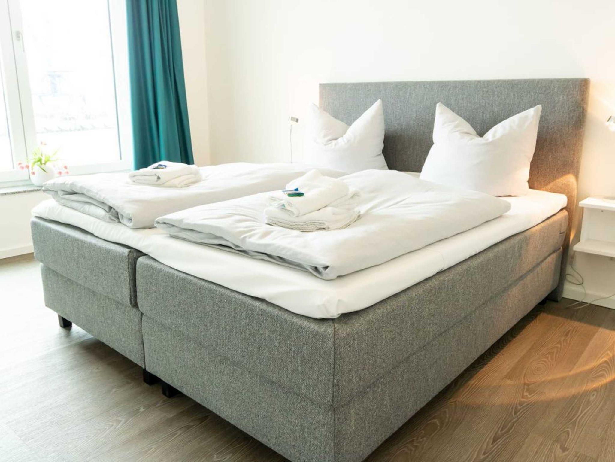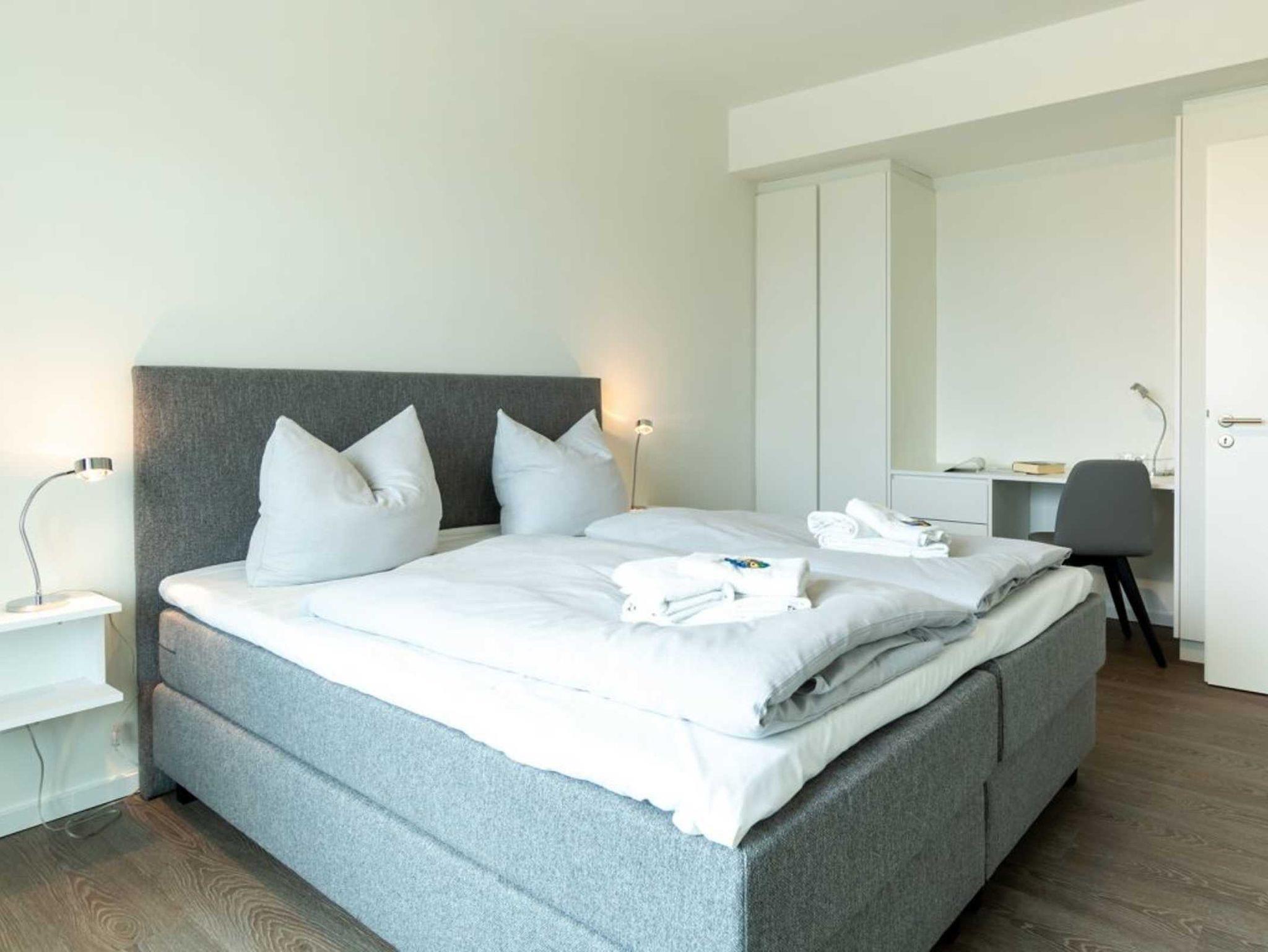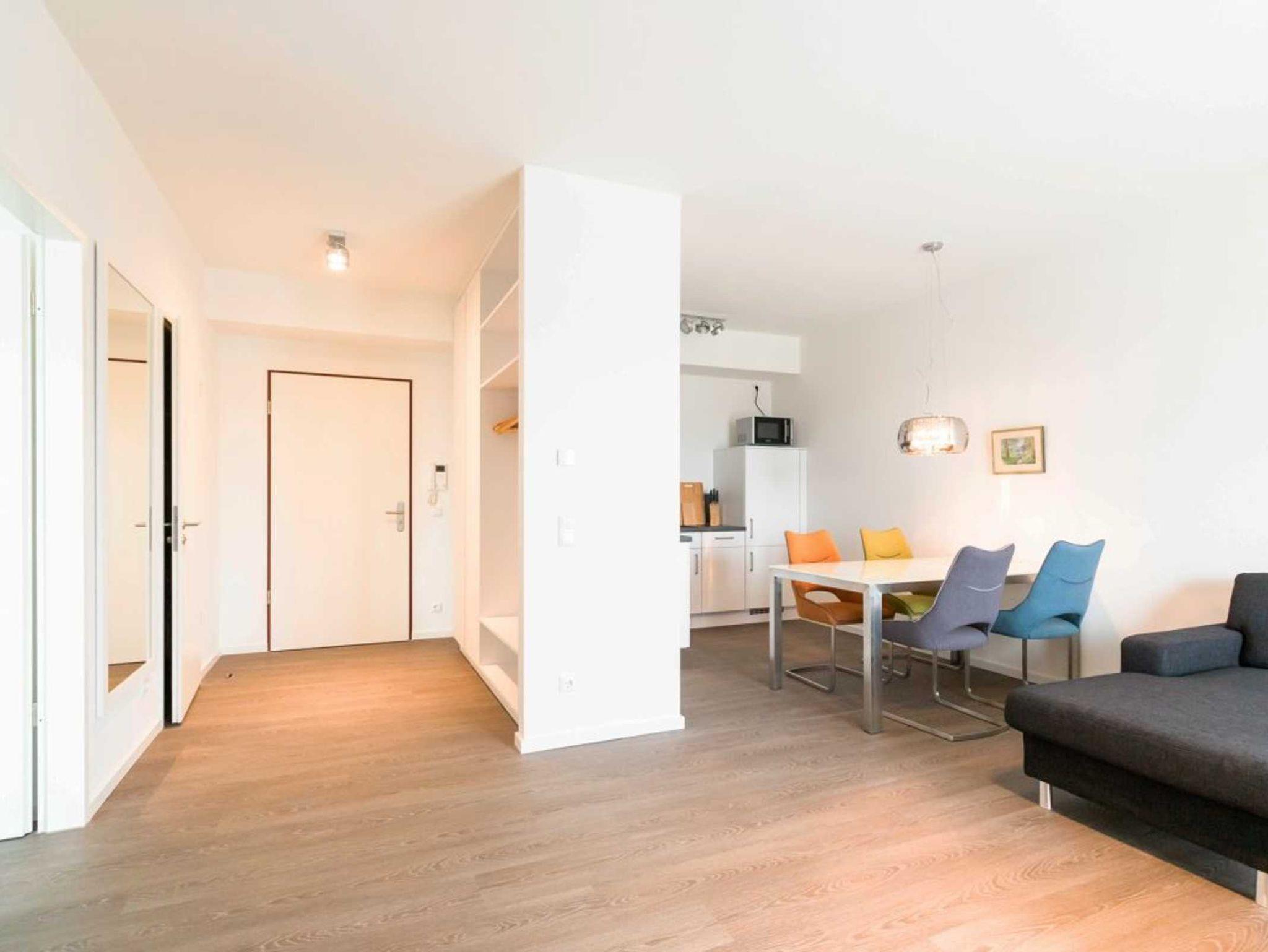 Im modernen Ambiente begrüßt Sie mit einer geräumigen Wohnfläche von 59qm dieses schicke 2-Zimmer-Appartement mit Balkon in der Hafenspitze 4. Die attraktive Ferienwohnung ist auf eine Belegung mit bis zu 4 Personen ausgelegt. Der geräumige Wohn-/ Essbereich mit bodentiefen Fenstern, lässt Sie komfortabel möbliert und zudem mit internetfähigem Flatscreen einen sehr angenehmen Aufenthalt genießen. Zwei zusätzliche Schlafmöglichkeiten, falls Sie mit mehr als 2 Personen anreisen möchten, sind vorhanden. WLAN steht kostenfrei zur Verfügung.