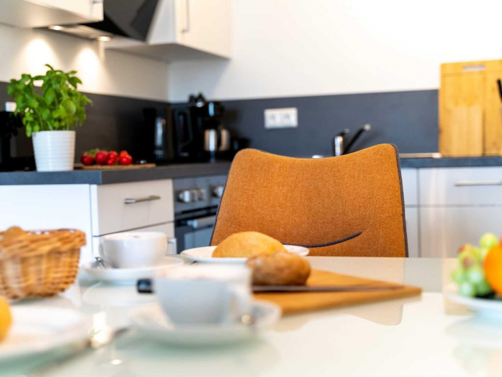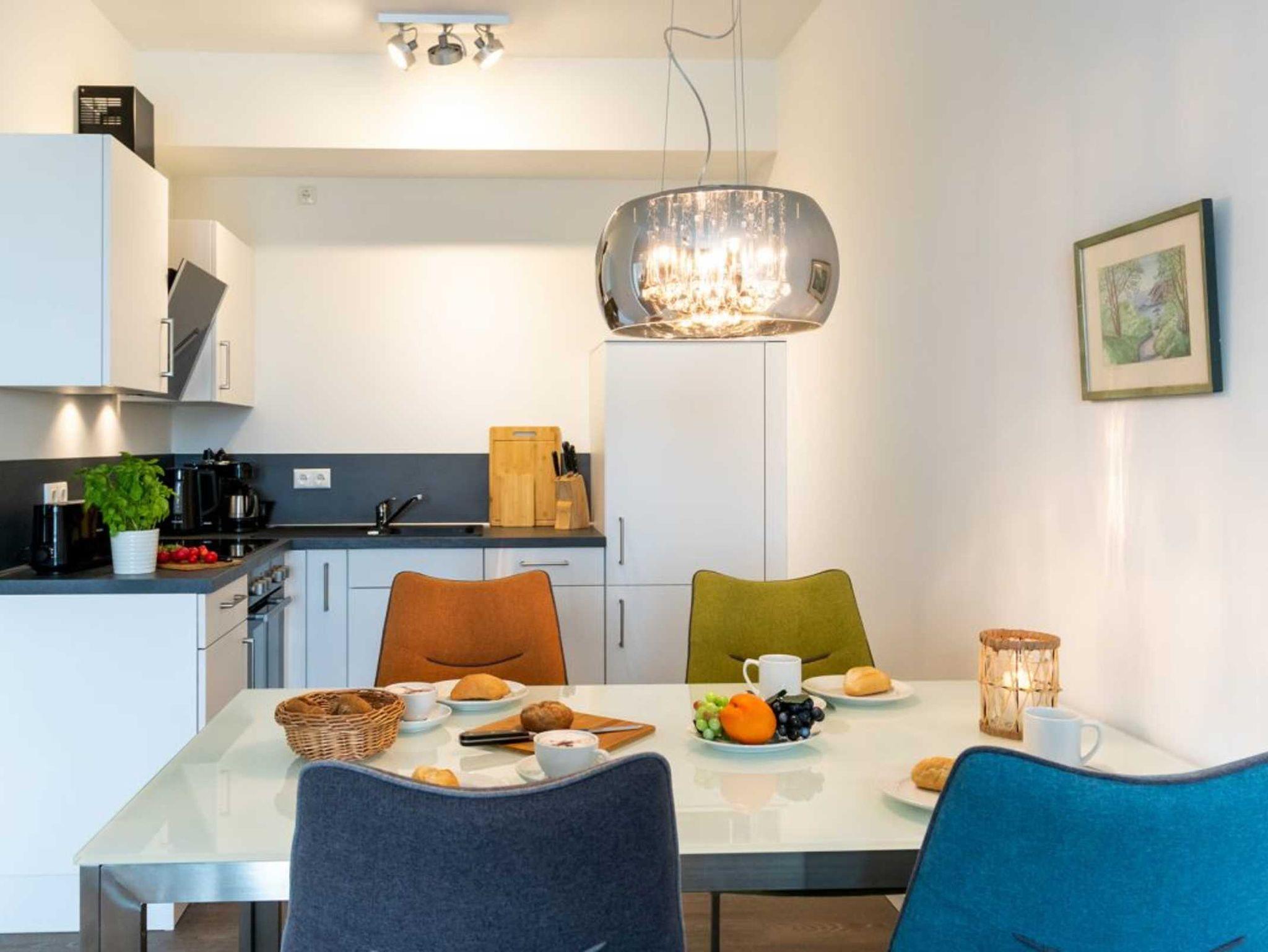 Für Selbstversorger bietet eine in den Wohnraum integrierte, hochwertige Küchenzeile besten Komfort mit einem Herd, Backofen, Mikrowelle, Kühlschrank, Geschirrspüler, Kaffeemaschine, Wasserkocher usw. Der zugehörige Balkon in Nord/Ost Ausrichtung bietet Ihnen die Sicht über den Holzhafen. Ihre Nächte verbringen Sie in einem separaten Schlafzimmer mit Doppelbett. Des Weiteren erwartet Sie ein modernes, innenliegendes Duschbad. Bei Anreise sind als inklusive Leistung die Betten für 2 Personen bereits bezogen und Handtücher liegen ebenso für 2 Personen bereit. Sollten Sie mit dem PKW anreisen, so befinden sich Stellplätze gegen Gebühr im neu erbauten Parkhaus am Hafen in ca. 300 Meter. Bitte beachten Sie, dass es sich um ein Nichtraucherdomizil handelt.