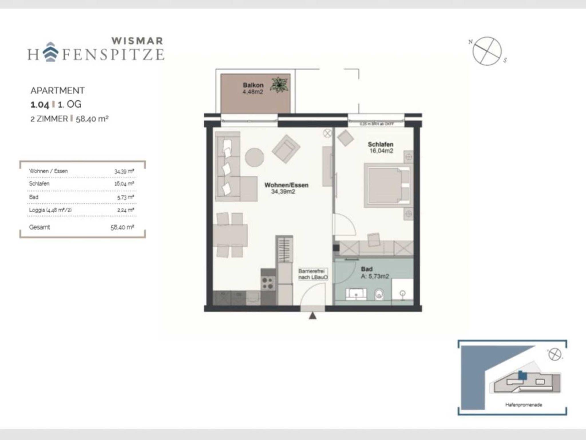 Jede Ferienwohnung bietet die Aussicht auf das Hafengebiet und die Ostsee. In der Hafenspitze befinden sich zudem eine Gäste Rezeption wie auch Gastronomie. Sie verbringen Ihren Aufenthalt in maritimer Umgebung und gelangen in wenigen Gehminuten zur Altstadt von Wismar mit historischen Bauten und Kirchen der Backsteingotik mit Aussichtsplattform und Blick über die Hansestadt. Bei der hier beschriebenen Ferienwohnung Hafenspitze 4, handelt es sich um eine im 1. Obergeschoss liegende 2-Zimmer-Wohnung mit Balkon. Die Wohnfläche beträgt 59qm. Ein separates Schlafzimmer sowie 2 weitere Schlafmöglichkeiten sind vorhanden. Bei Anreise sind bezogene Betten sowie Handtücher für 2 Personen inklusive. Bei Bedarf können weitere Wäschepakete hinzu gebucht werden. Die Belegung ist auf maximal 4 Personen ausgerichtet. In der Hafenspitze 4 ist Rauchen untersagt Haustiere sind nicht gestattet.