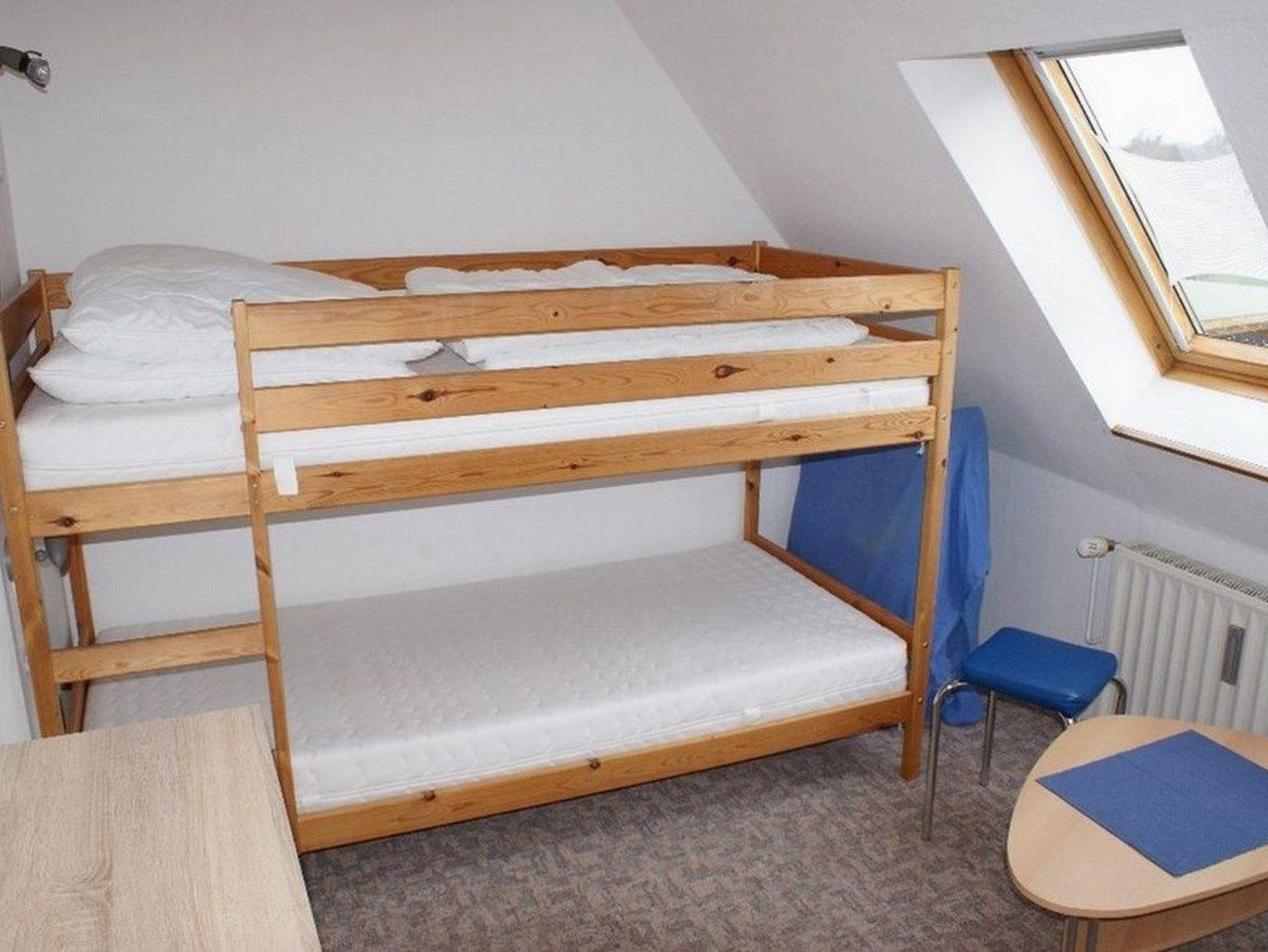 - 3. Schlafzimmer mit Einzelbett, ein kleiner Tisch sowie zwei Stühle und ein kleiner Schrank. Ein Gästebett könnte hier zur Not aufgestellt werden.