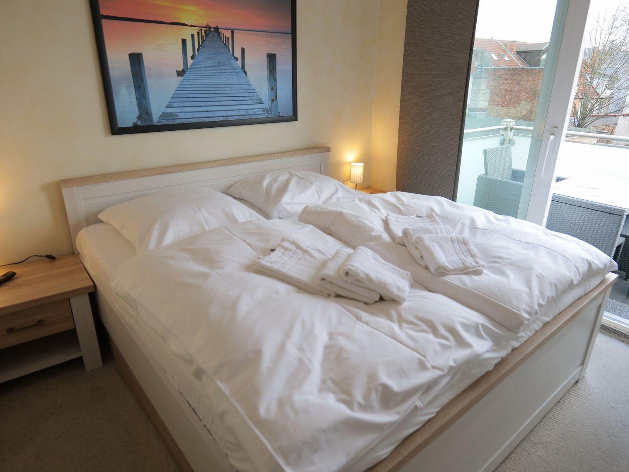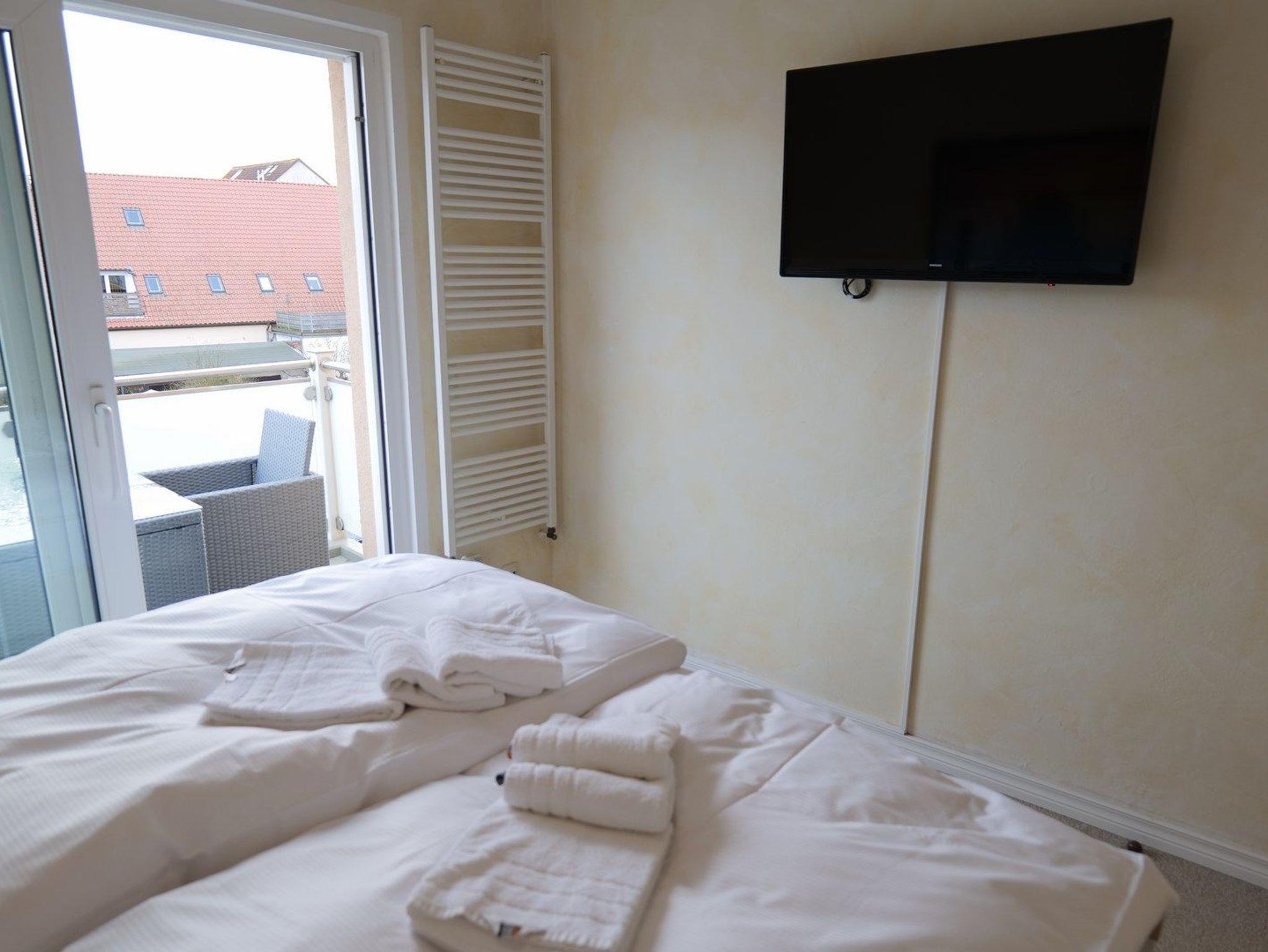 - separates Schlafzimmer mit Doppelbett (1,80 x 2,00m) und Flat-TV (ruhig gelegen zum Innenhof)