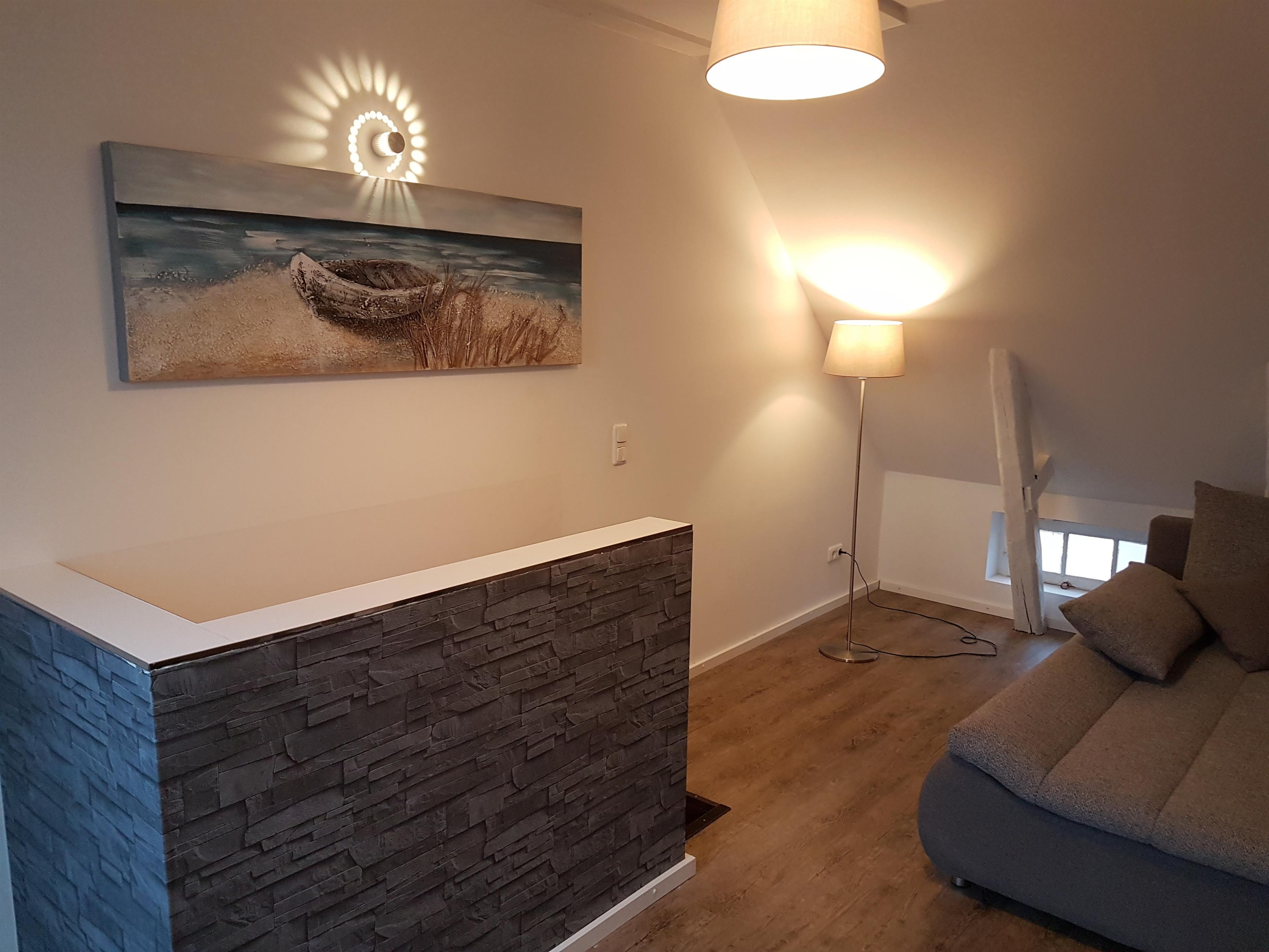 Unser Haus ist ein typisches Wismarer Stadthaus mit ca. 100 m² und liegt in einer ruhigen kleinen Gasse nahe der Altstadt (5 Gehminuten) und dem Hafen (2 Gehminuten), es bietet viel Platz für bis zu 7Personen auf 3 Etagen. Im Erdgeschoss befindet sich das erste Schlafzimmer , direkt daneben ein Duschbad mit Toilette inklusive Föhn. Weiterhin befindet sich hier die komplett ausgestattete Küche .Direkt daneben ist in der gemütlichen Essecke .. Im kleinen Innenhof, der mit WPC-Terrassendielen ausgelegt wurde. Über eine typische Altstadthaus-Treppe (steil) gelangen sie ins Obergeschoss, wo sich ein kombinierter Wohn- und Schlafraum befindet. , im Wohnraum befindet sich ein gemütliches Tagesbett, welches nochmals Platz für zwei Personen bietet. Direkt nebenan befindet sich das großzügige Badezimmer mit Eckbadewanne, Waschmaschine. Auch kann man es sich beim Lesen, Musik hören oder Entspannen im Ohrensessel in der mittleren Galerie gemütlich machen. Wiederum über eine steile Treppe gelangt man ins Dachgeschoss mit dem grosszügigen Wohnzimmer. Hier kann man mit der Familie sich es beim Fernsehen auf der großen Eckschlafcouch gut gehen lassen oder einfach nur dem Knistern des Kamins lauschen. Oder man genießt den Ausblick auf den Hafen bei einem Gläschen Wein auf der Dachterrasse.