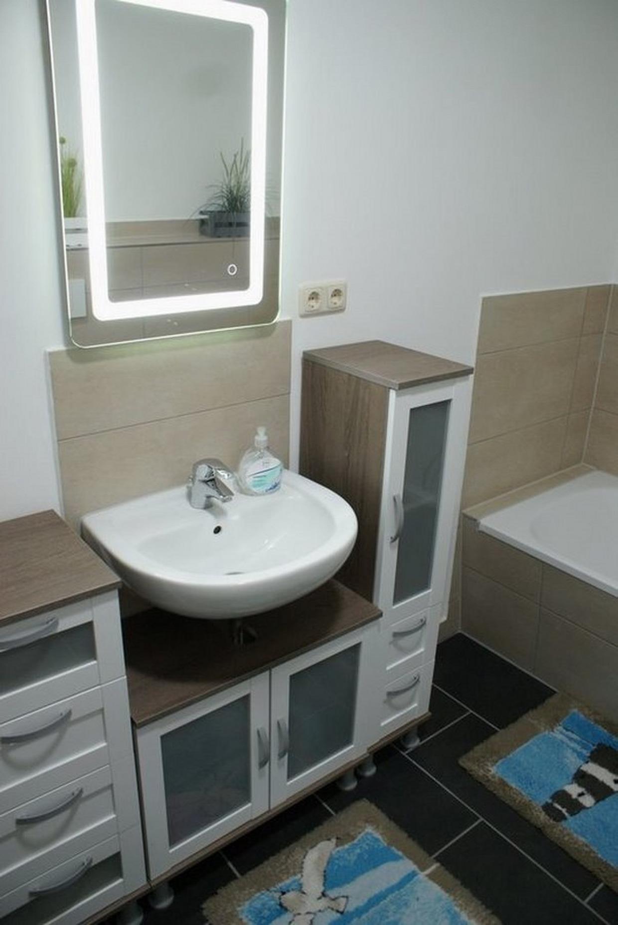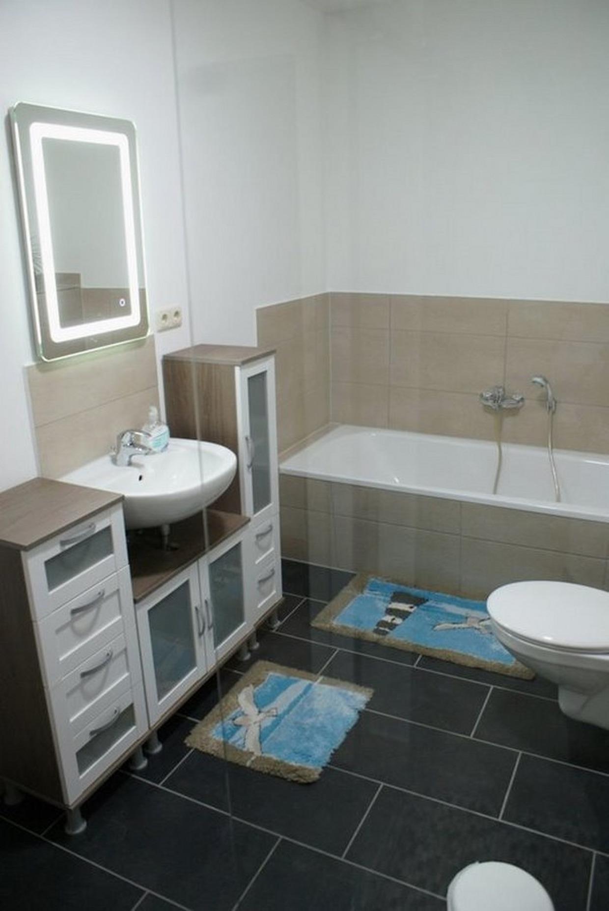 - Vollbad mit Badewanne, Dusche, WC, Spiegel und Ablage, Waschmaschine