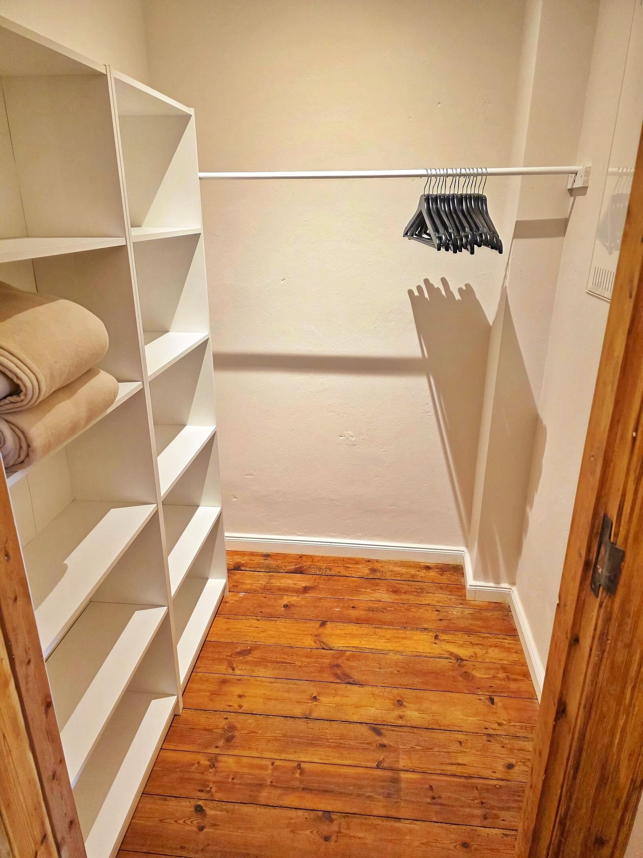 Über den Flur gelangen Sie in zwei begehbare Kleiderschränke/Räume, die Ihnen viel Stauraum für Kleidung, Gepäck und persönliche Dinge bieten – eine Seltenheit in Altstadtwohnungen und ein echtes Komfort-Plus.