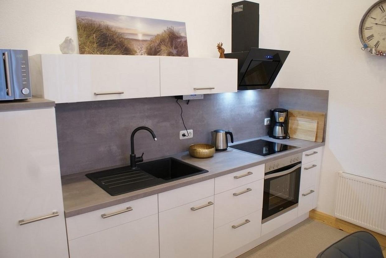 - offene Küche vollausgestattet u.a. mit Geschirrspüler, Backofen, Ceranfeld, Mikrowelle, Kaffeemaschine, Geschirr, Besteck, Gläser, Kühlschrank mit Gefrierteil