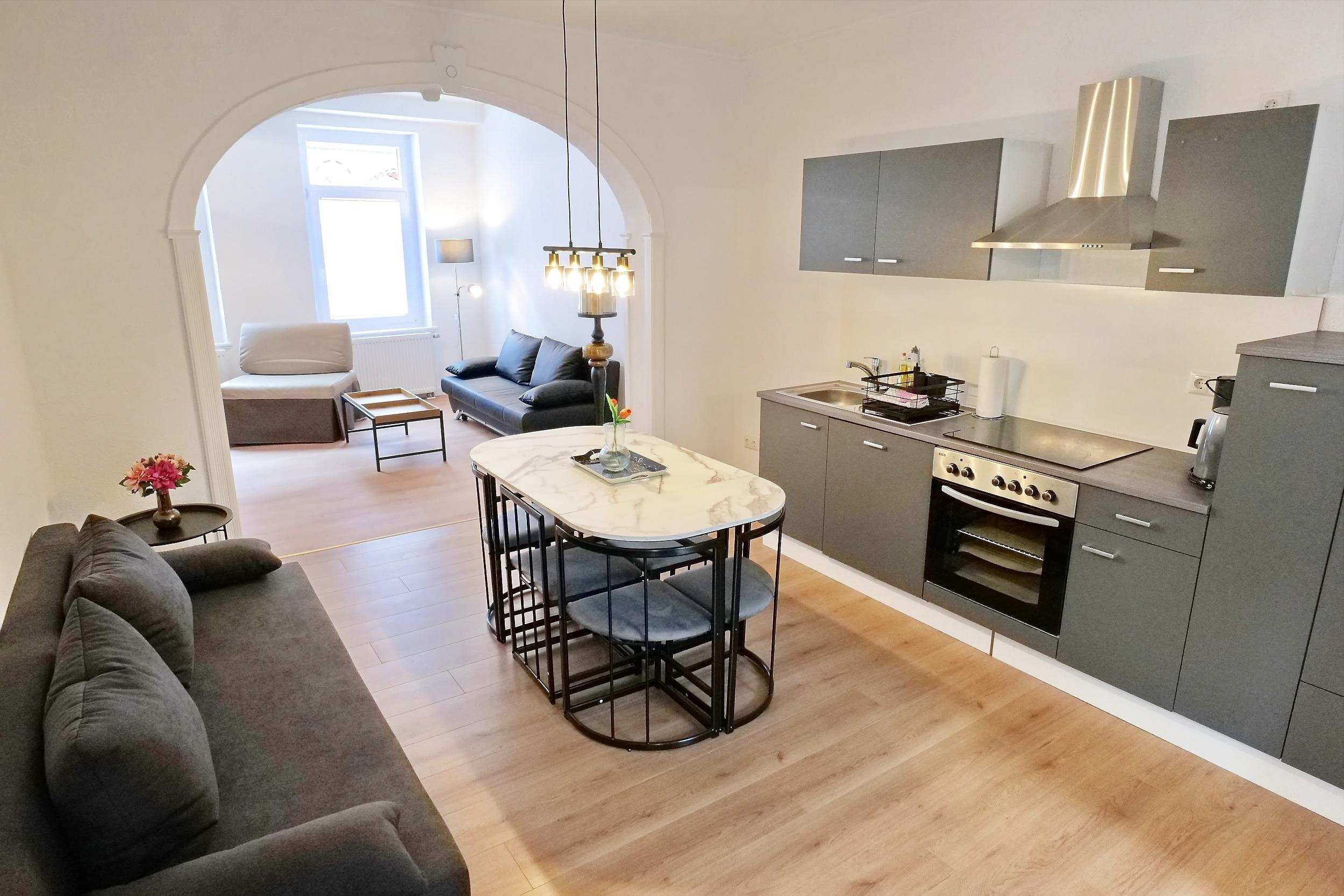 Moderne Ferienwohnung in Wismars Altstadt, nahe Marktplatz, ideal für 4 Gäste mit WLAN und voll ausgestatteter Küche.