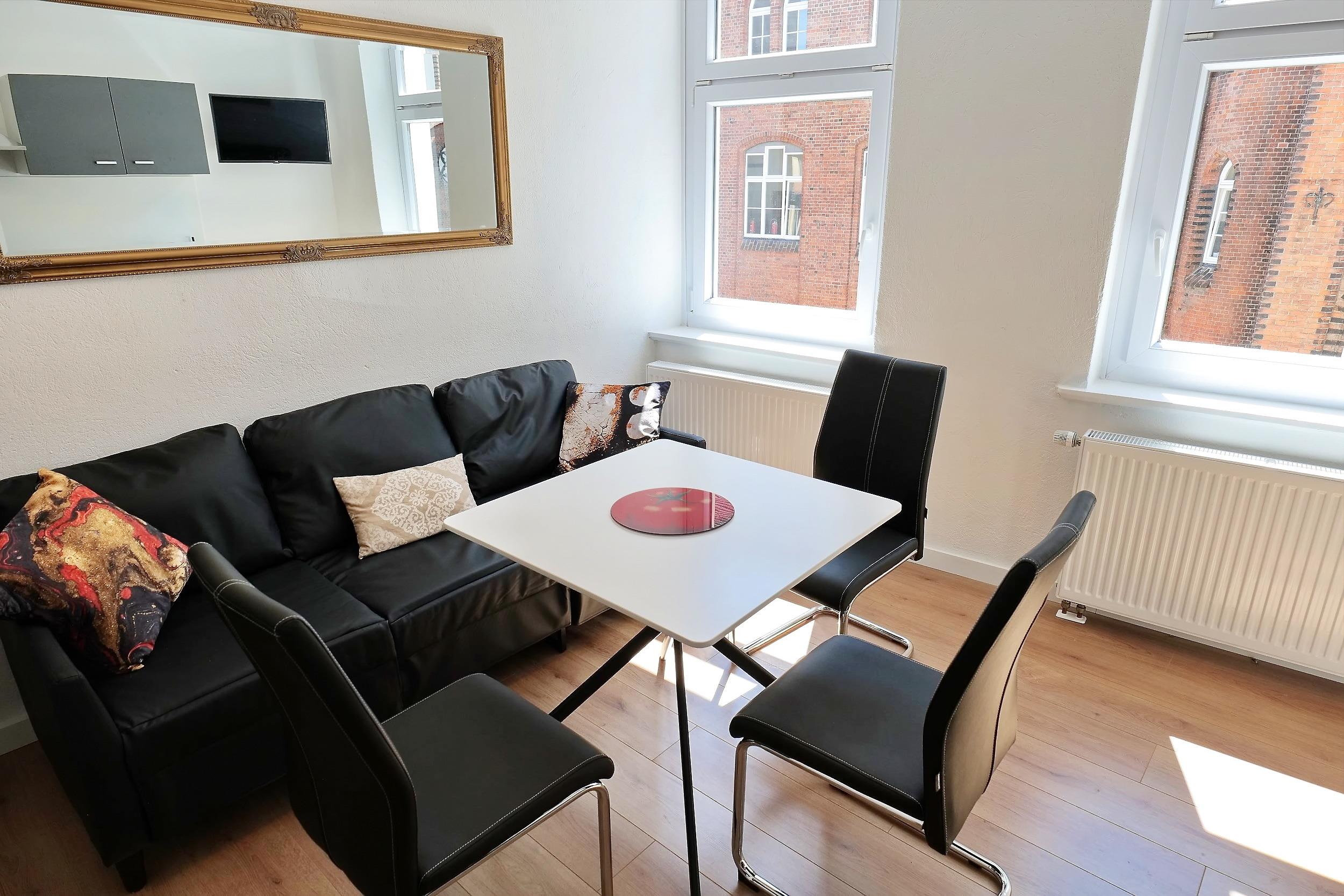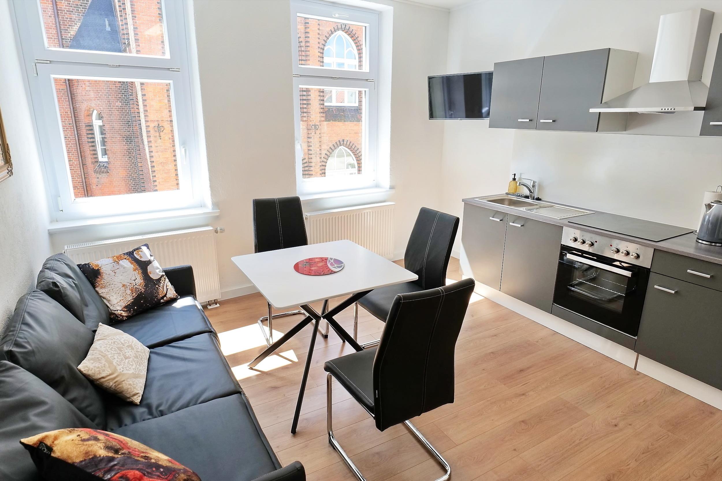 Modernes, neu eingerichtetes Ferienapartment in Wismars Altstadt, nahe Marktplatz mit WLAN und Fahrradstellplatz.