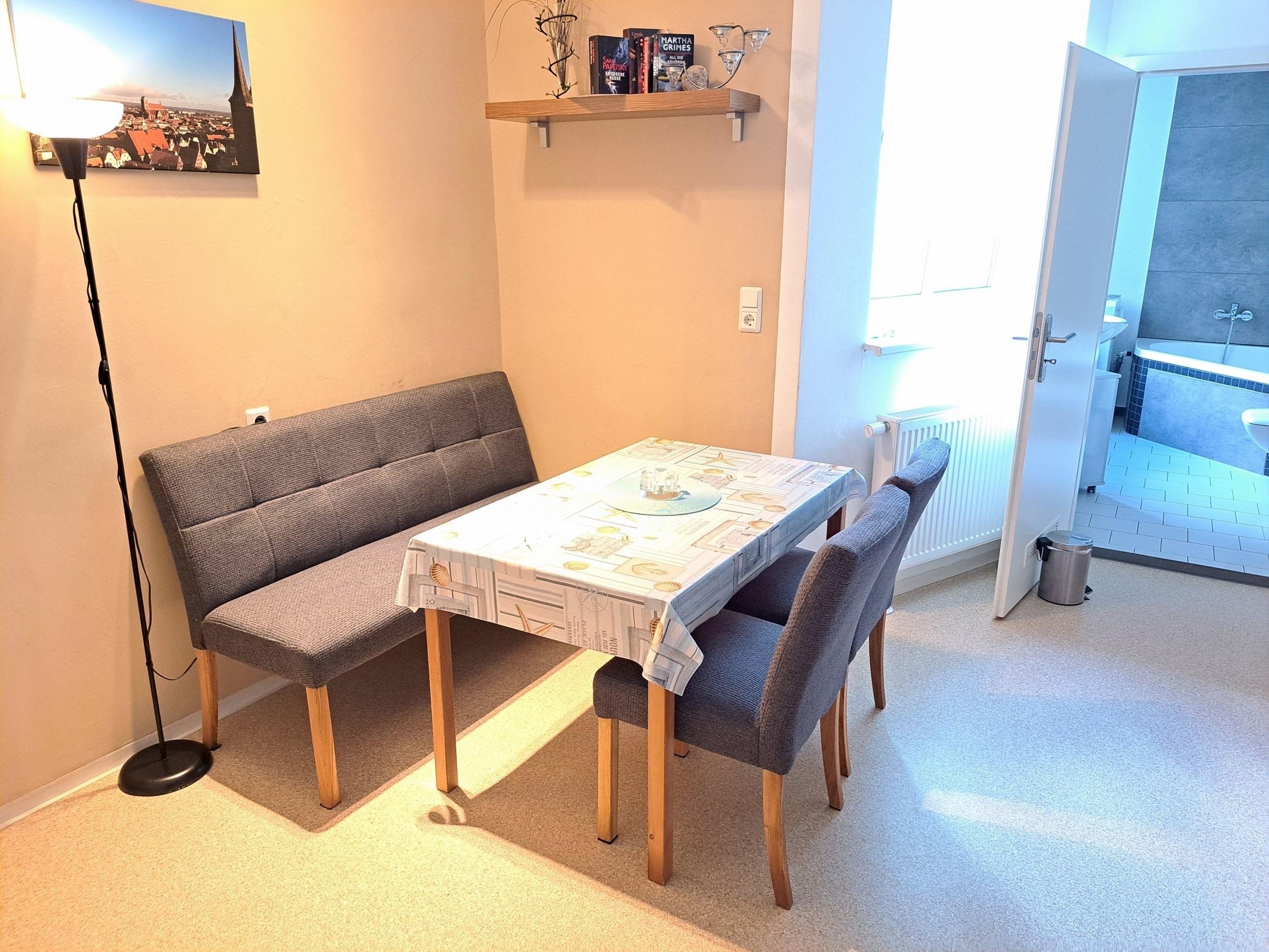 Das Apartment bietet eine herrliche Aussicht über die Dächer von Wismar und auf die Nikolaikirche. Zu den weiteren Annehmlichkeiten gehören ein Flachbild-Sat-TV, ein Sitzbereich sowie ein eigenes Bad mit Badewanne und einem Haartrockner. Die voll ausgestattete Küchenzeile umfasst eine Kaffeemaschine, einen Kühlschrank, einen Toaster, ein Kochfeld und Küchenutensilien.