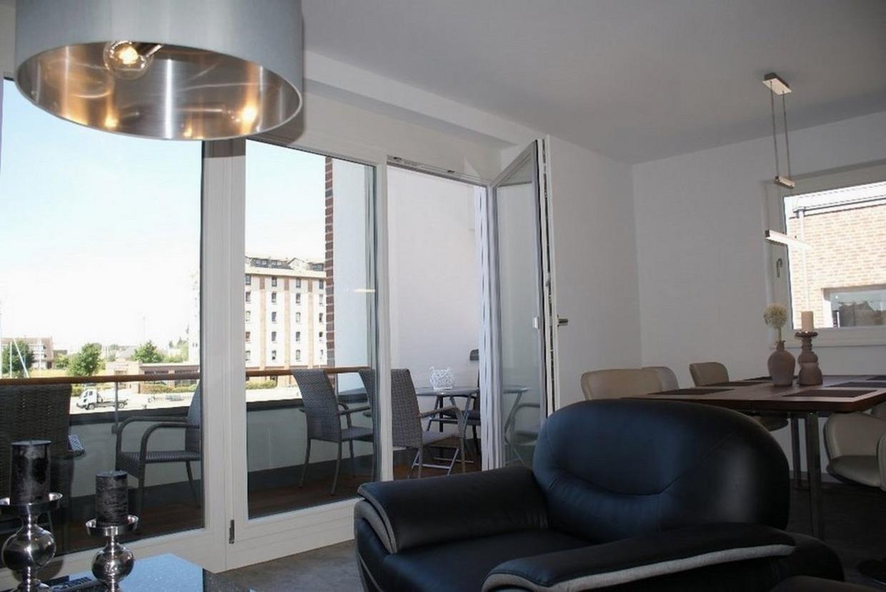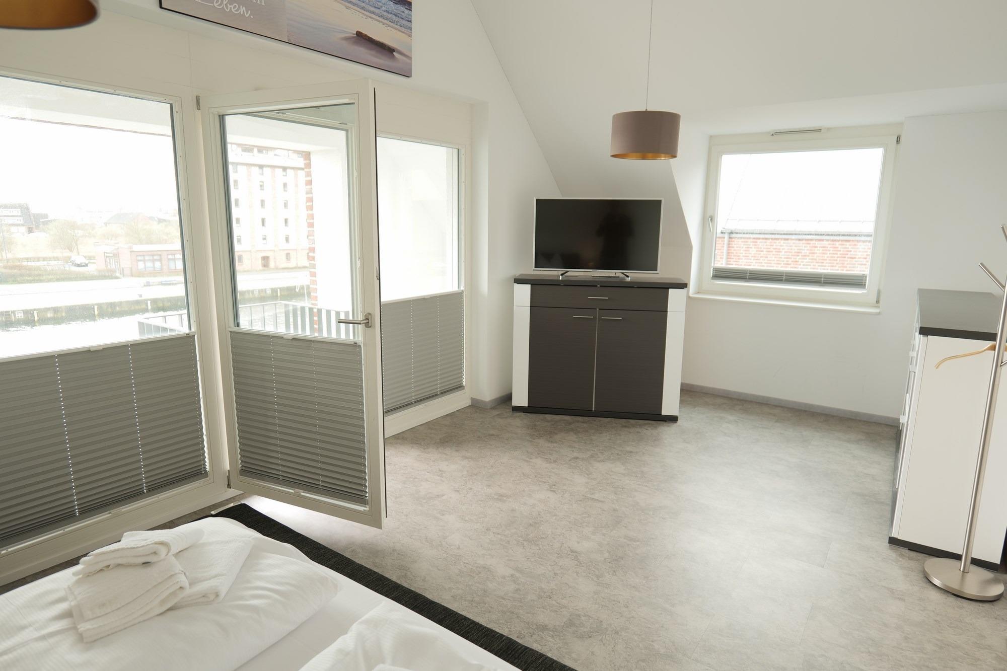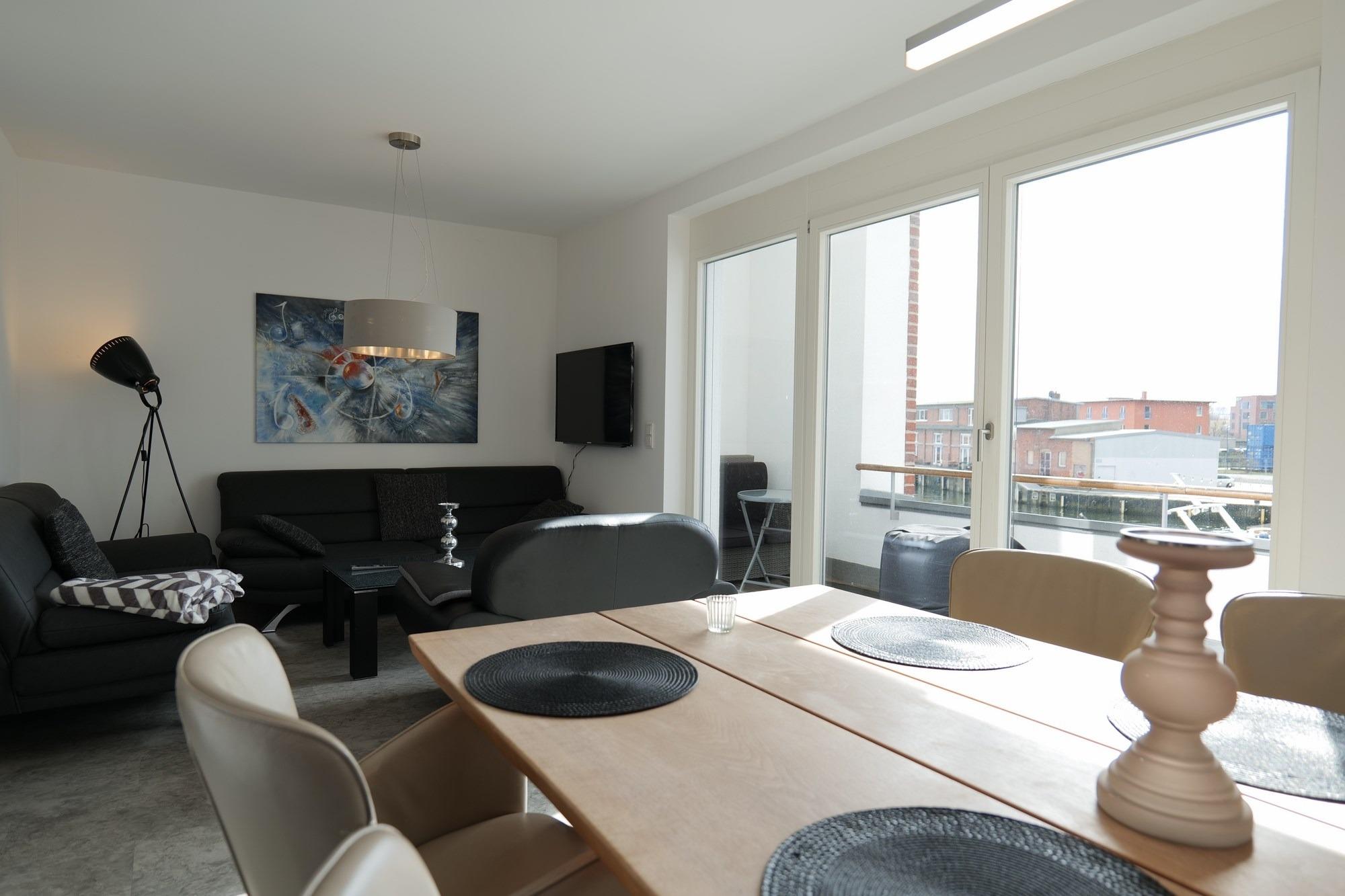 Erleben Sie Luxus und Meerblick im exklusiven Hafenpanorama-Loft in Wismar mit großem Balkon und moderner Ausstattung.