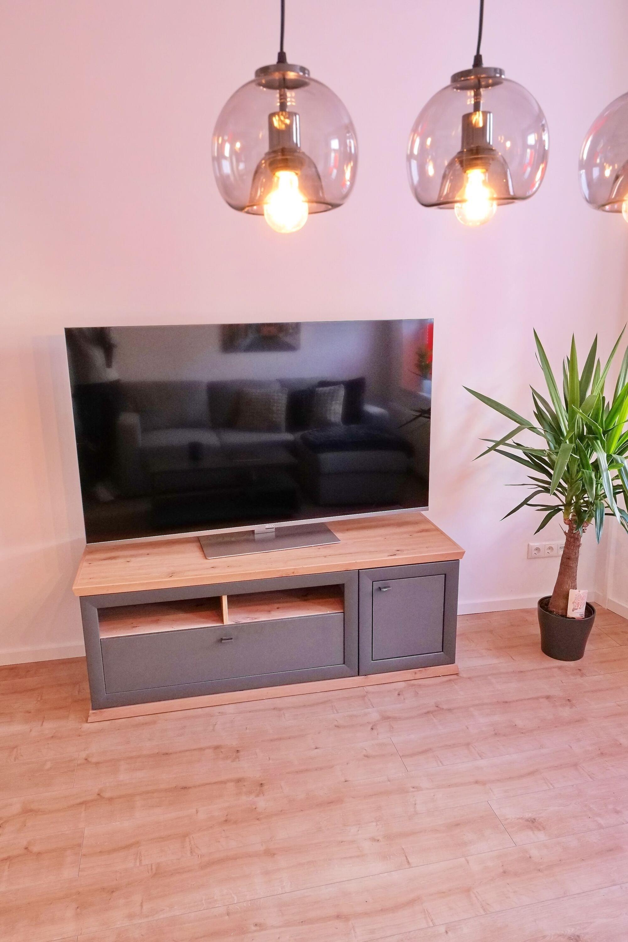 - 1 großes Wohnzimmer mit Couchlandschaft, Sessel, Flat-TV, Essbereich für 4 Personen