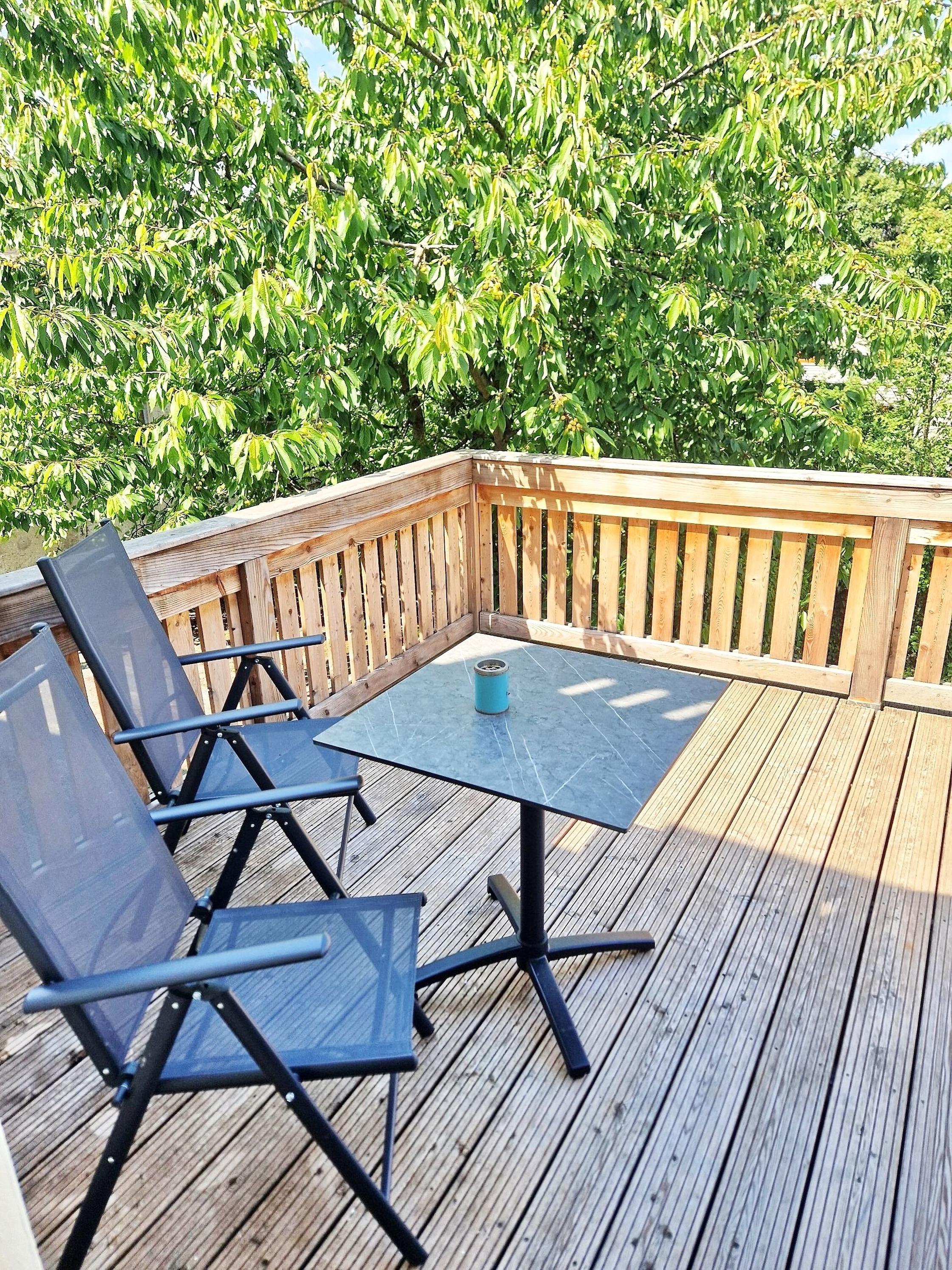 Balkon mit Blick auf grüne Innenhöfe – ruhig und idyllisch