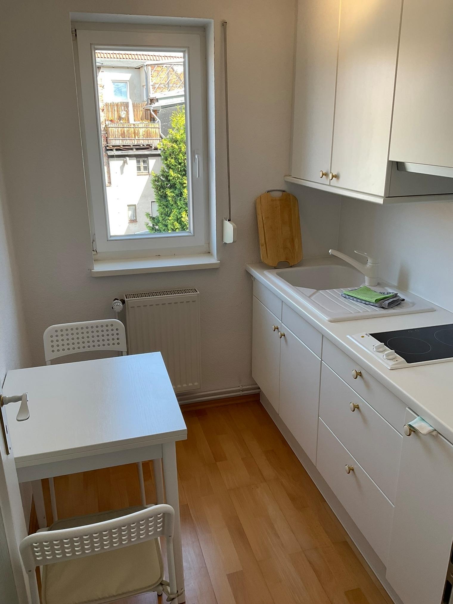 - Küche vollausgestattet u.a. mit Ceranfeld, Kaffeemaschine, Geschirr, Besteck, Gläser, Kühlschrank, Essbereich für 2 Personen