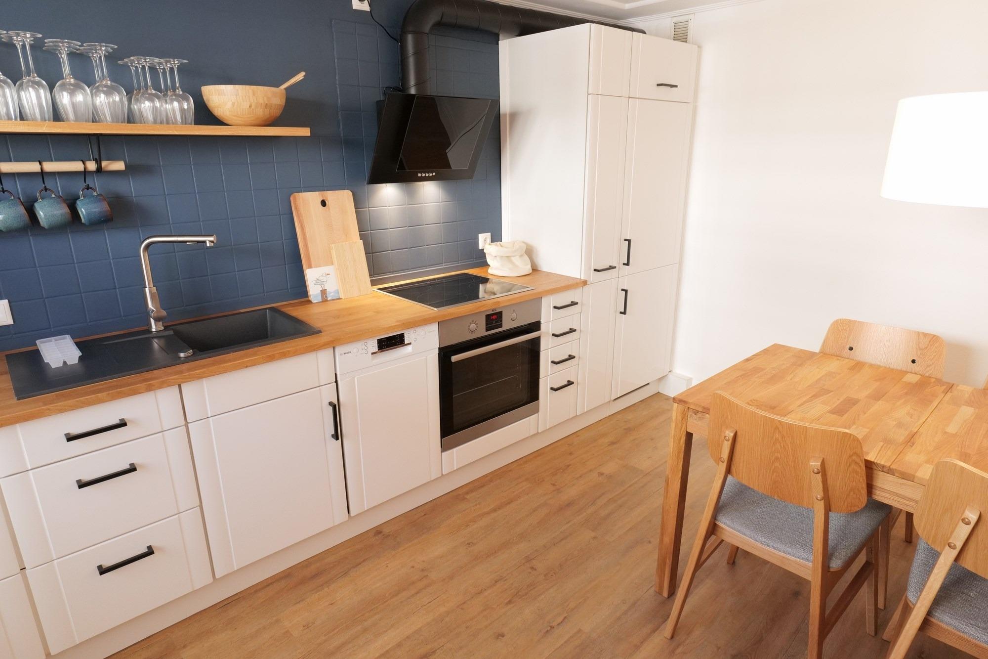 - vollausgestattete Küche mit Esstisch für 4 Personen, u.a. mit Spülmaschine, Herd, Kühlschrank, Gefrierschrank, Kaffemaschine, Wasserkocher, Toaster, Mixer, Besteck, Geschirr u.v.m