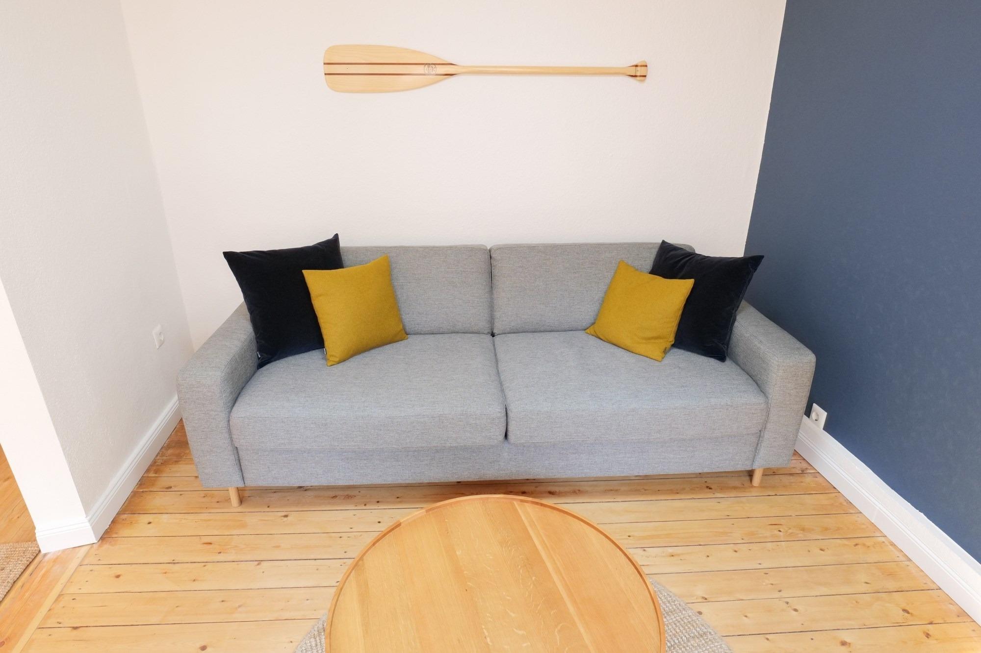 Bei der Sanierung und Einrichtung wurde bewusst auf den eigenen Charakter und die Geschichte des Haues Rücksicht genommen. Neben den komfortablen Boxspringbetten im Obergeschoss steht Ihnen im Wohnraum zusätzlich ein hochwertiges Schlafsofa zur Verfügung.