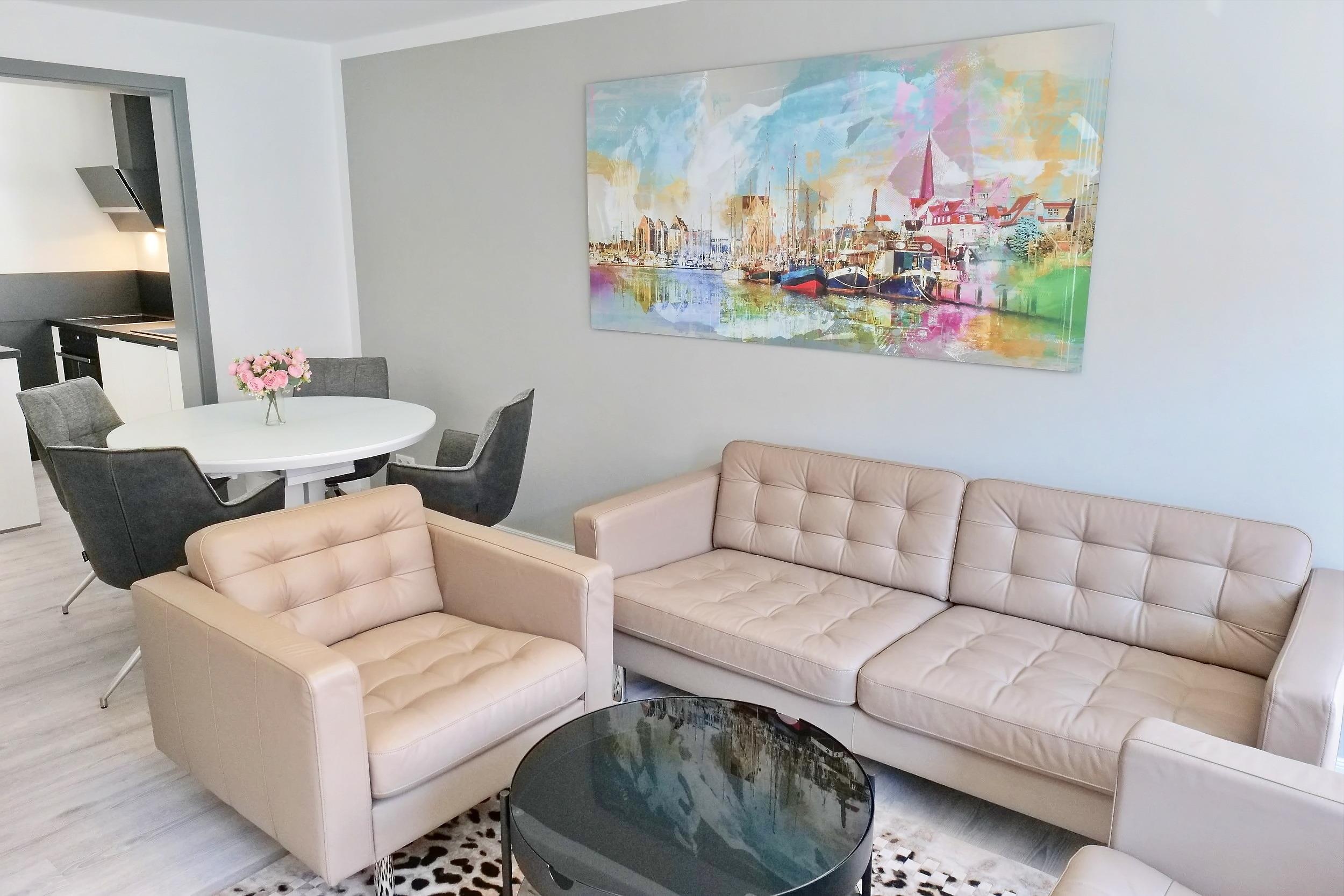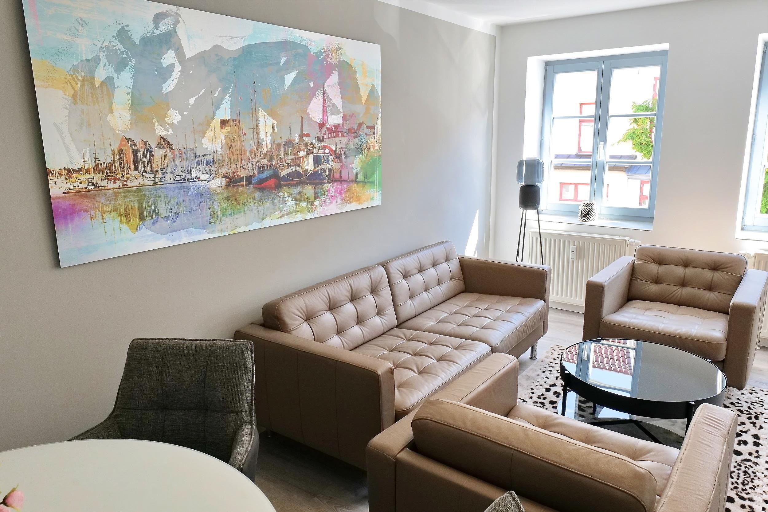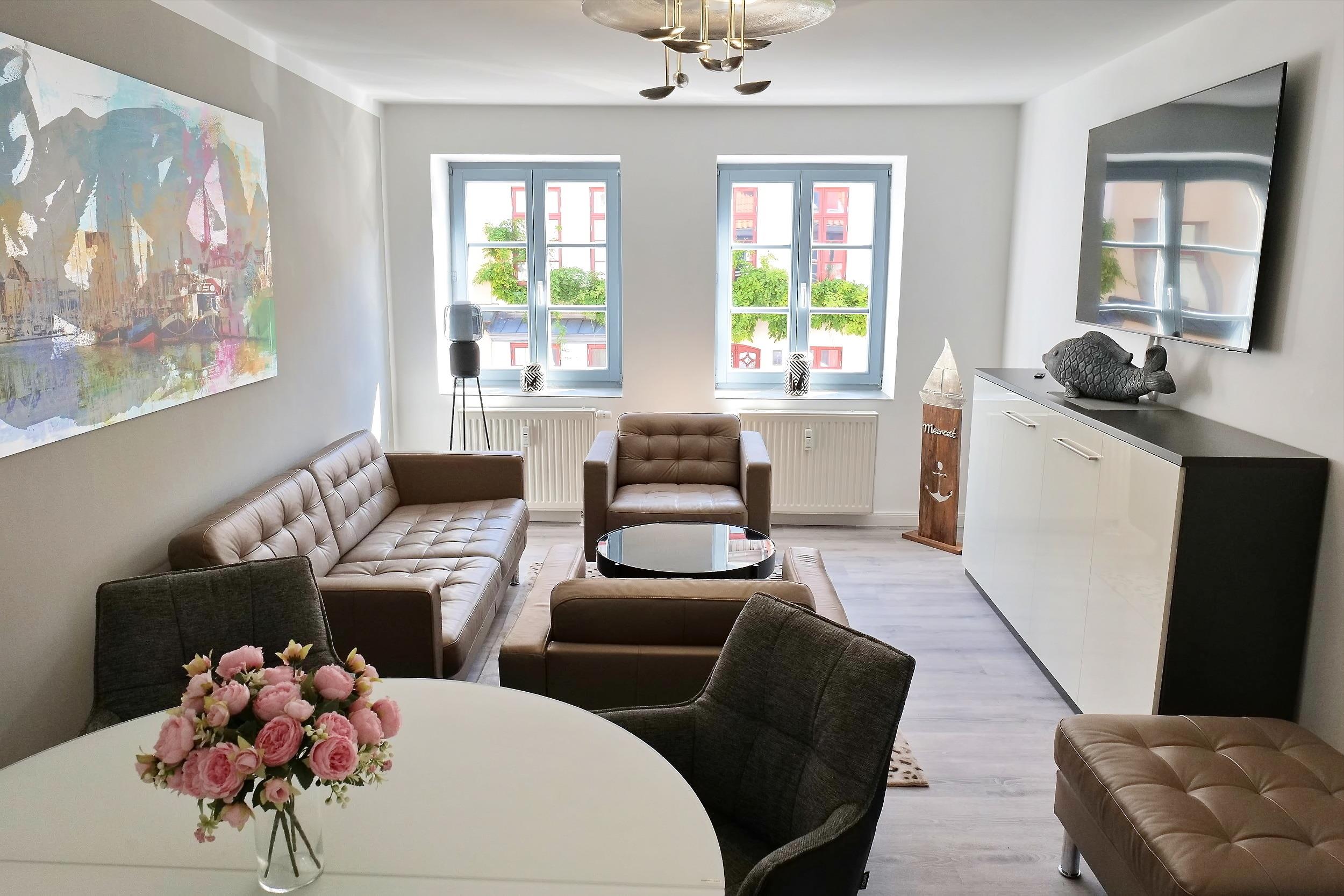 Moderne Ferienwohnung im Herzen von Wismar mit 55 m², stilvoll eingerichtet und ideal für 2-4 Personen in ruhiger Altstadtlage.