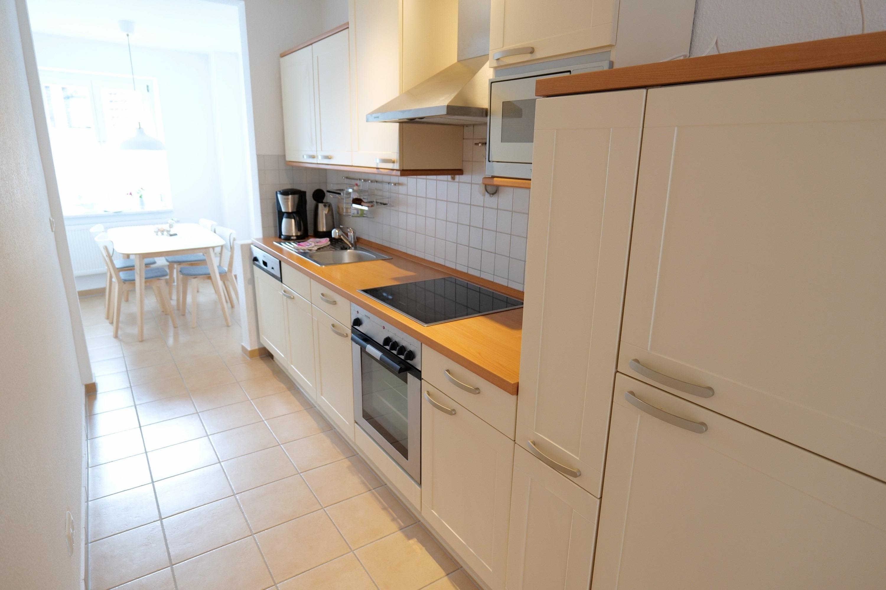 - Küche ausgestattet mit Geschirrspüler, Backofen, Ceranfeld, Kühlschrank, Kaffeemaschine, Wasserkocher, Mikrowelle, Geschirr, Besteck, Gläser uvm.
