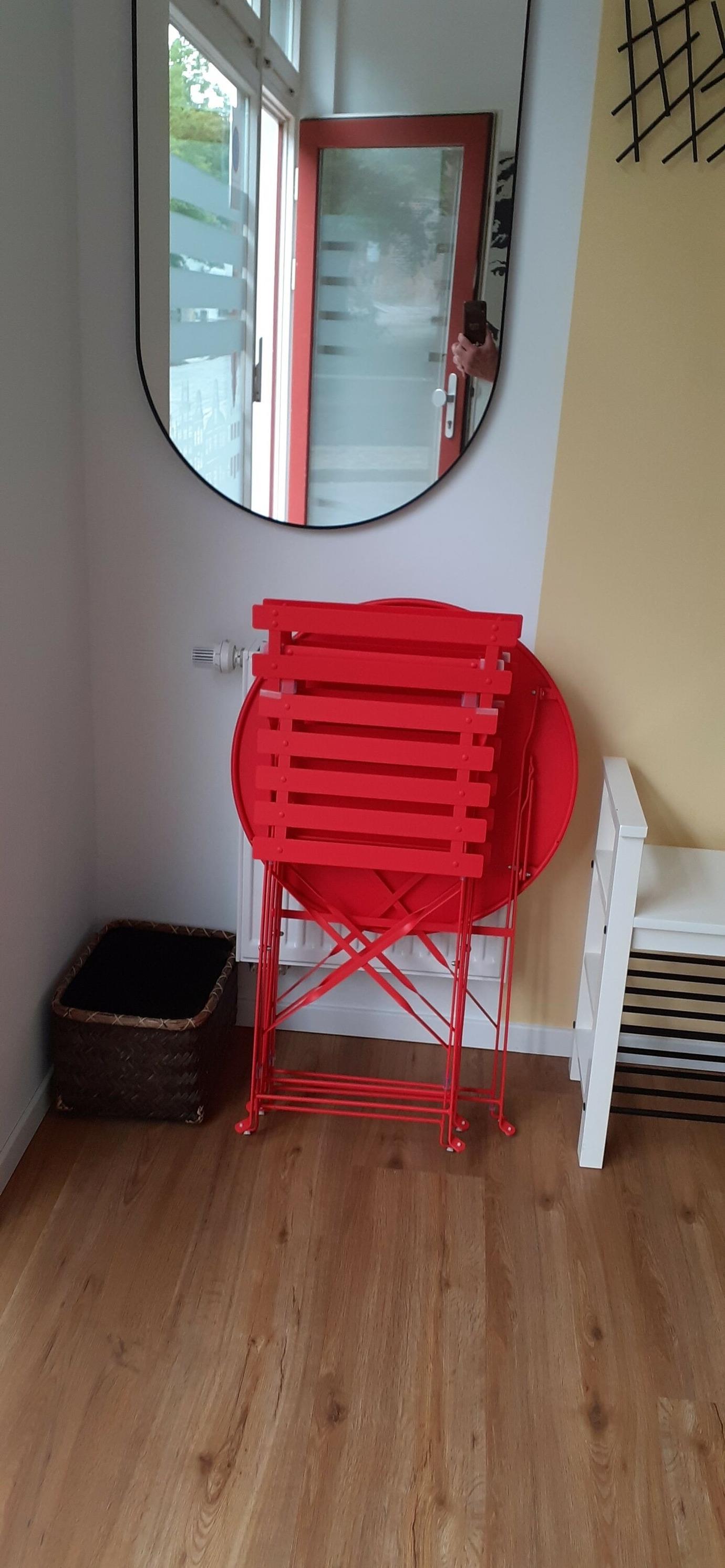 - Sitzmöglichkeit (2 Stühle + Tisch) vor der Wohnung mit Blick auf St. Nikolai und die Frische Grube. Bitte immer reinstellen nach Benutzung. Danke!