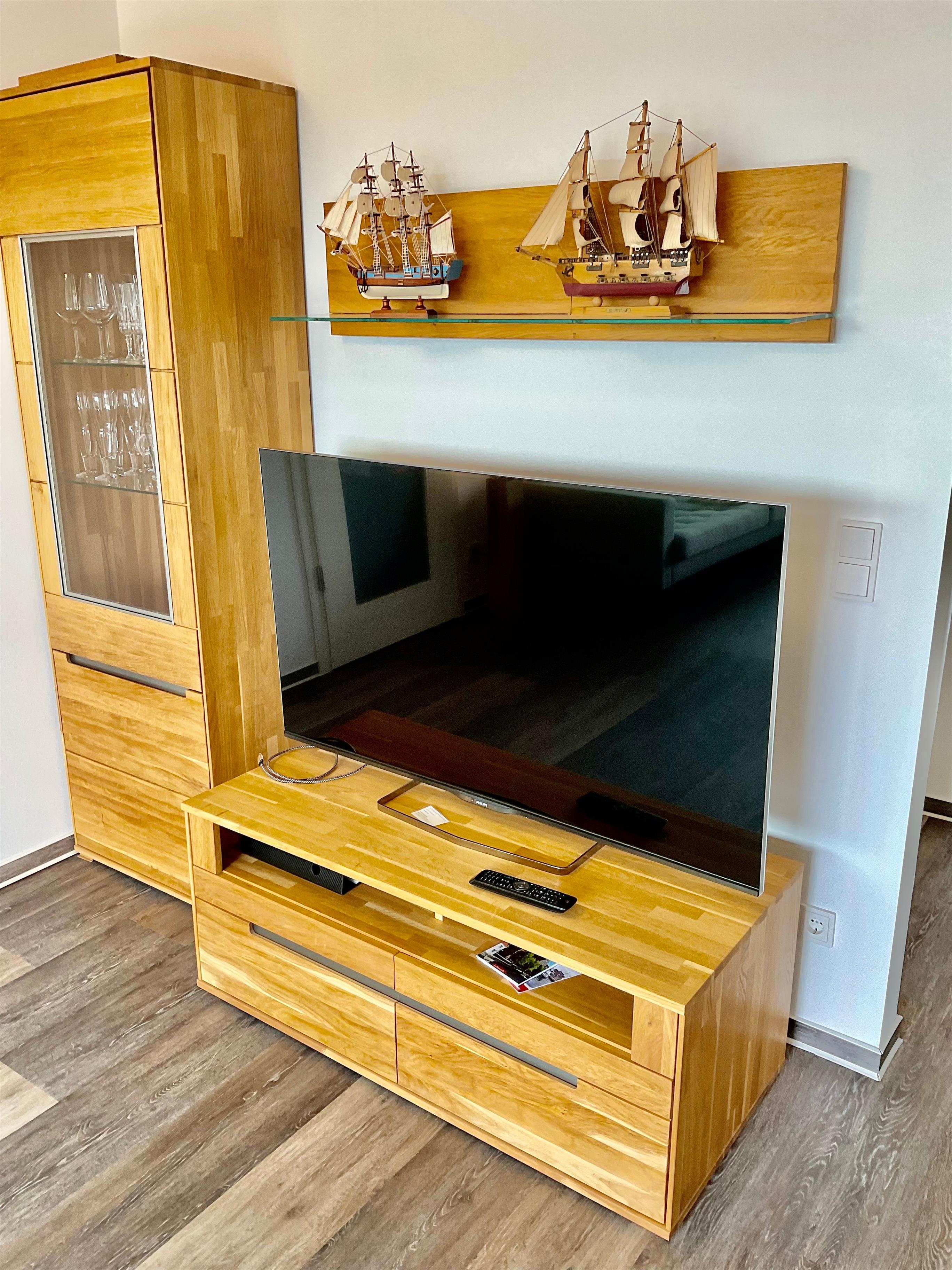 - Drei separate Schlafzimmer – zwei mit komfortablen Doppelbetten (1,80 × 2,00 m) und ein weiteres mit einem etwas kleineren Doppelbett (1,40 × 2,00 m) – alle Zimmer sind modern und gemütlich eingerichtet und verfügen über jeweils einen Fernseher für entspannte Abende.