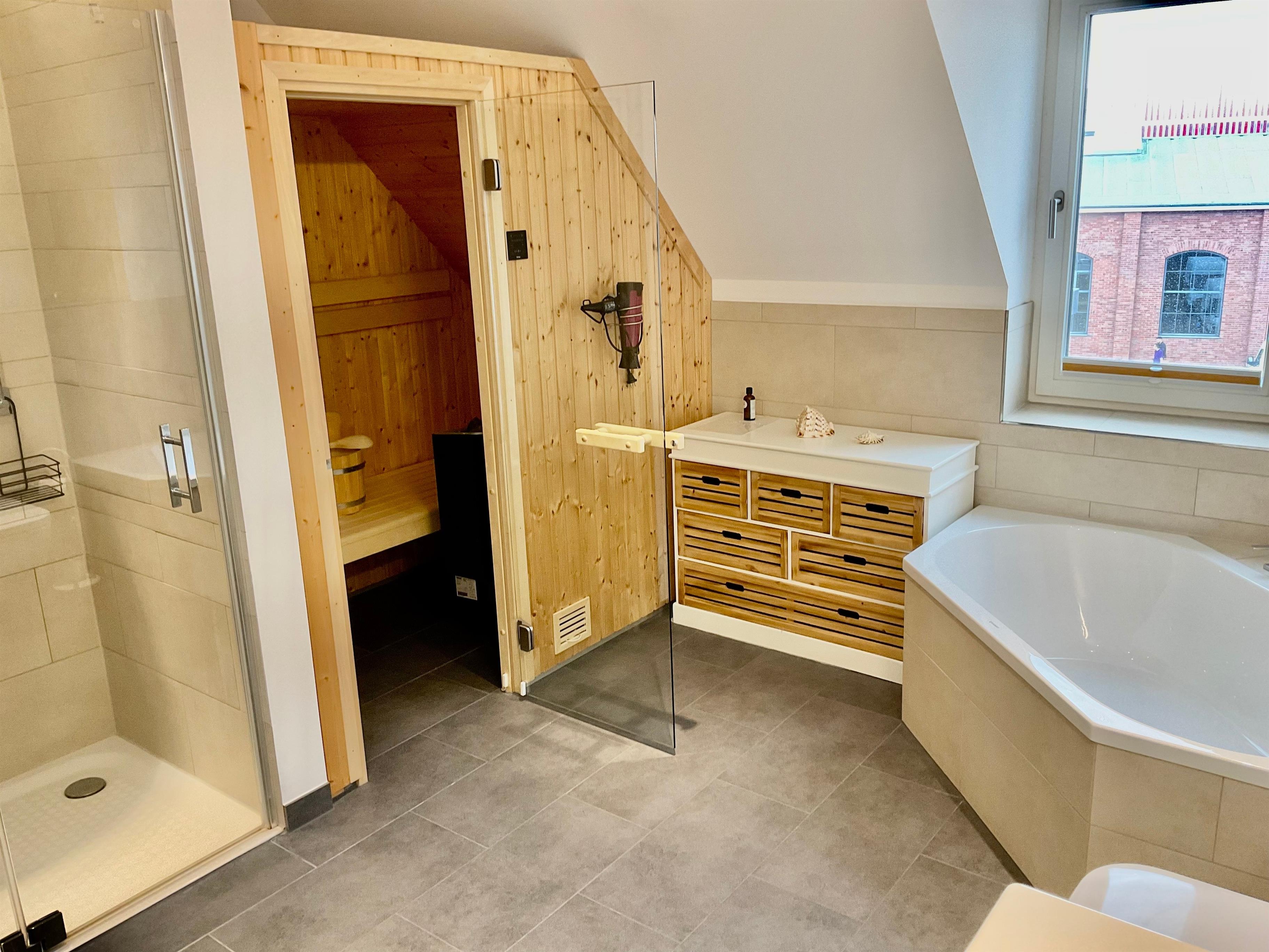 Ein besonderes Highlight dieser Ferienwohnung ist die eigene Sauna, ideal für entspannte Stunden nach einem Ausflug oder einem Spaziergang an der See. Ergänzend dazu gibt es: