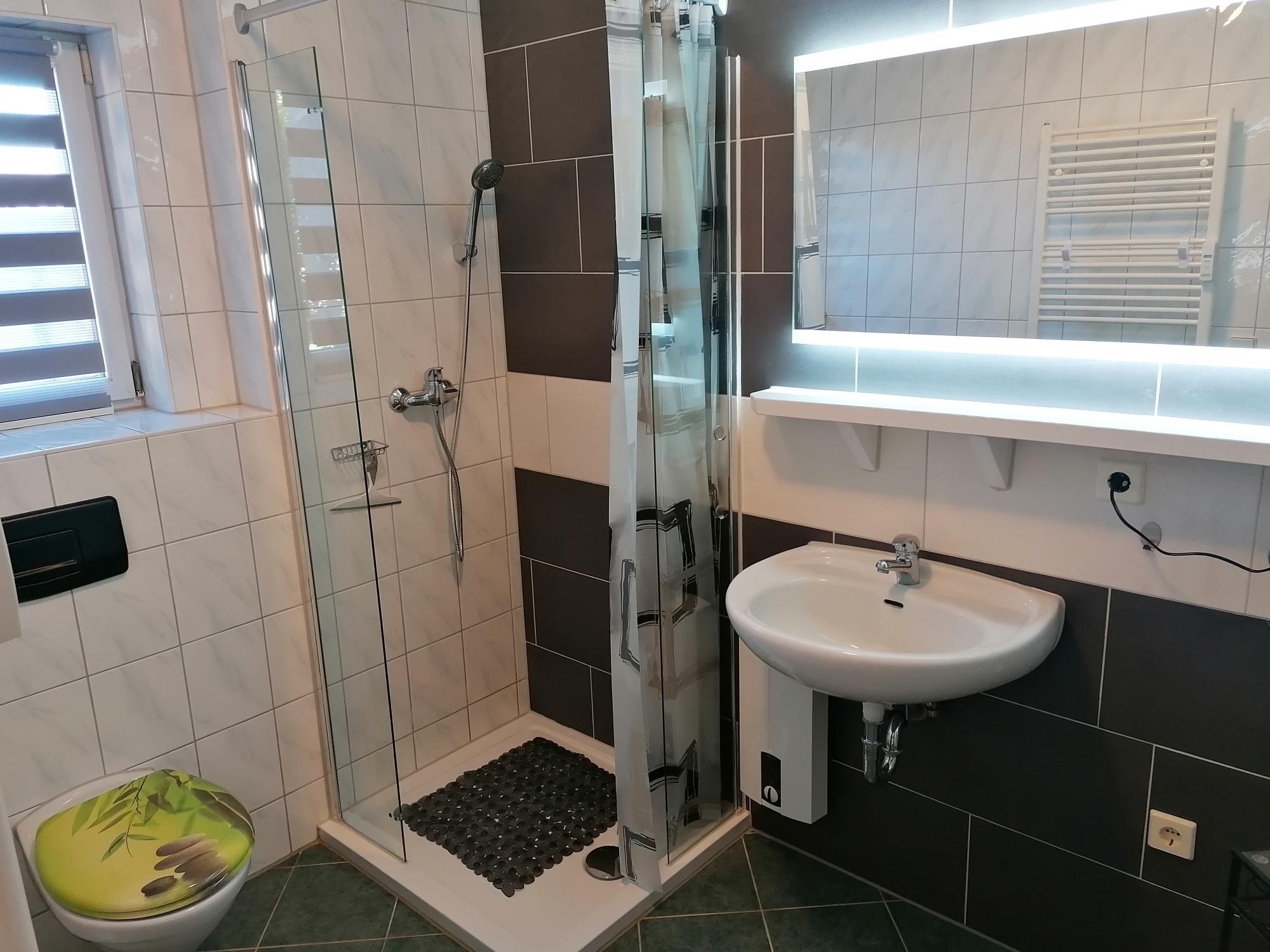 - Duschbad mit Dusche, WC, großen Spiegel, Waschmaschine