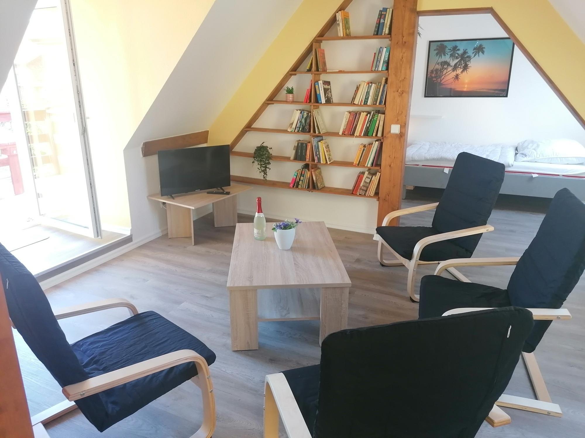 Moderne Ferienwohnung „Sonnendeck“ in Wismar mit Dachterrasse und Parkplatz, ideal für entspannte Tage in historischer Umgebung.
