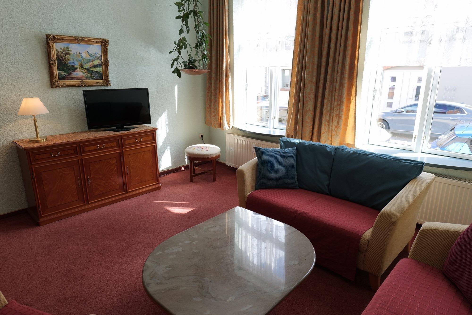 - großes Wohnzimmer mit ausziehbarer Schlafcouch, Sessel, TV