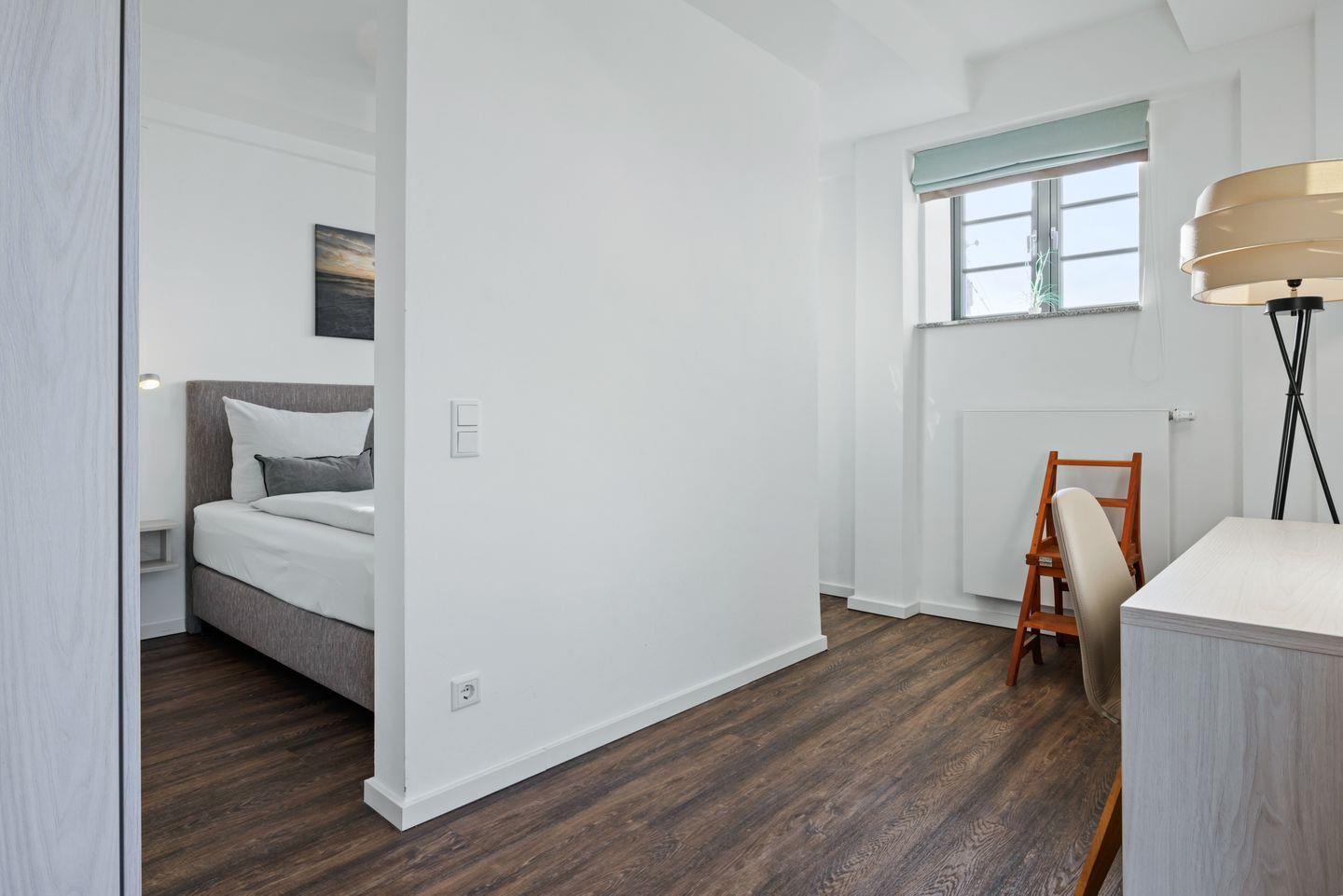 Modernes Ferienapartment mit Balkon und Hafenblick im historischen Ohlerich Speicher in Wismar.