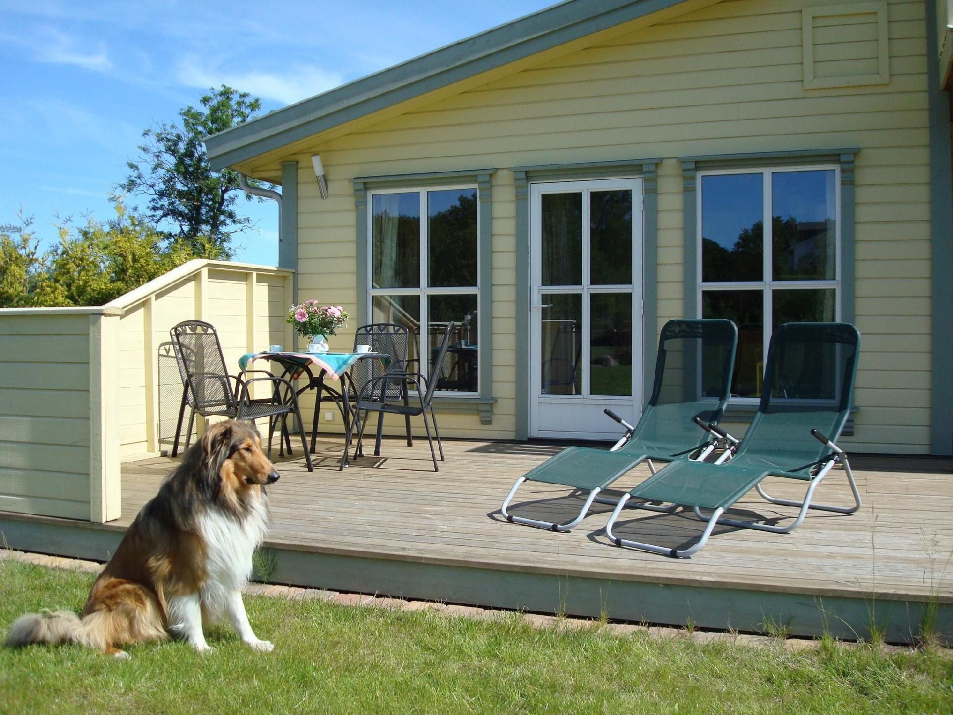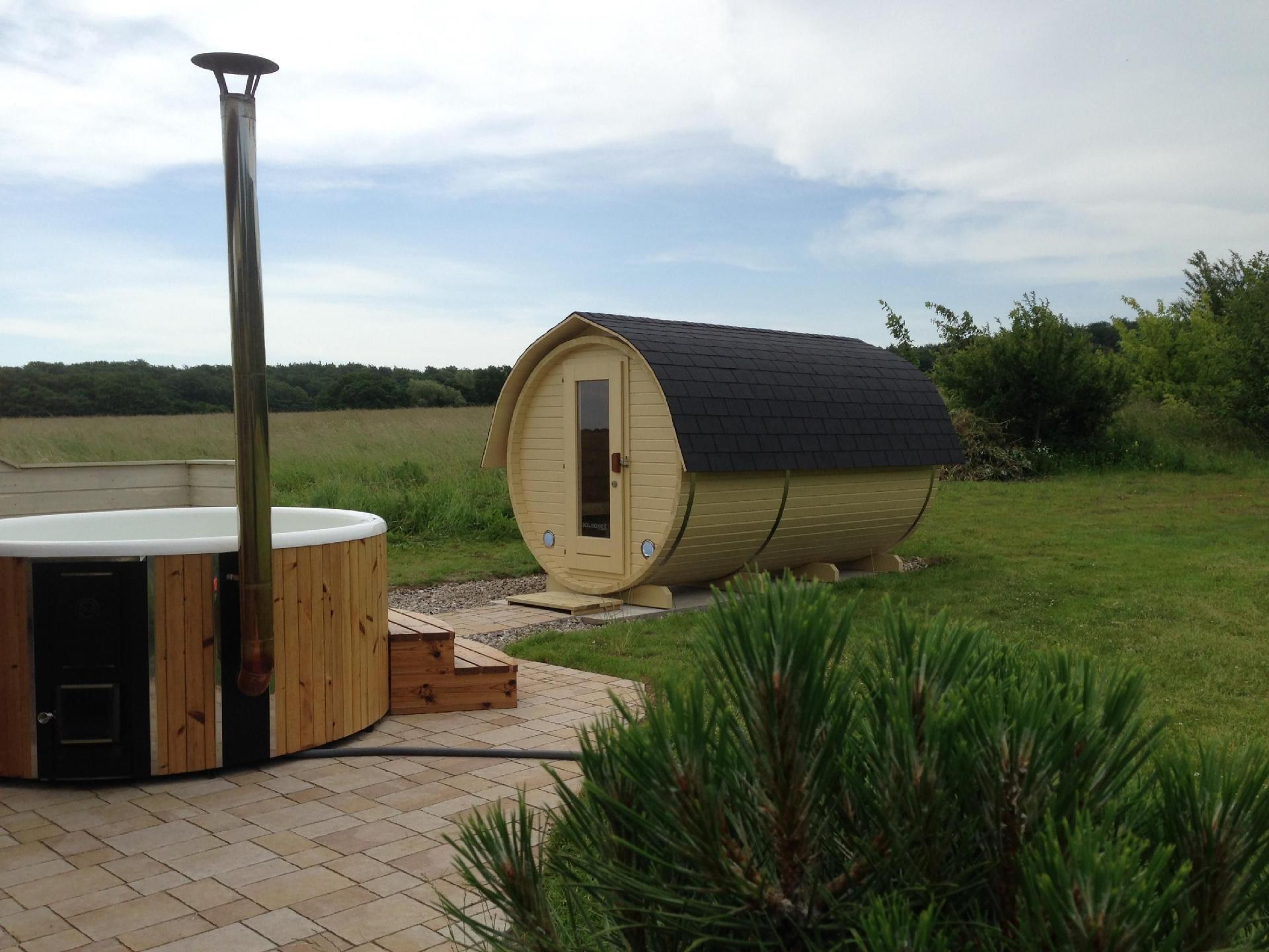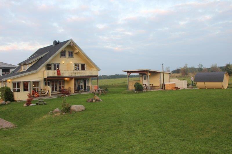 Idyllisches Ferienhaus am Golfplatz Wittenbeck mit Sauna, Hot Tub und stilvoller Einrichtung für erholsame Tage.
