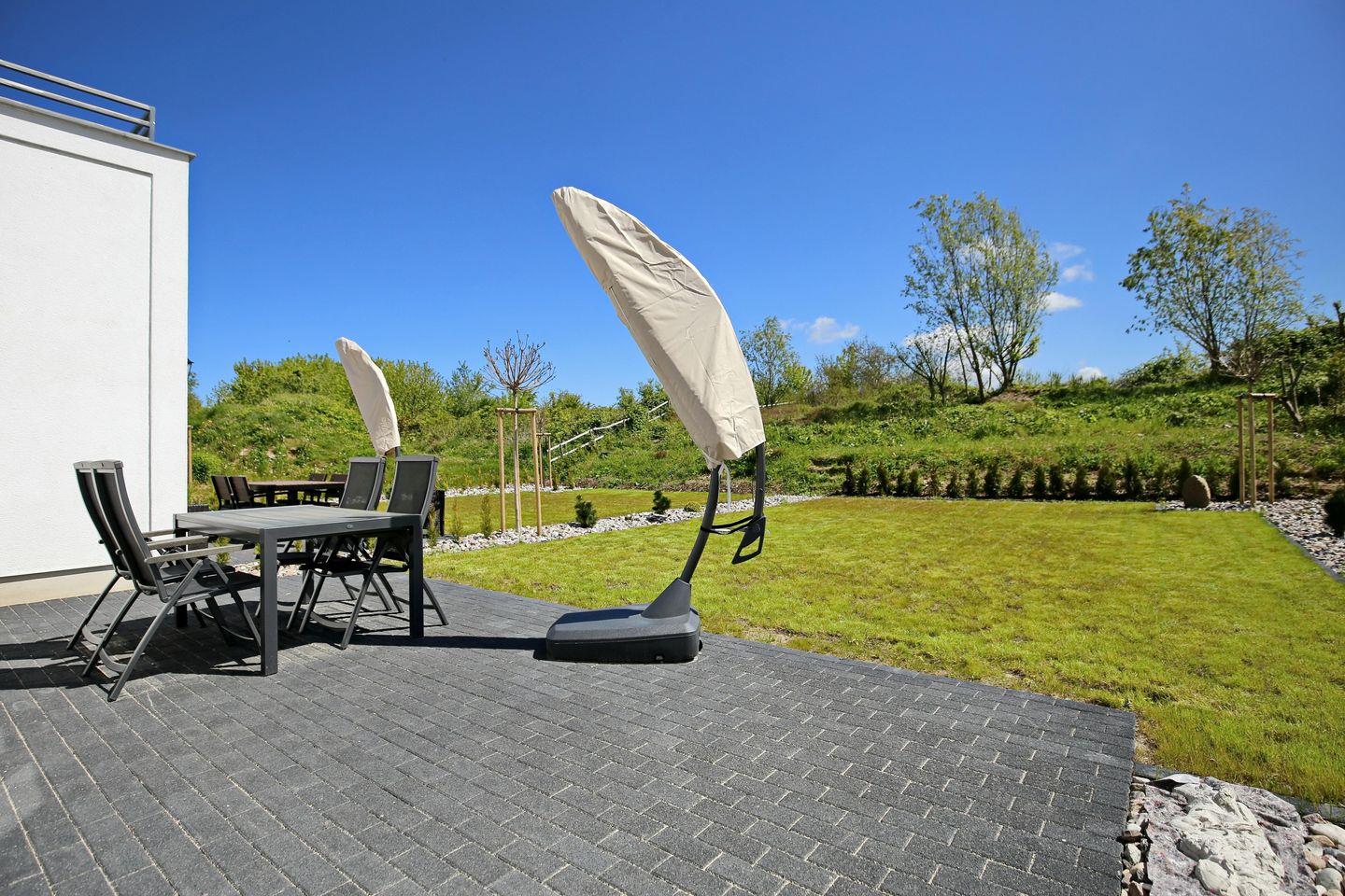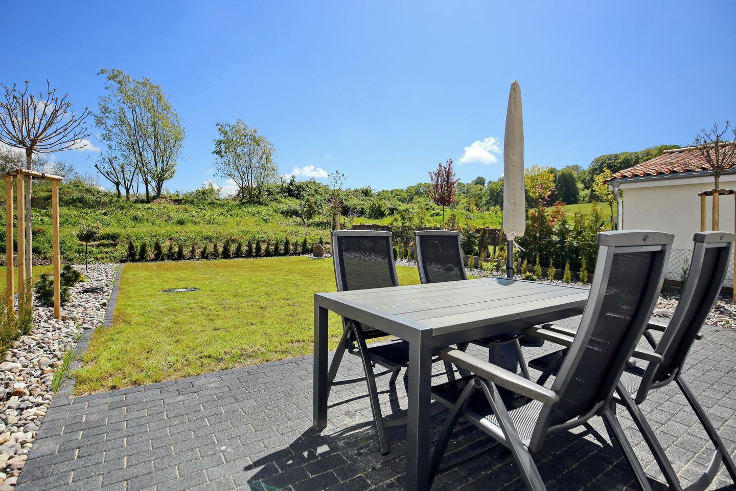 In einer ruhigen Wohngegend befindet sich das neu gebaute Haus mit 4 Bereichen auf einem 700 m² großen Grundstück. Die Süd-Ost-Ausrichtung des Hauses bietet bei schönem Wetter viel Sonne auf der großen 14 m² Terrasse mit Blick ins Grüne. Ein Spaziergang zum ca. 3 km entfernten Ostseestrand lohnt sich bei jedem Wetter.